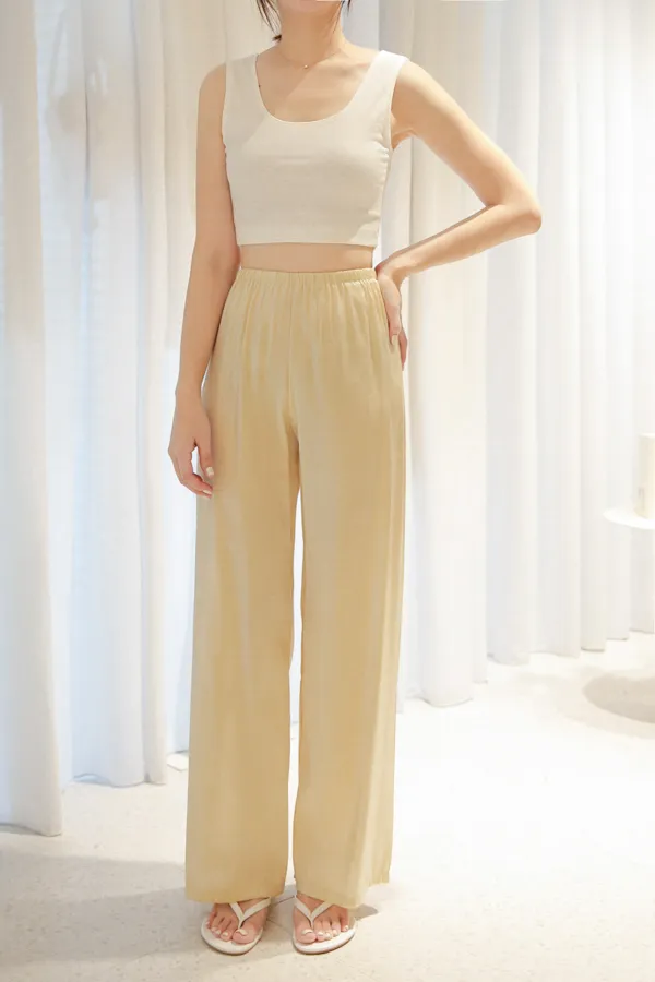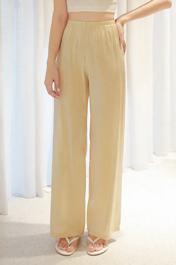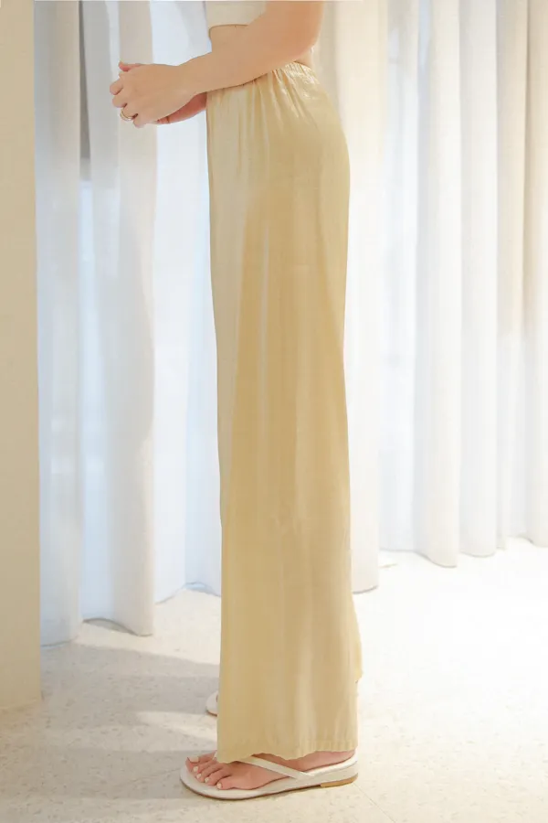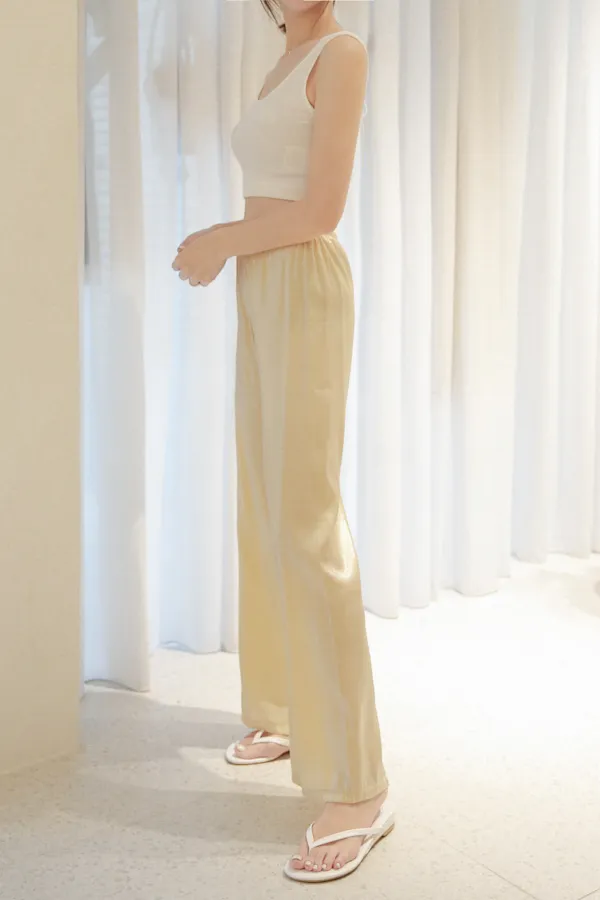 微透光澤鬆緊寬褲