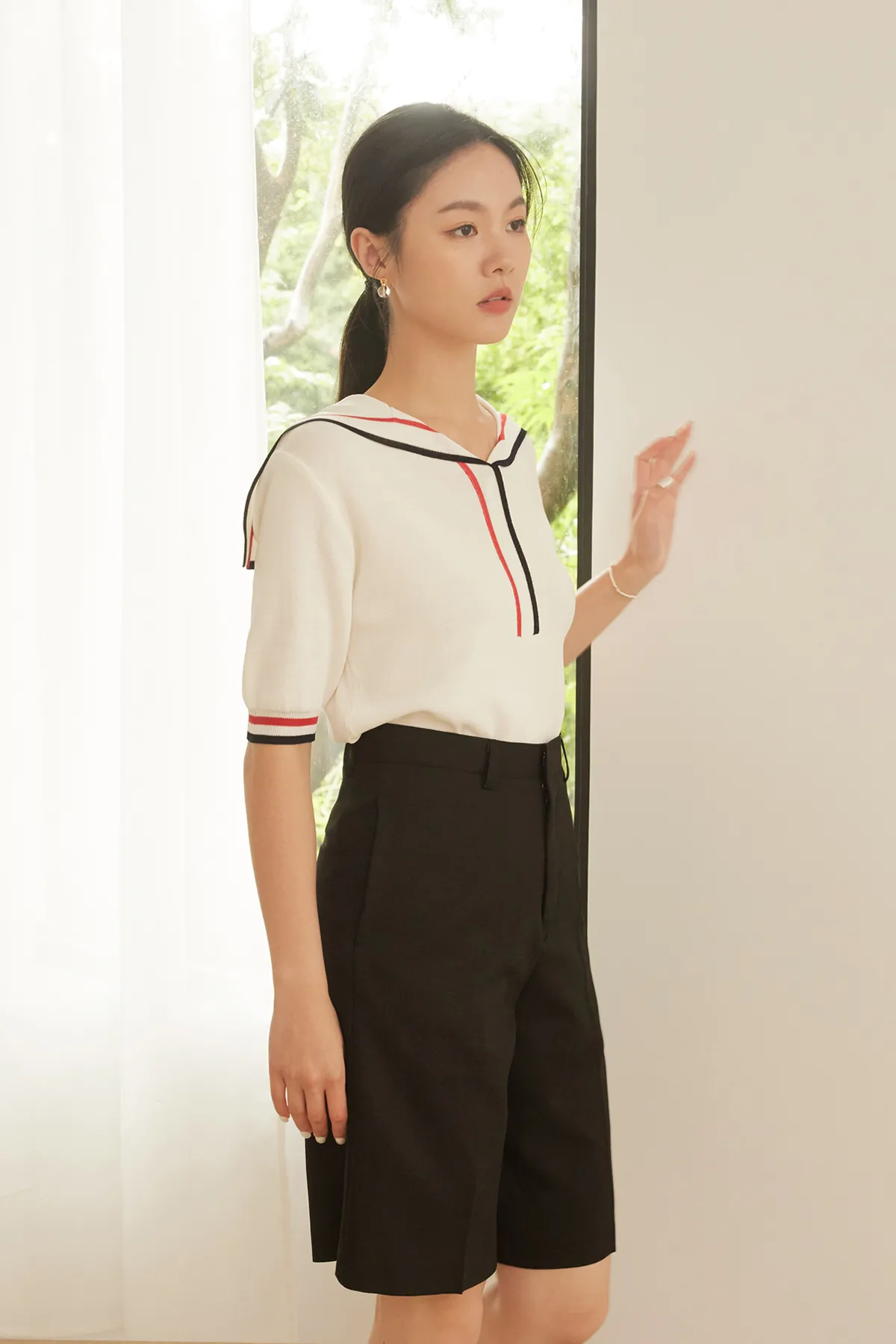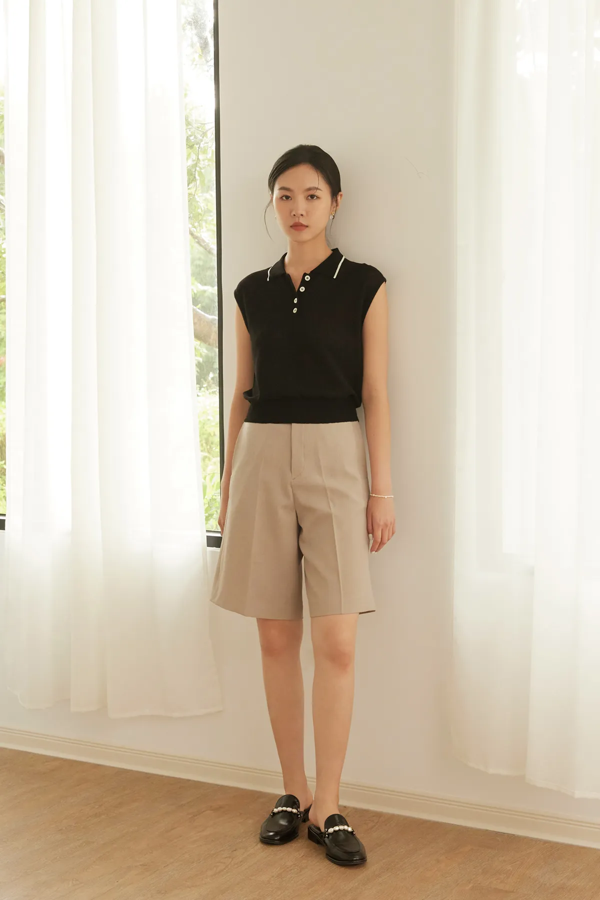 亞麻燙線五分褲
