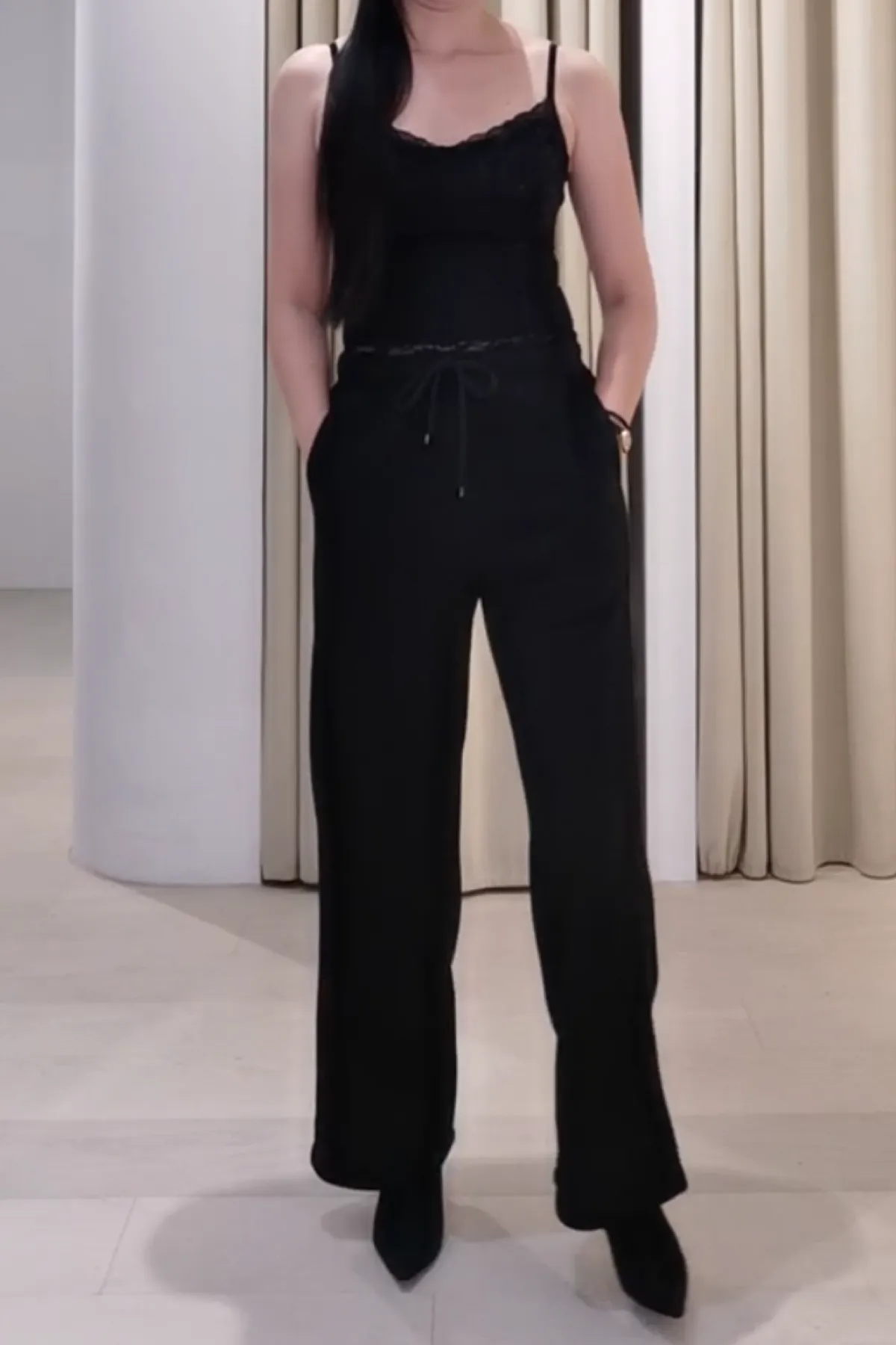 羊毛抽繩鬆緊磨毛褲