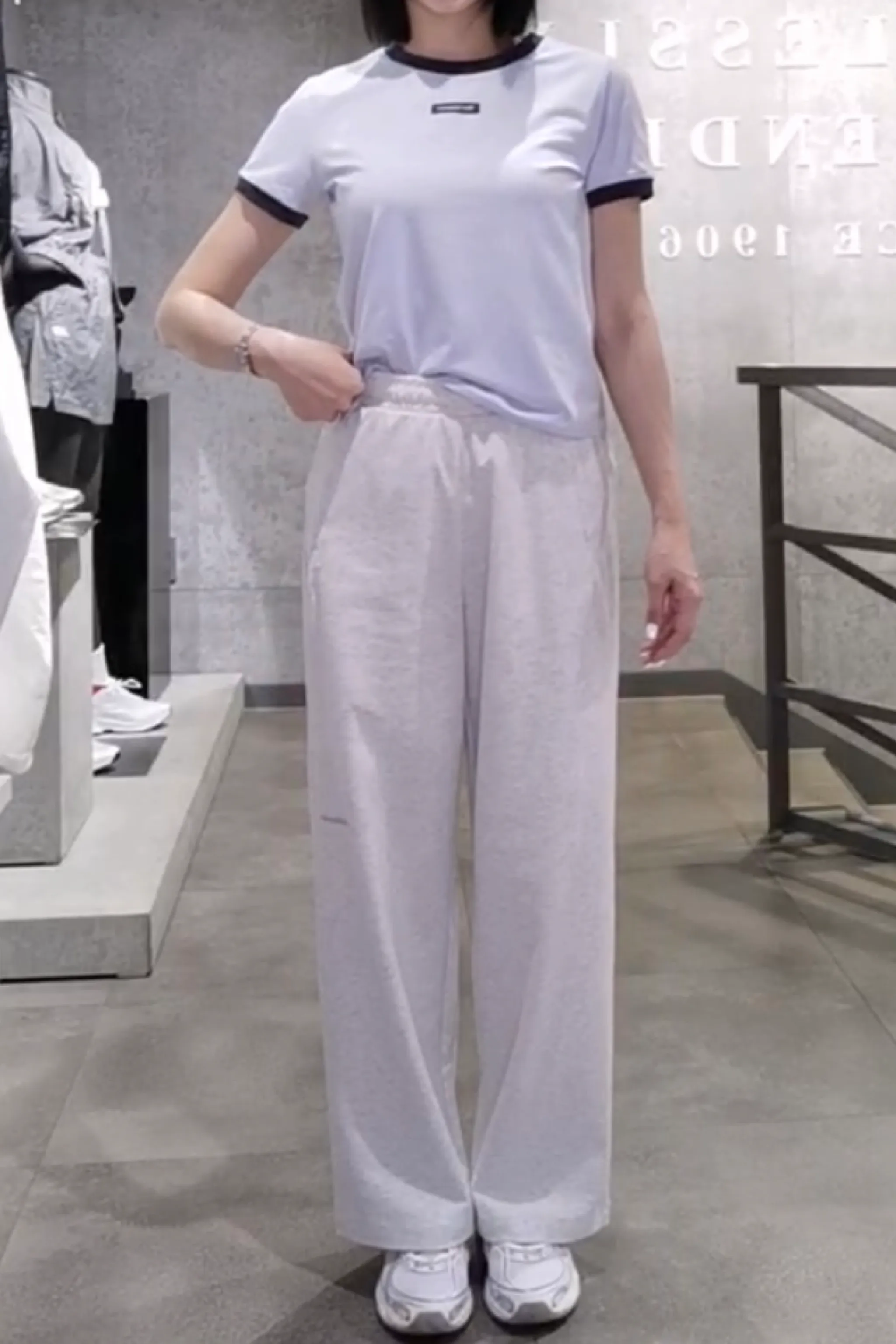 NB刺繡隱拉剛寬長褲