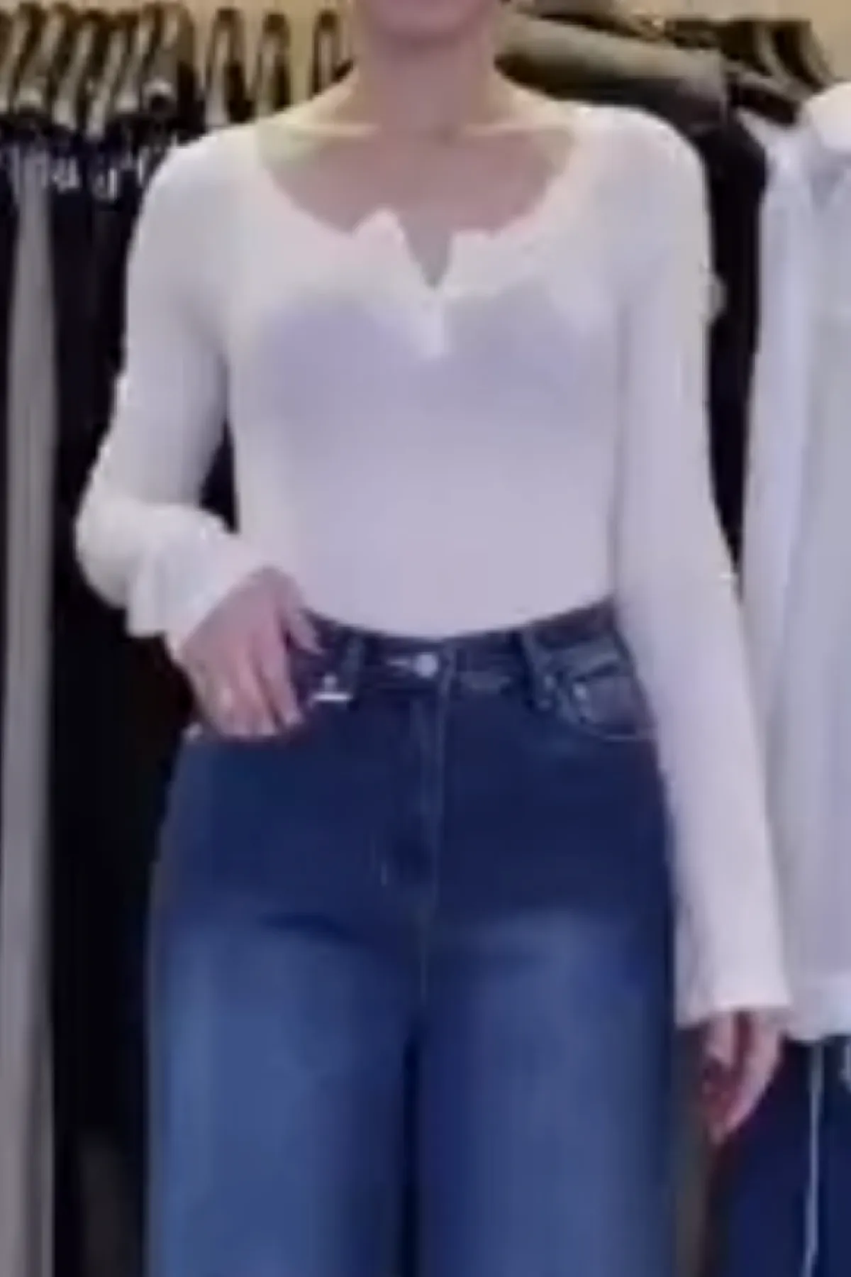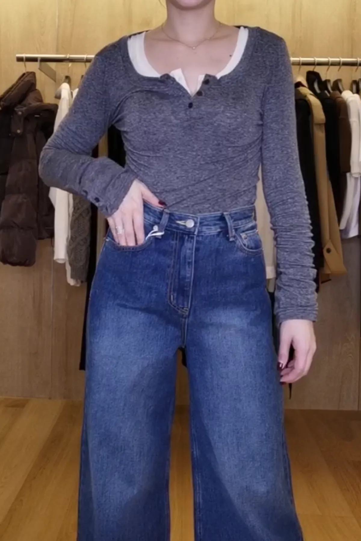 天絲羊毛圓領半排釦T