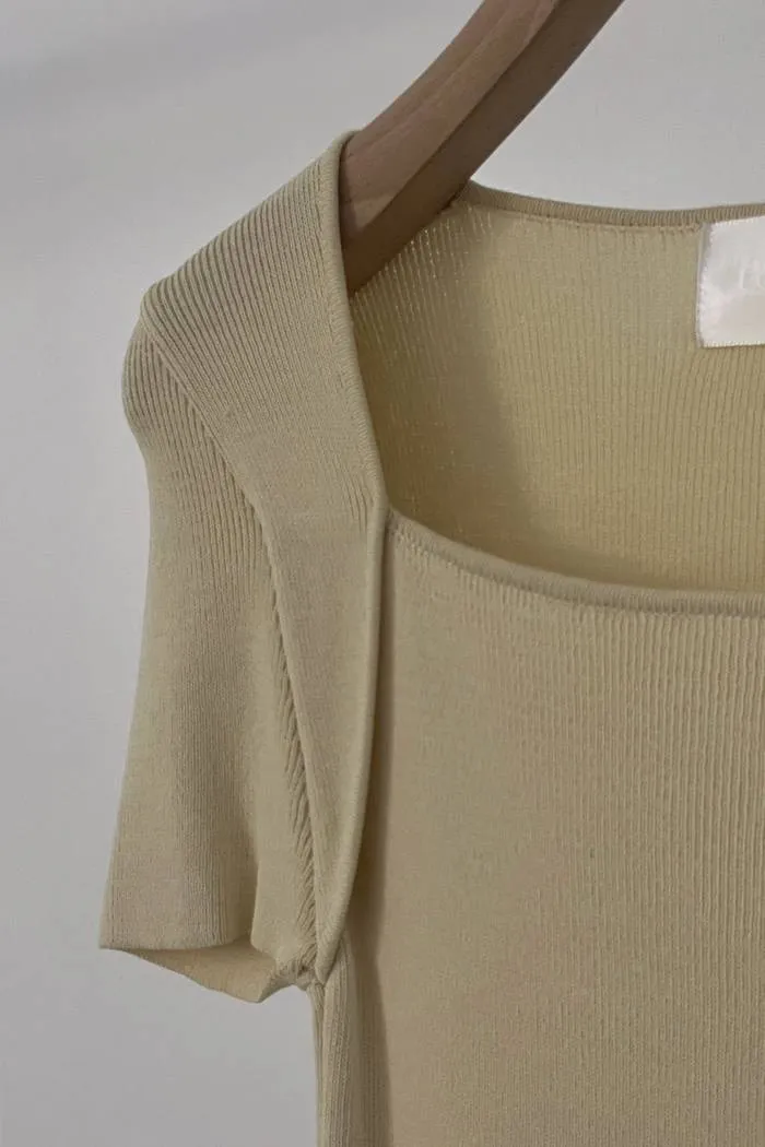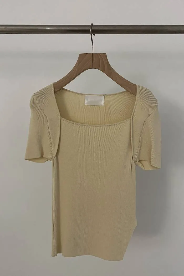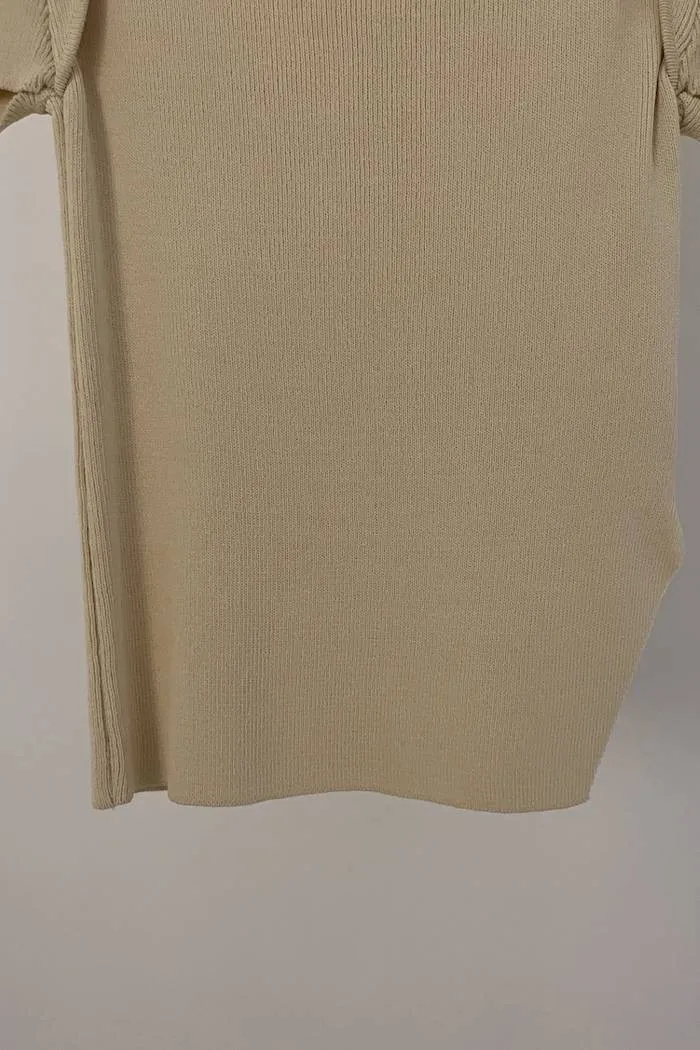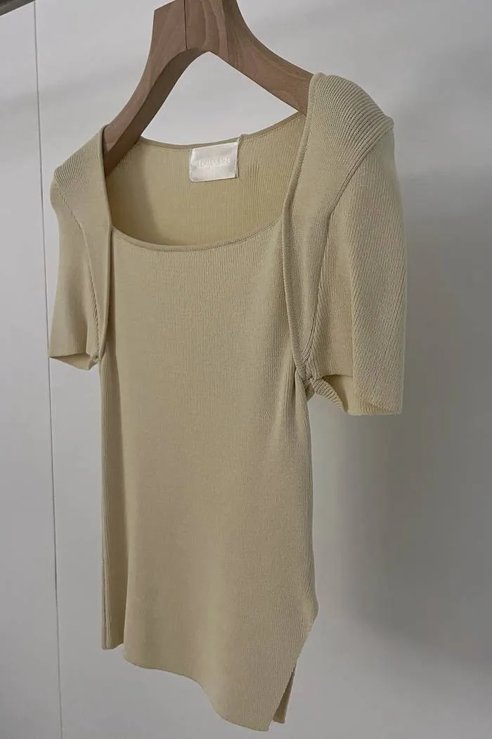 方領針織開衩上衣(黃F)