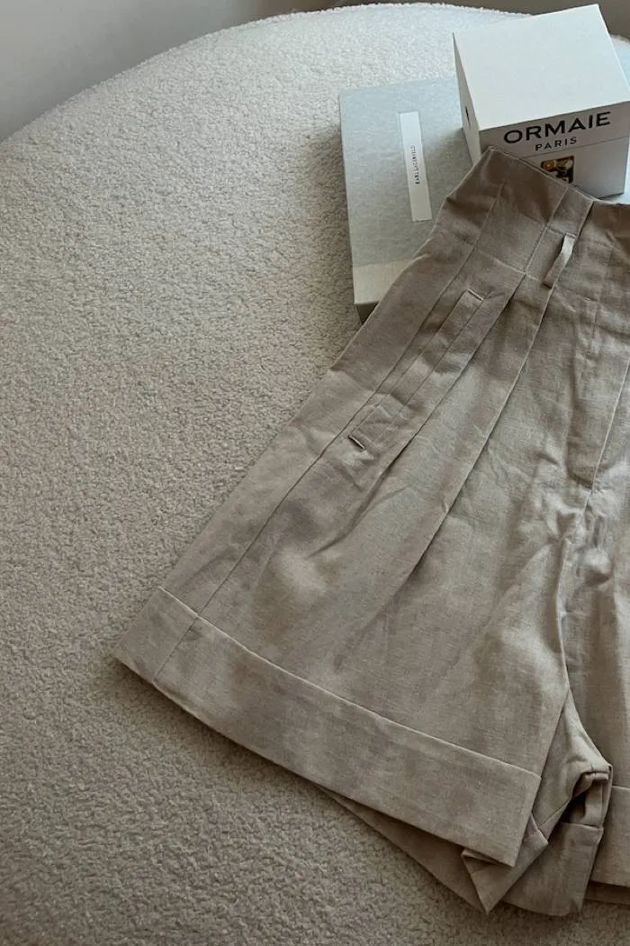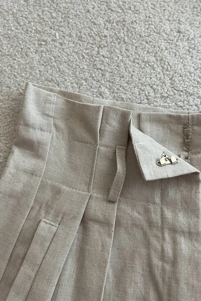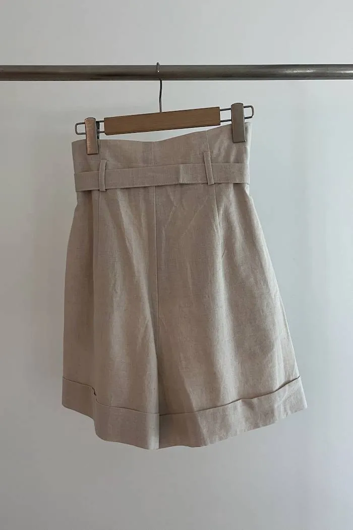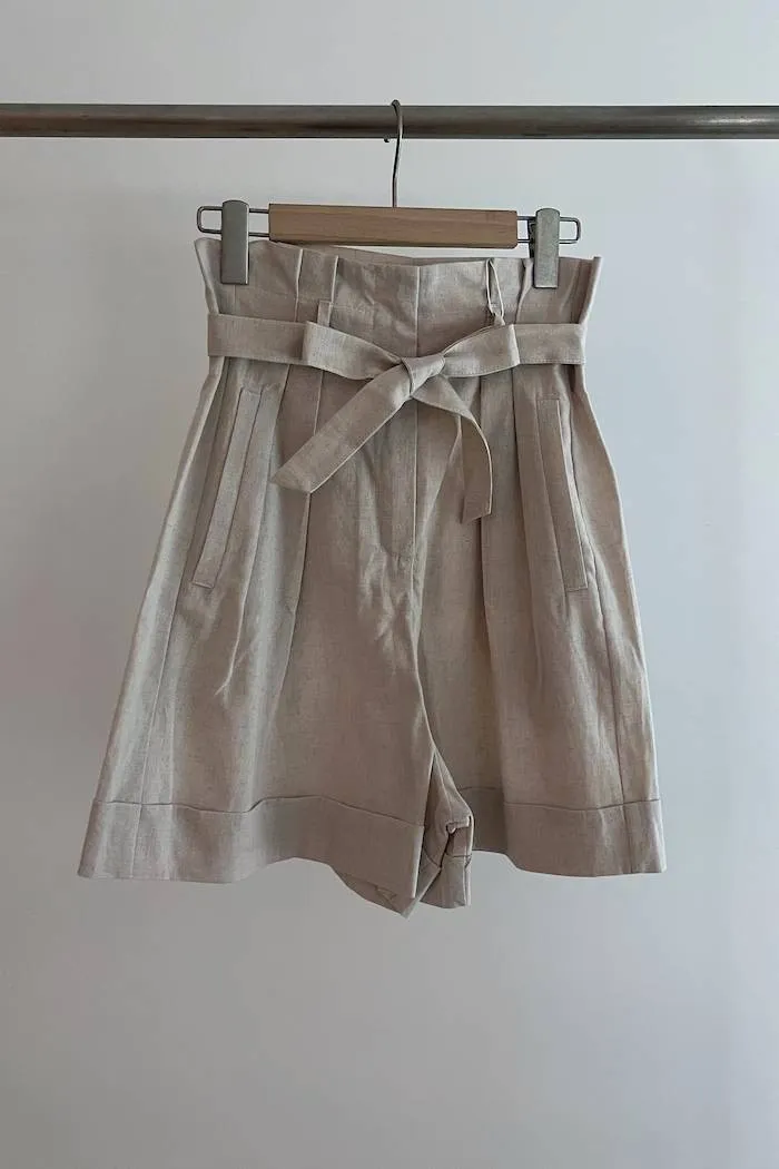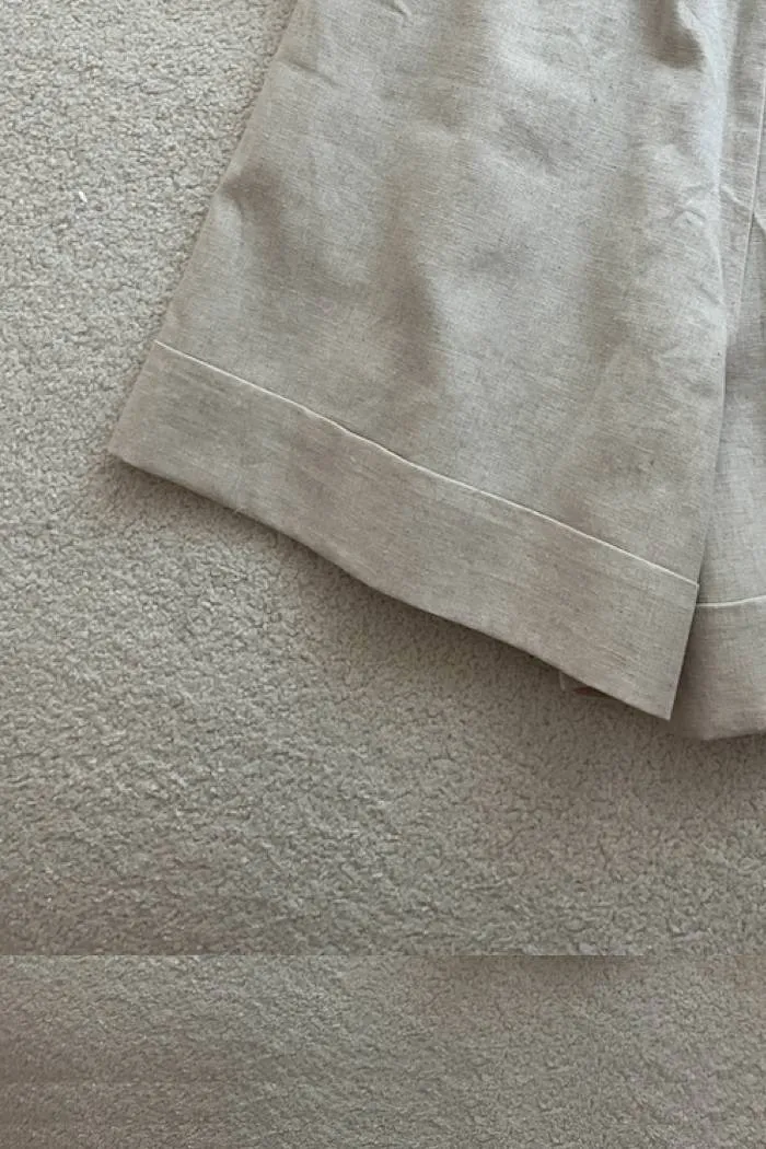 棉麻花苞反褶五分褲_附綁帶(杏S)