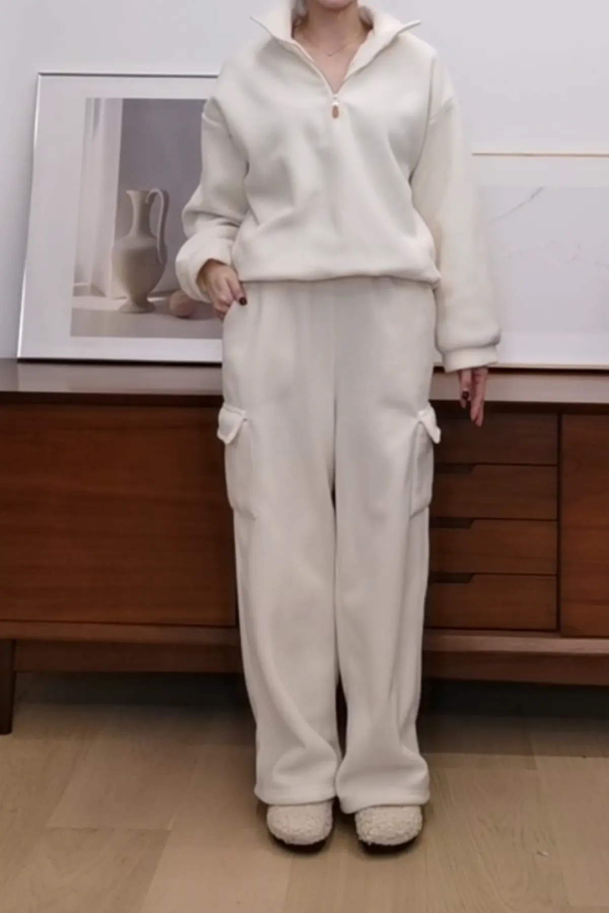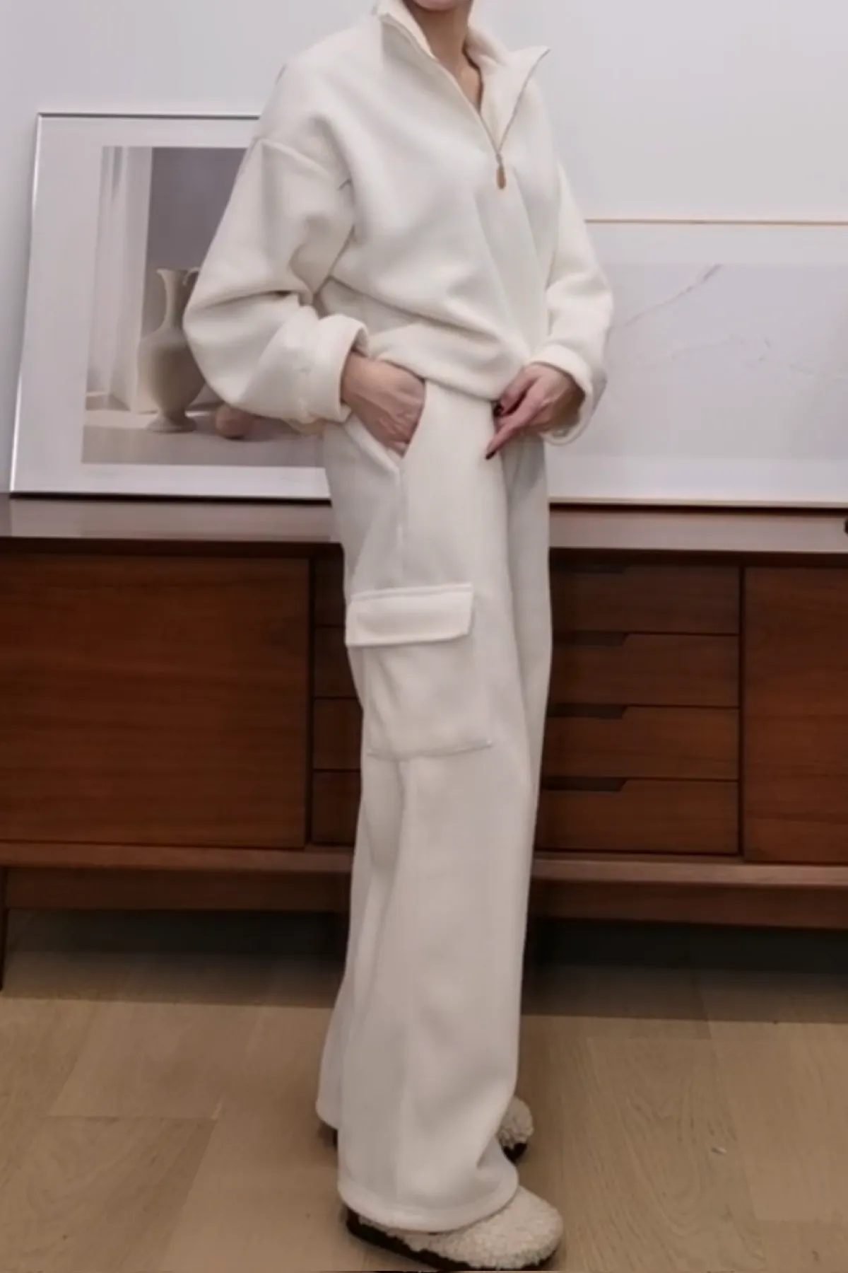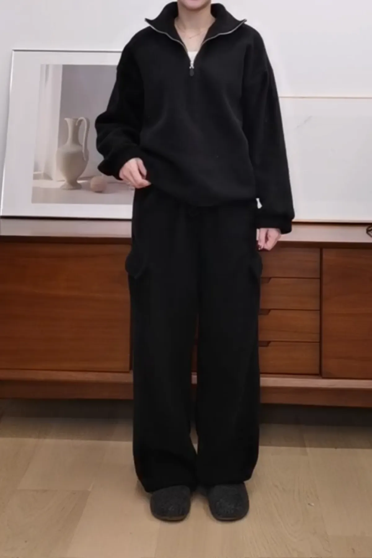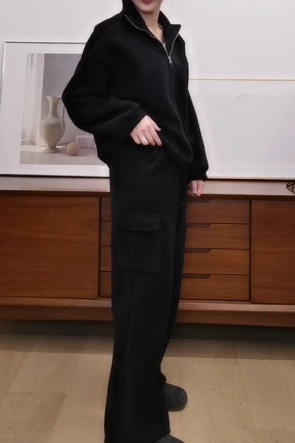 休閒鬆緊口袋寬褲