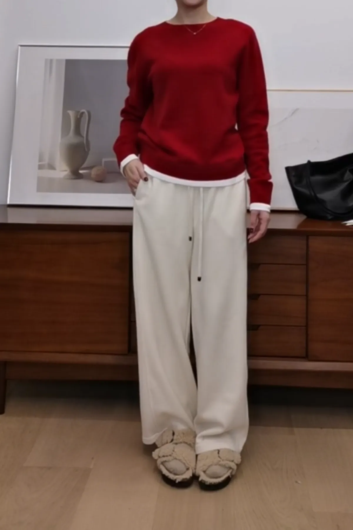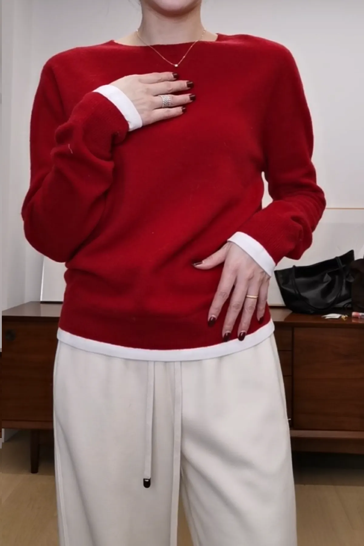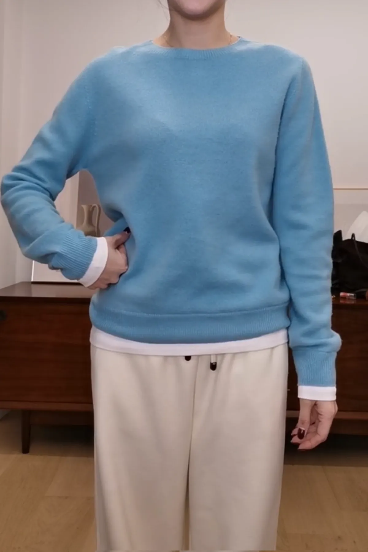 羊毛100%圓領白邊上衣
