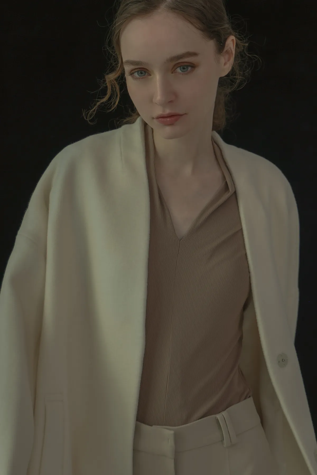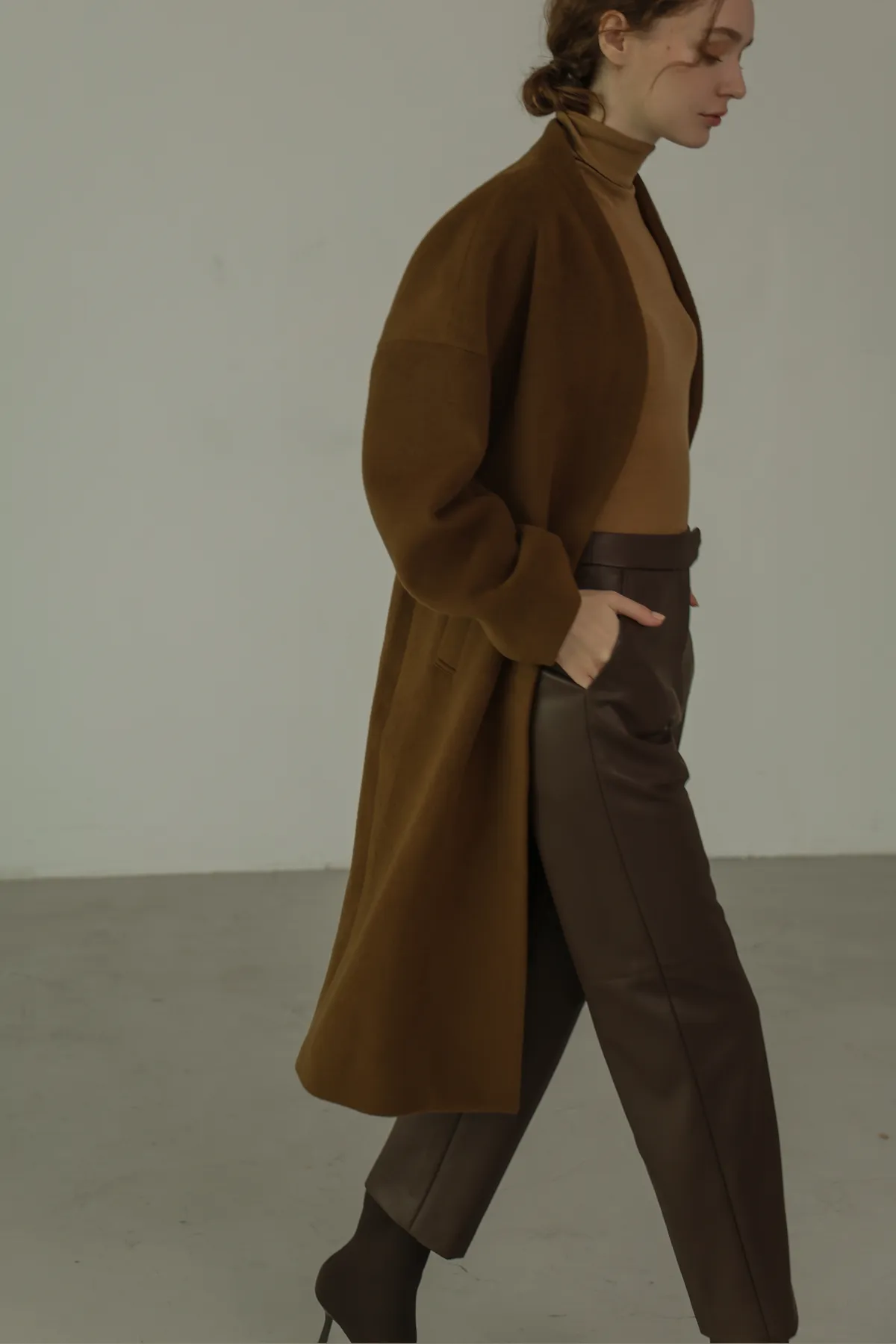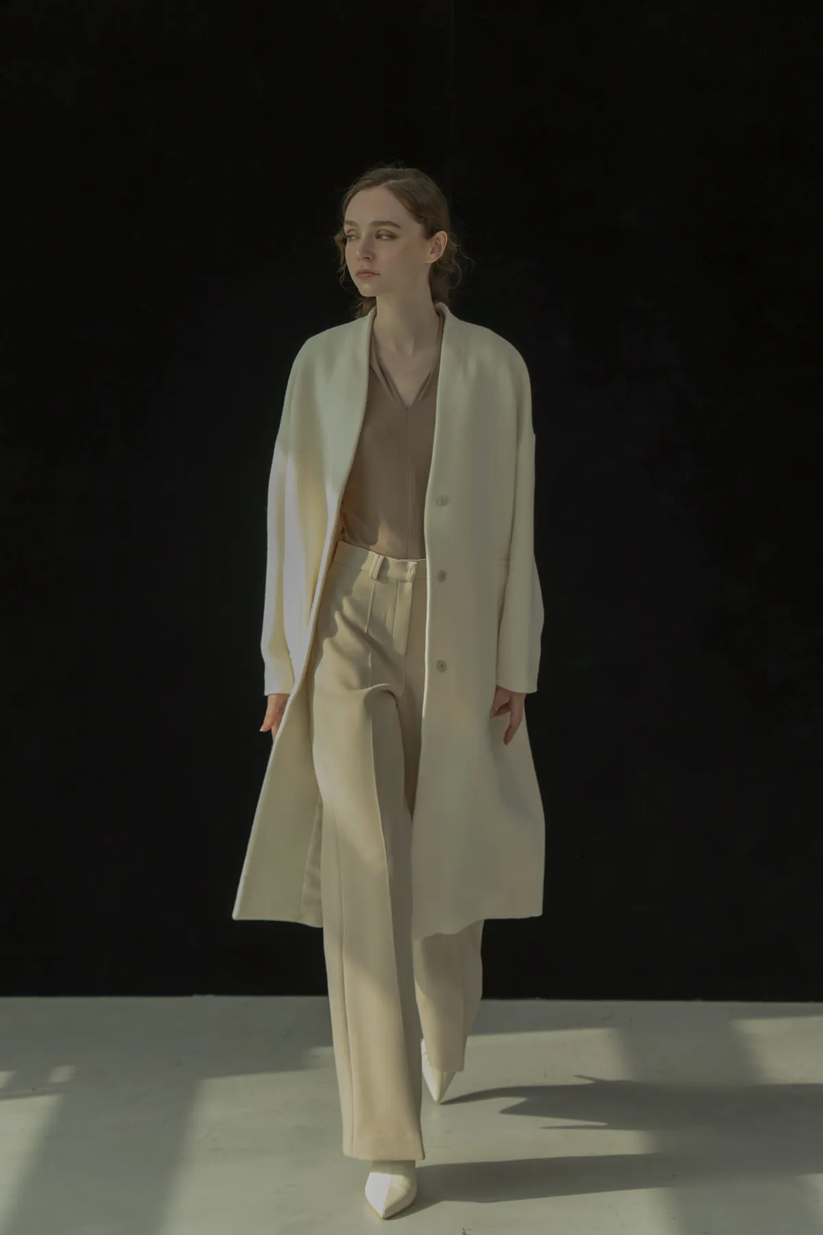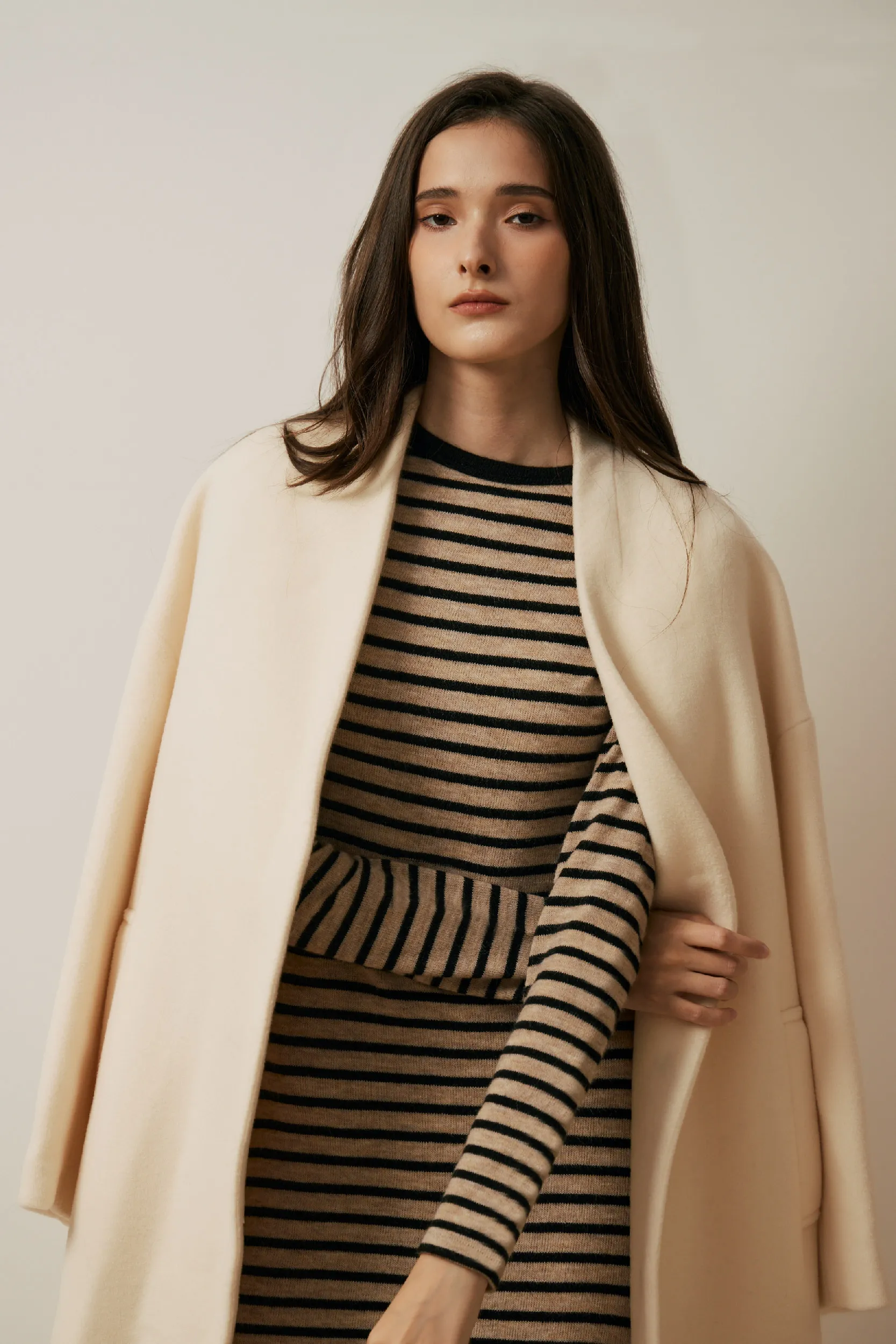 純羊毛無領壓釦長版大衣