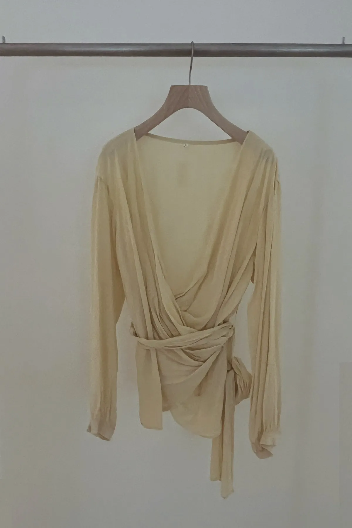 雪紡交襟綁帶上衣(黃)