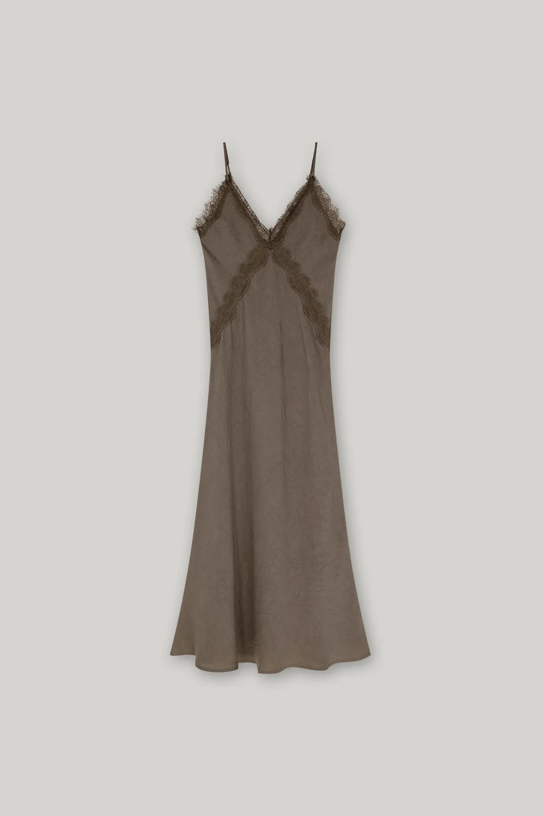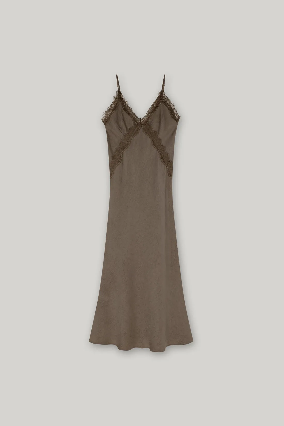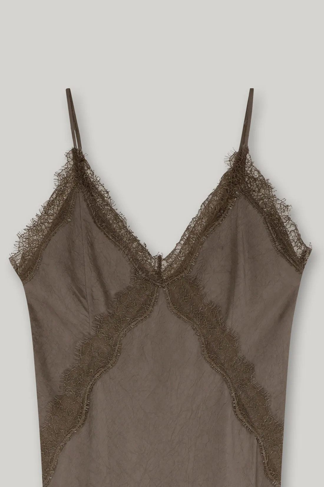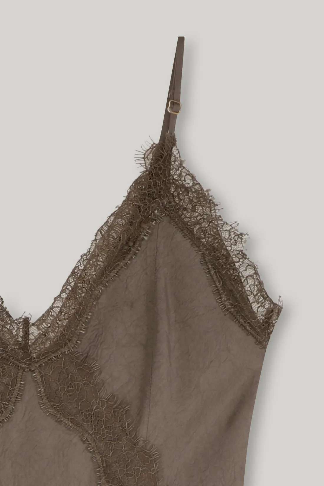 緞面V領蕾絲曲線細肩洋裝