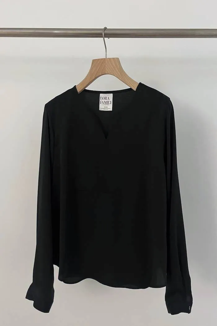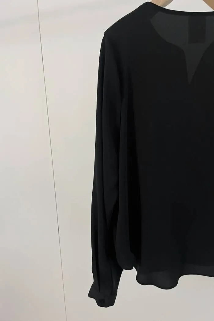 氣質簡約雪紡V領上衣(黑)