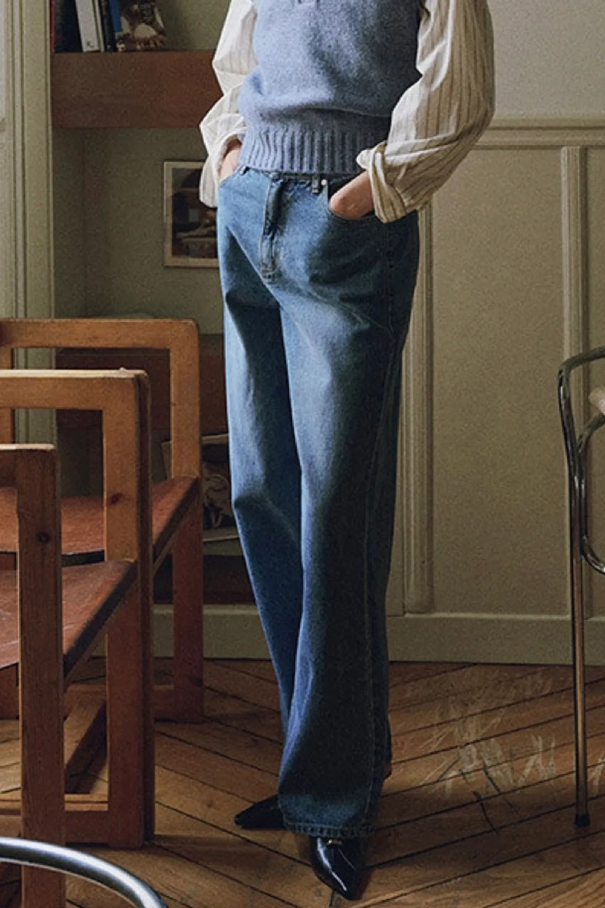 棉質後車線牛仔褲