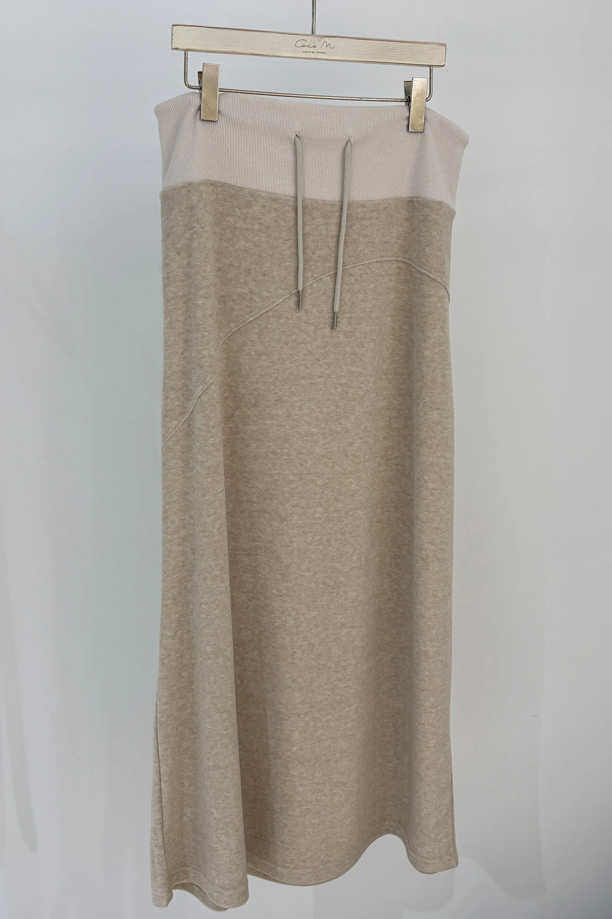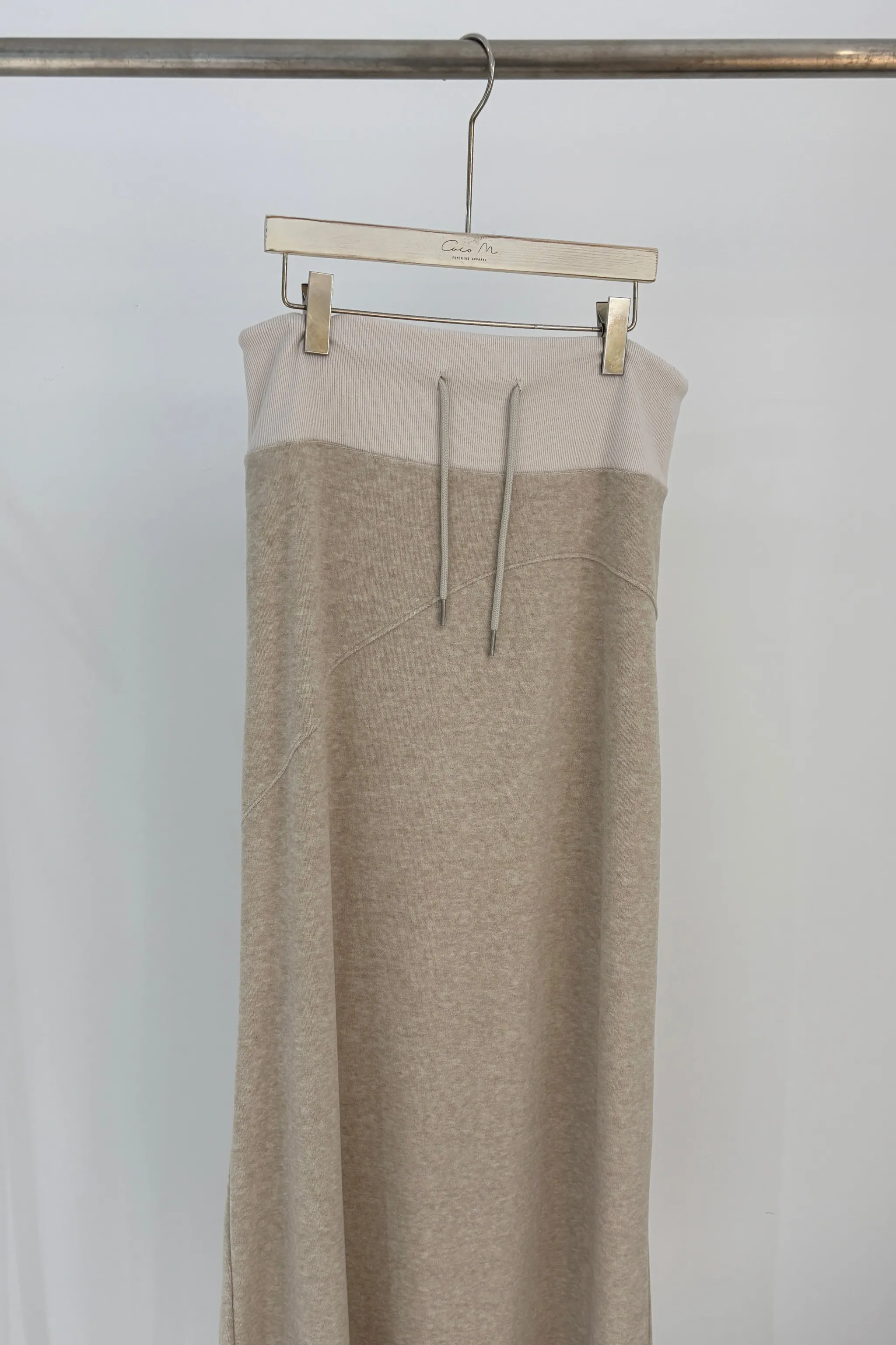 嫘縈絨面抽繩長裙