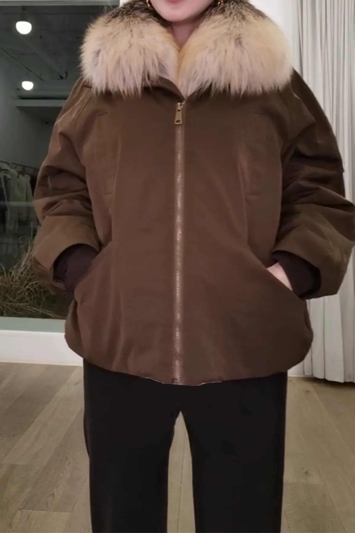 芬蘭狐狸毛鵝絨羽絨外套