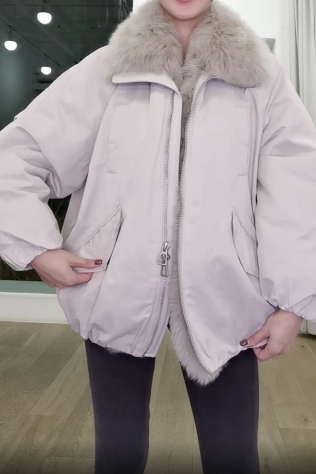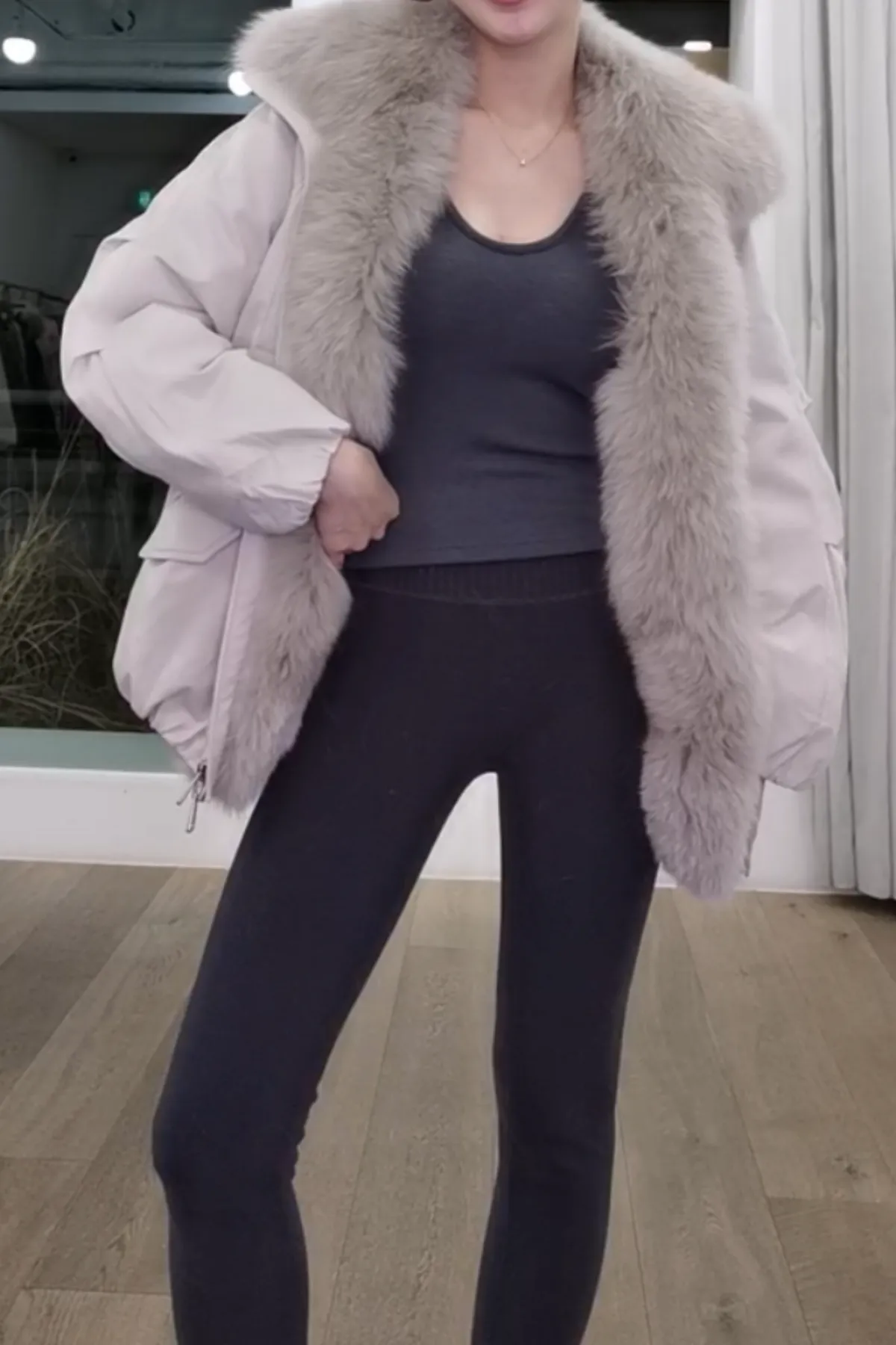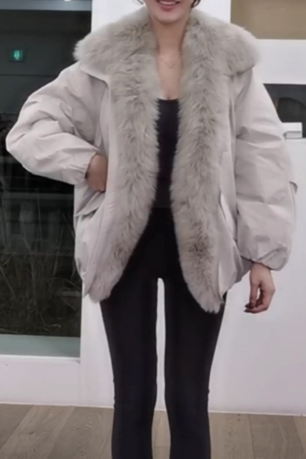 蓬蓬狐狸毛鵝絨羽絨外套