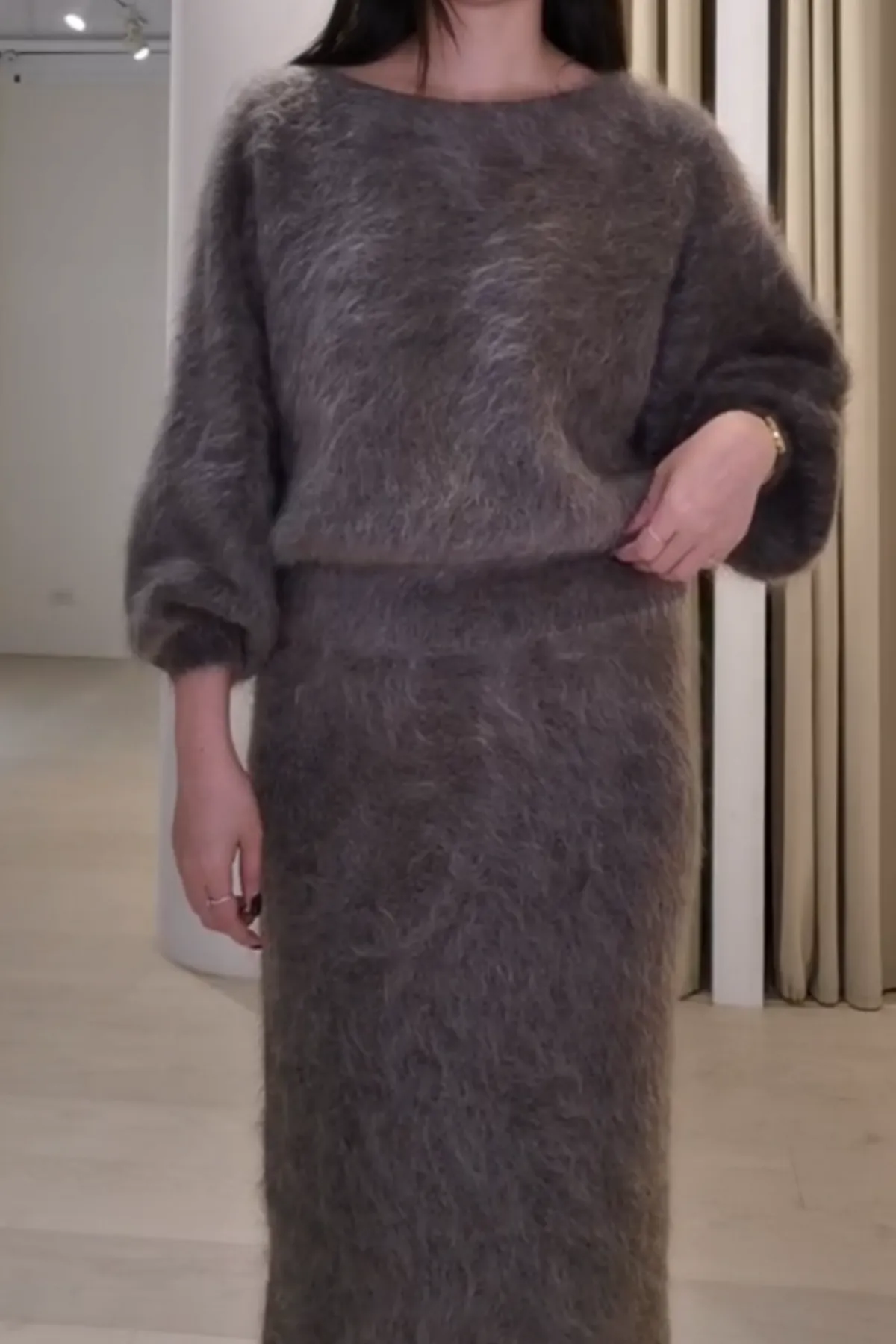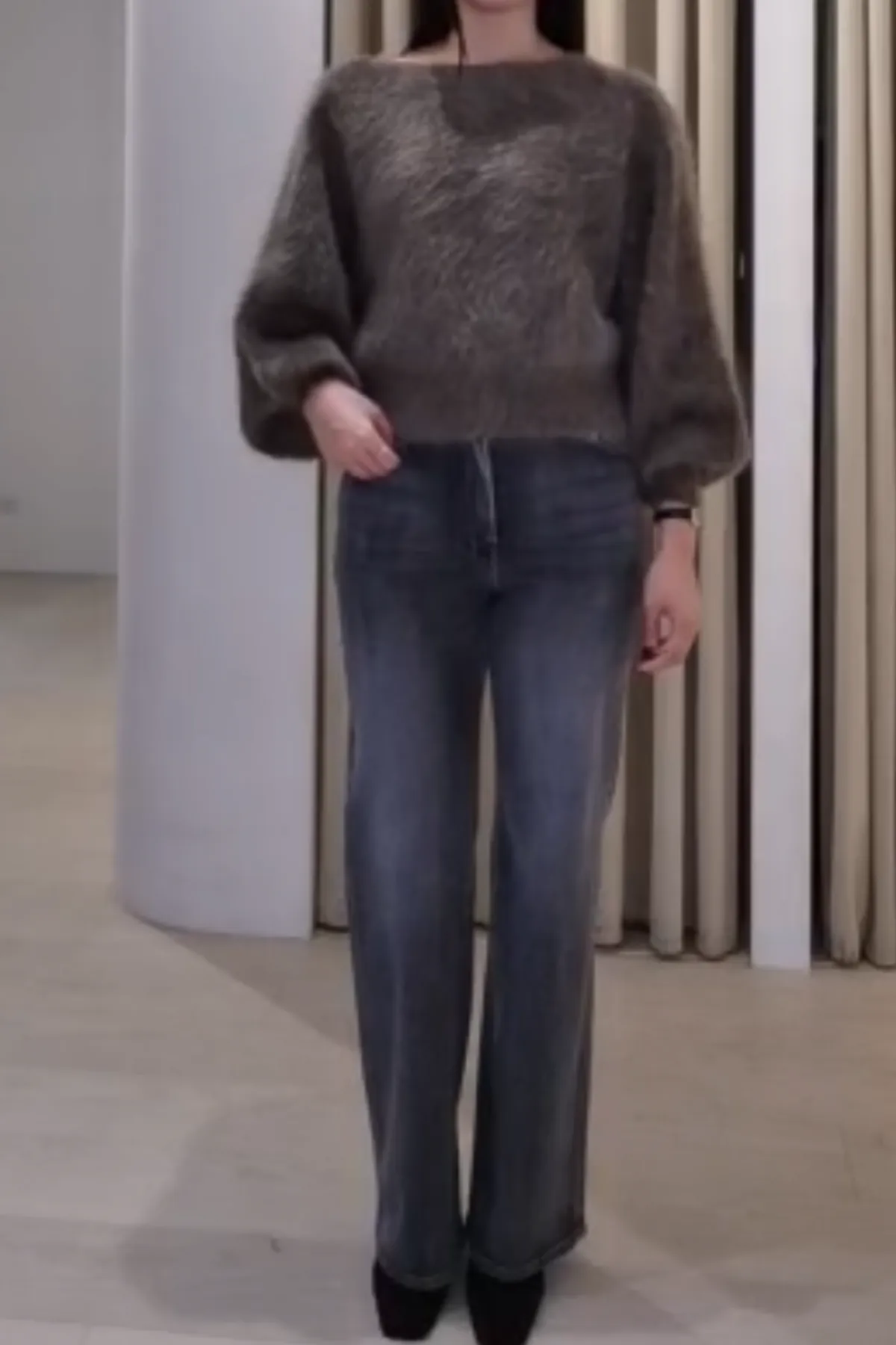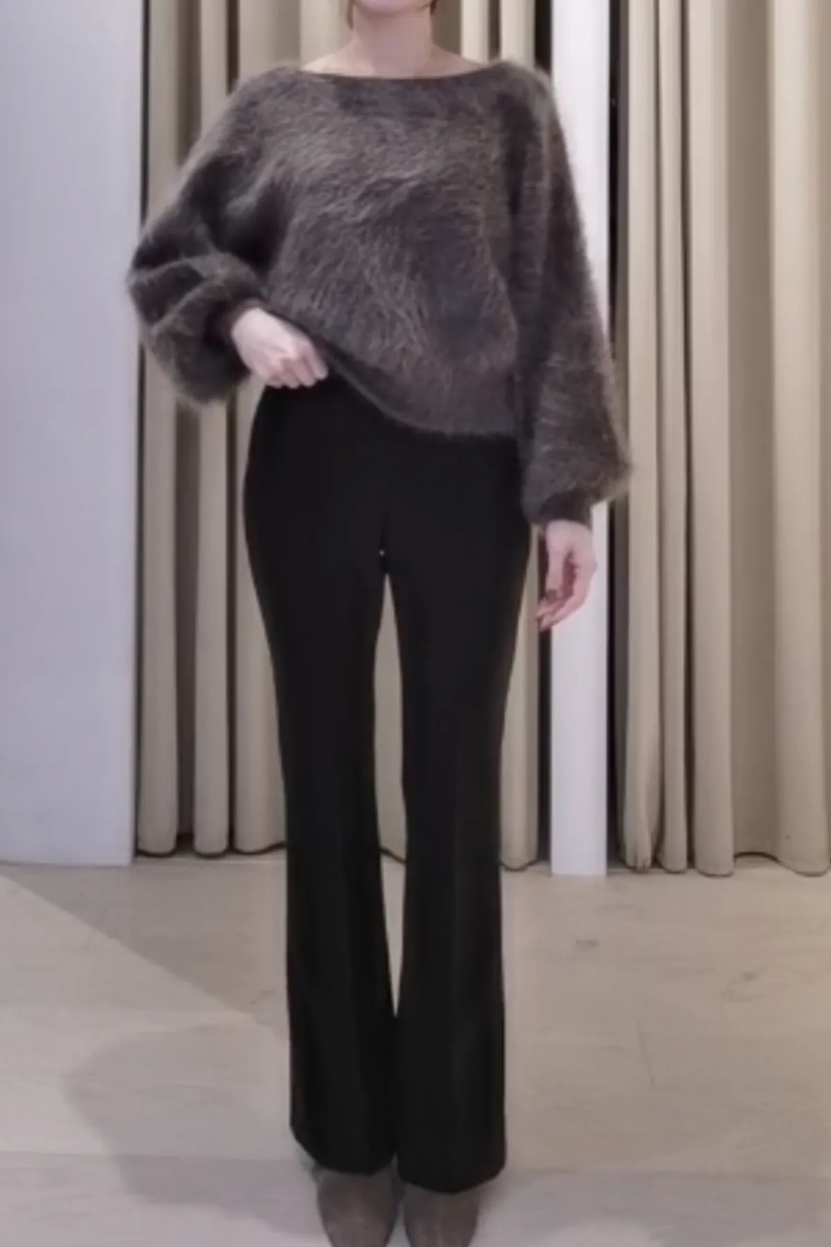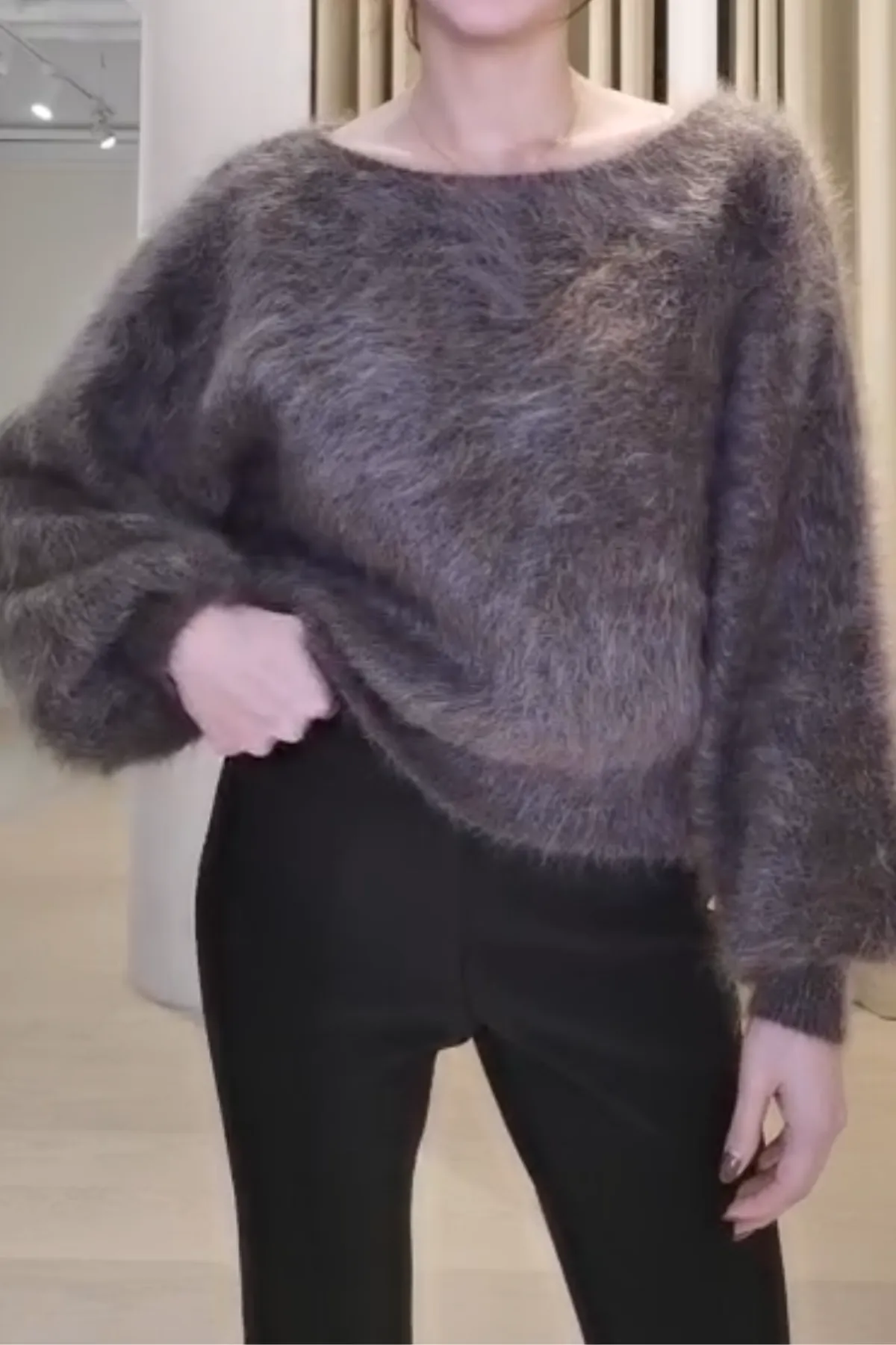 安哥拉毛茸船領上衣