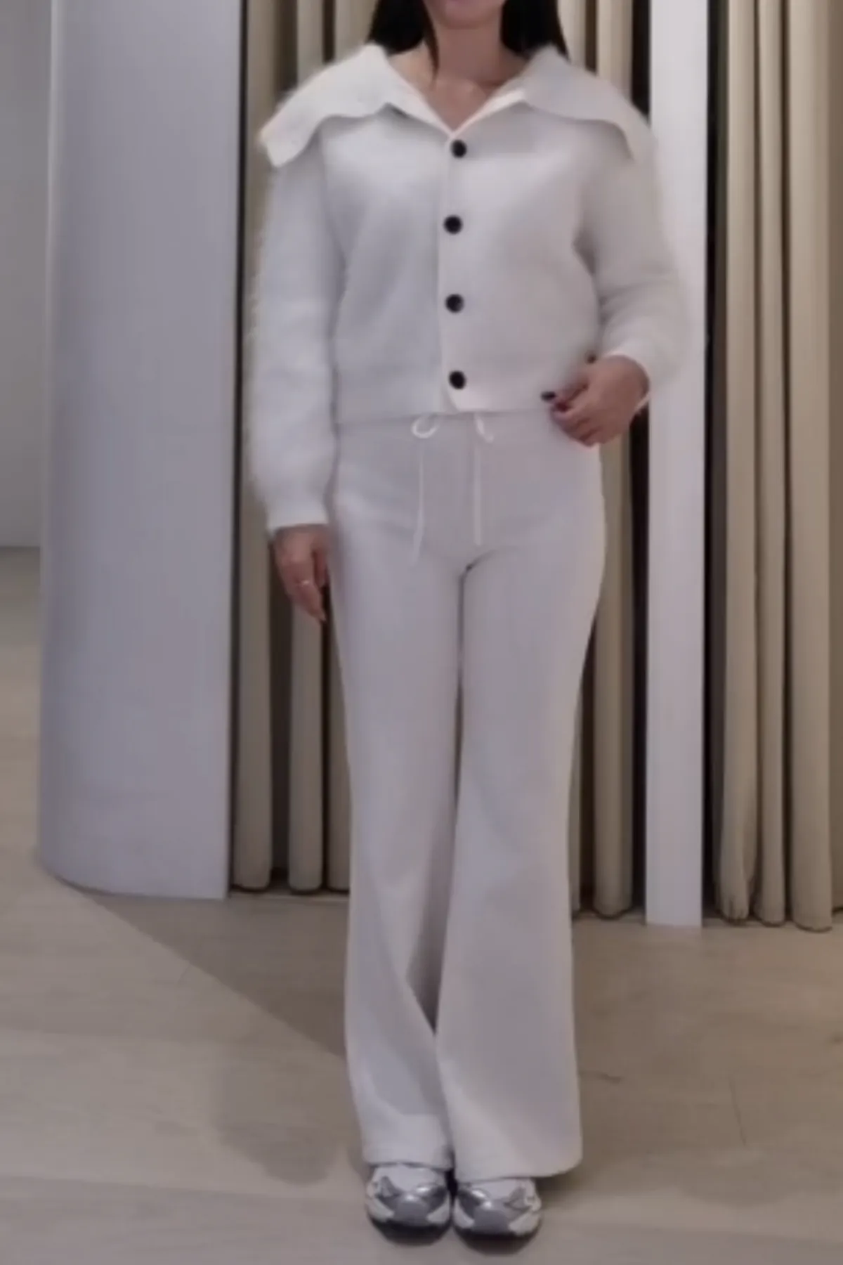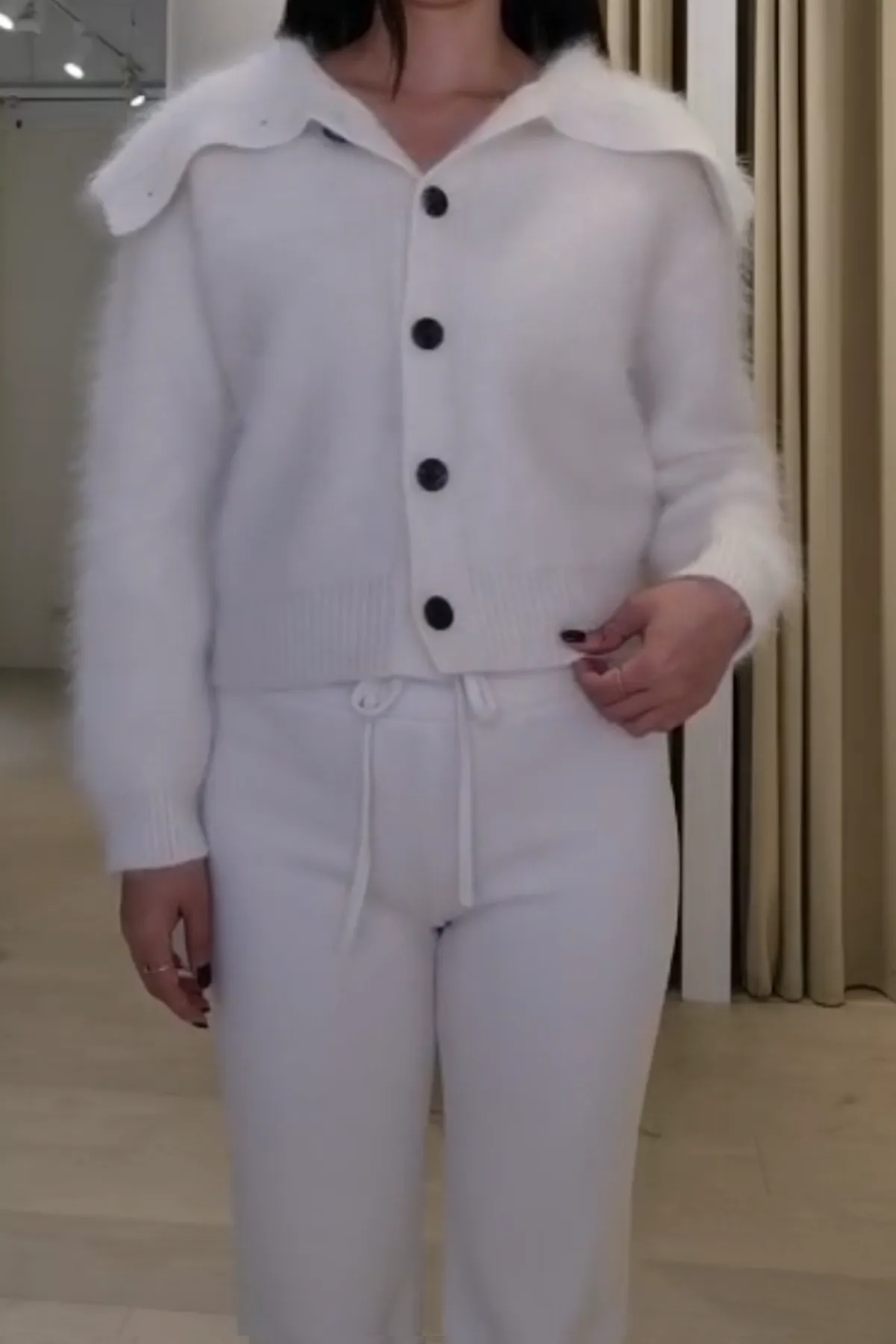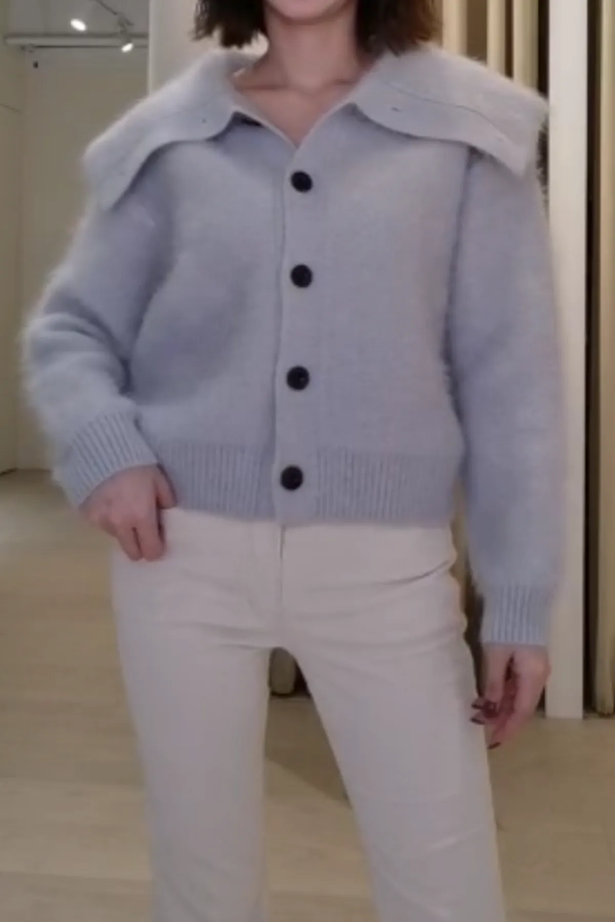 安哥拉羊毛水手領排釦衫