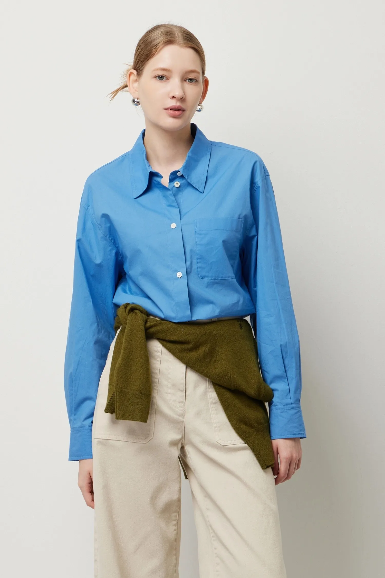 棉質單口袋小刺繡襯衫