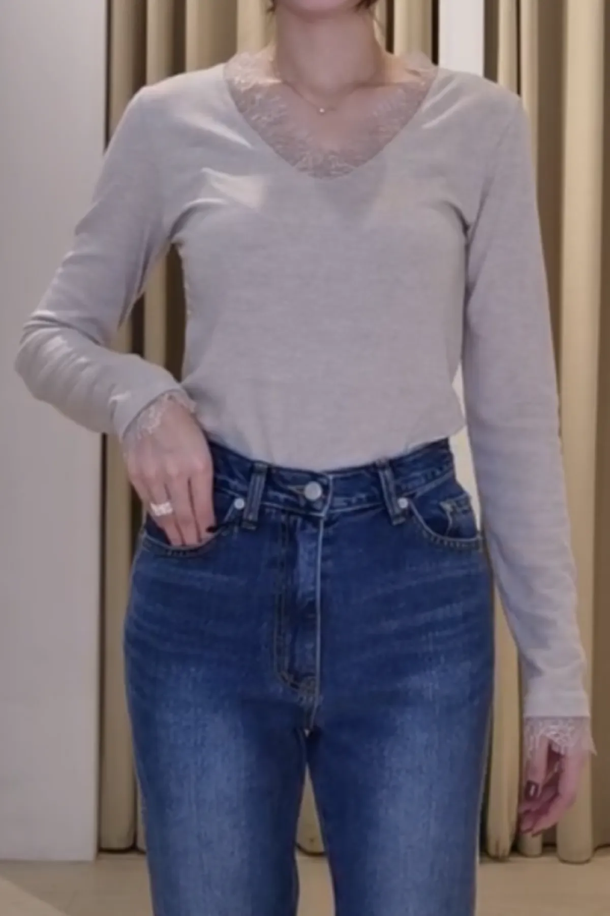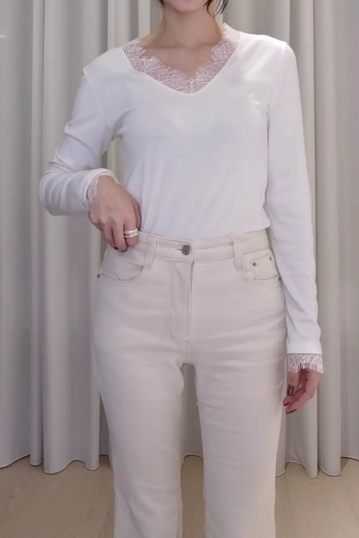 嫘縈睫毛蕾絲V領T
