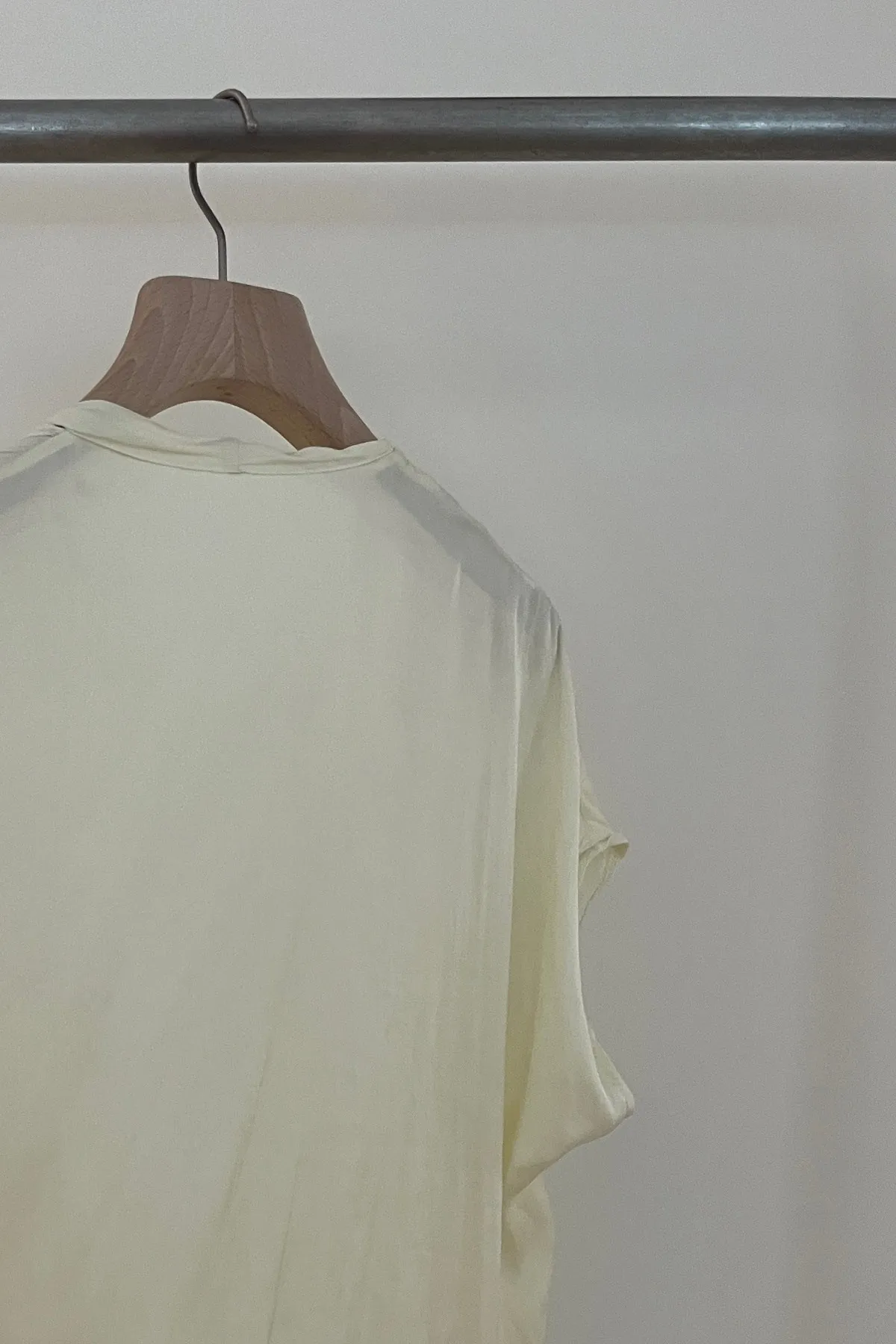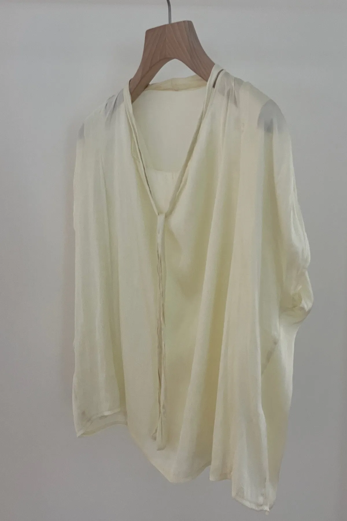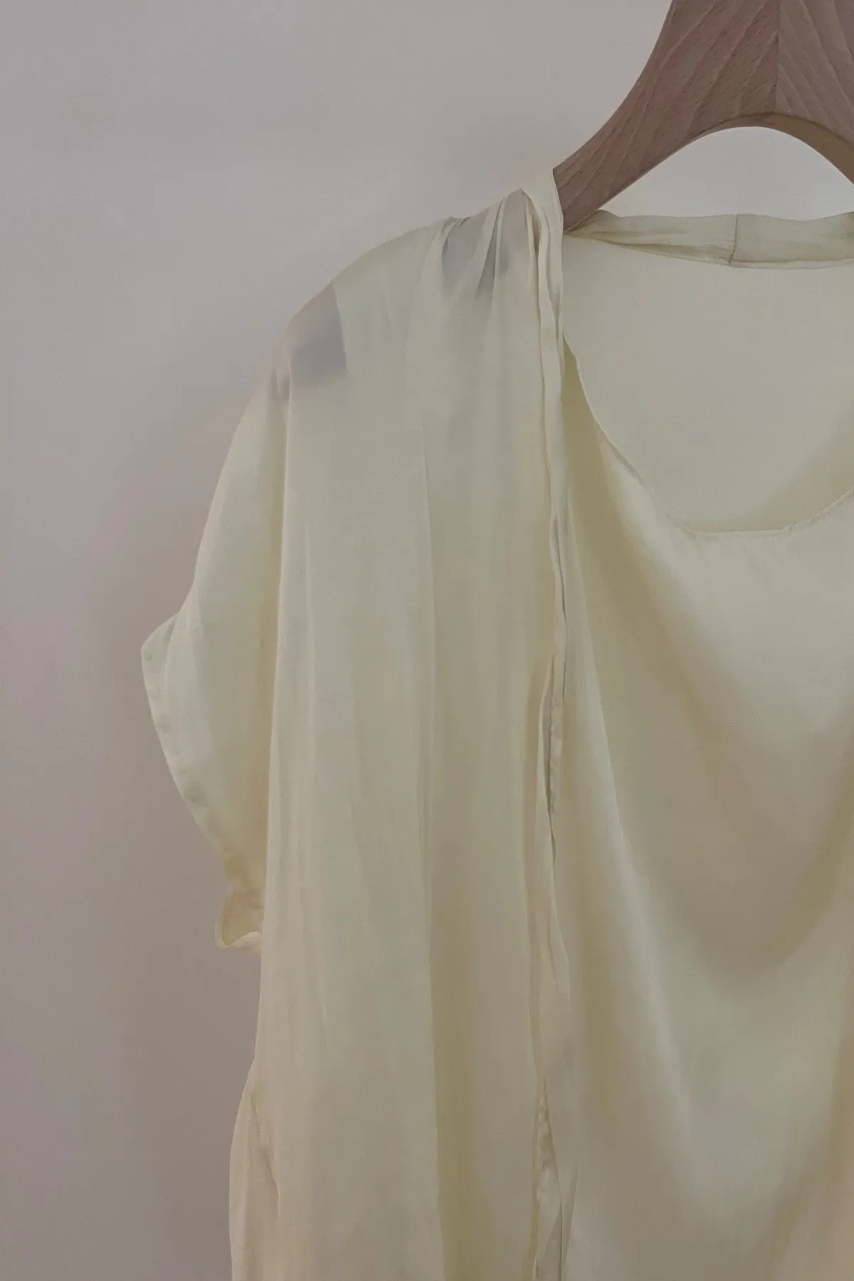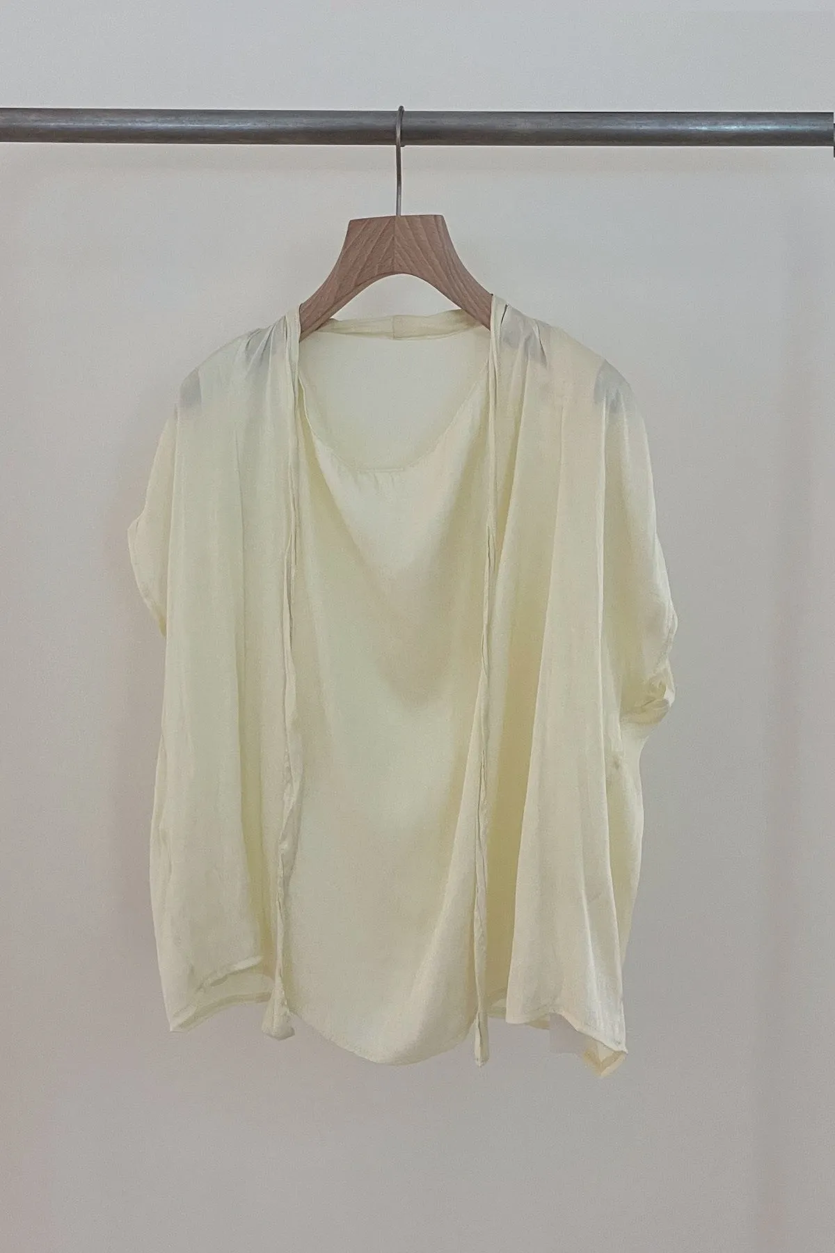 輕盈圓領綁繩抓皺上衣(黃)