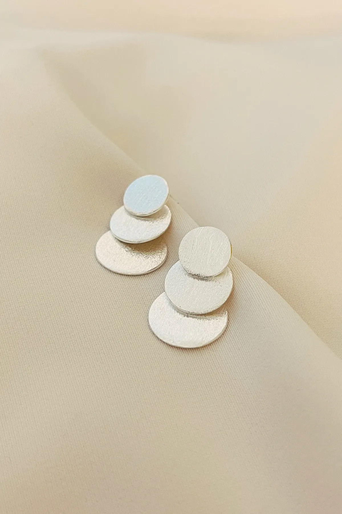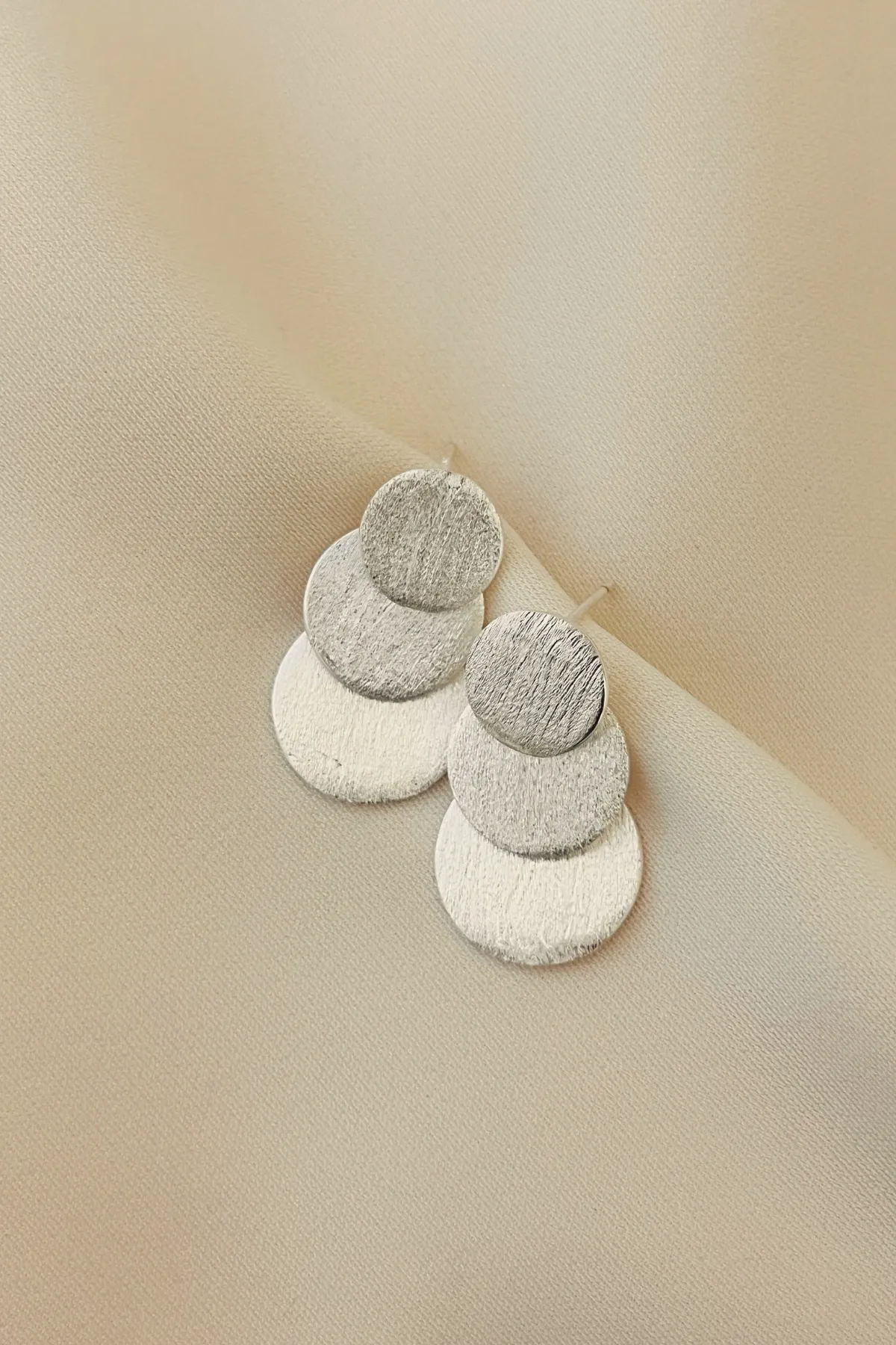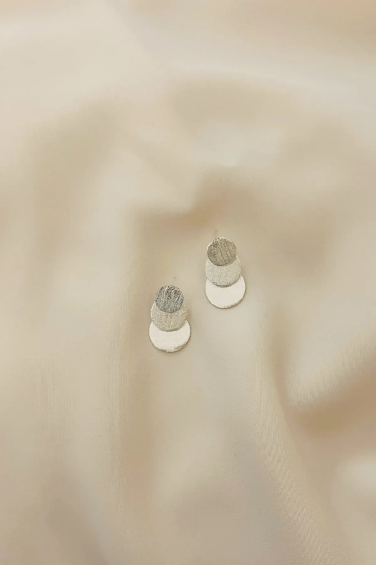 S925純銀-磨砂圓片串耳環