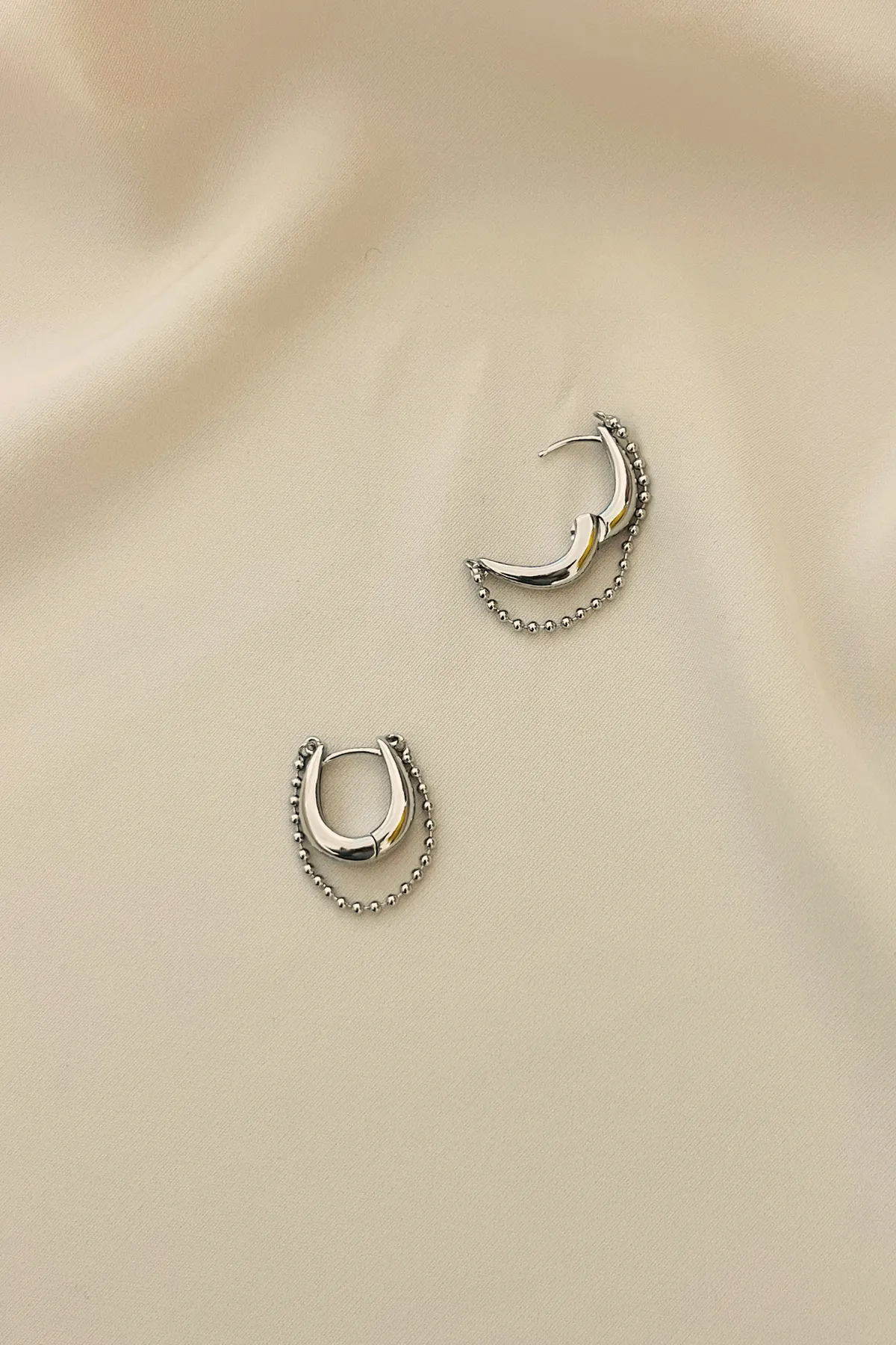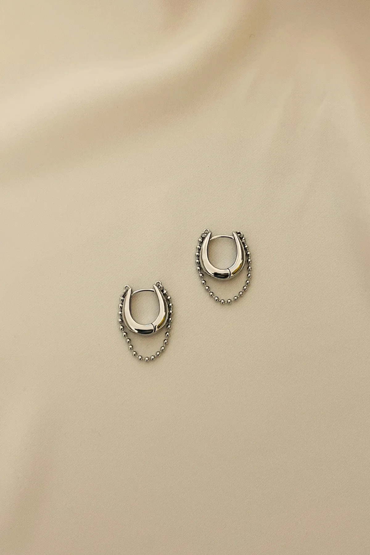 S925純銀-珠鍊U型壓釦耳環