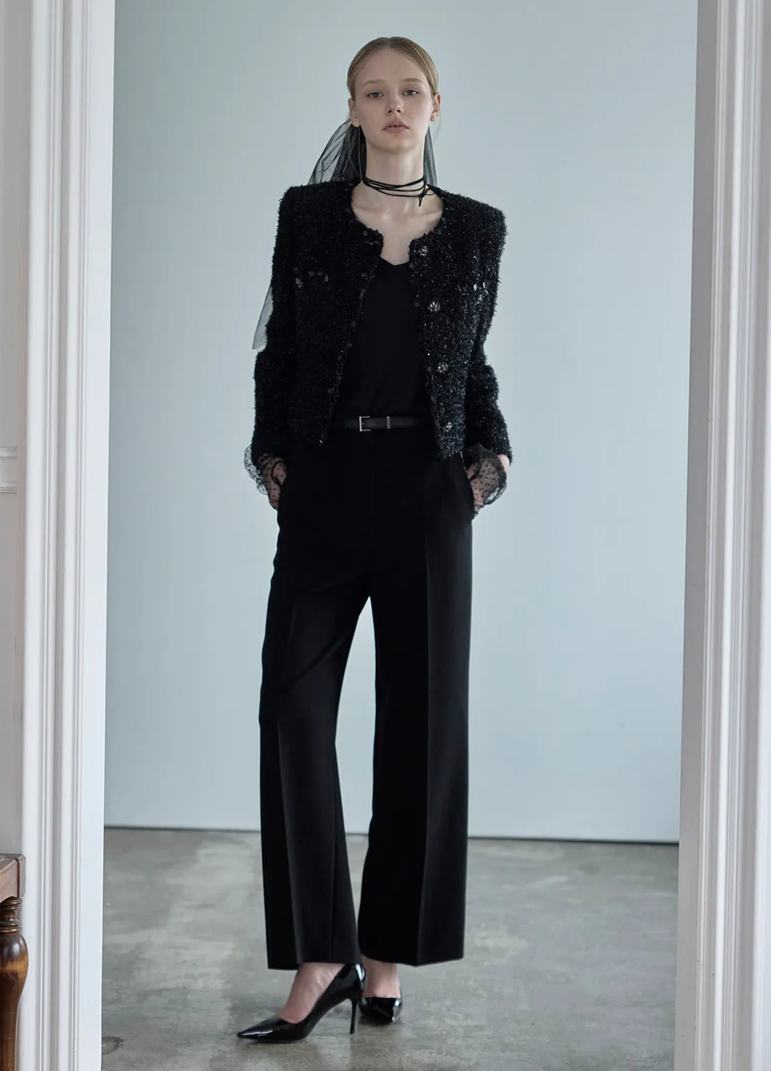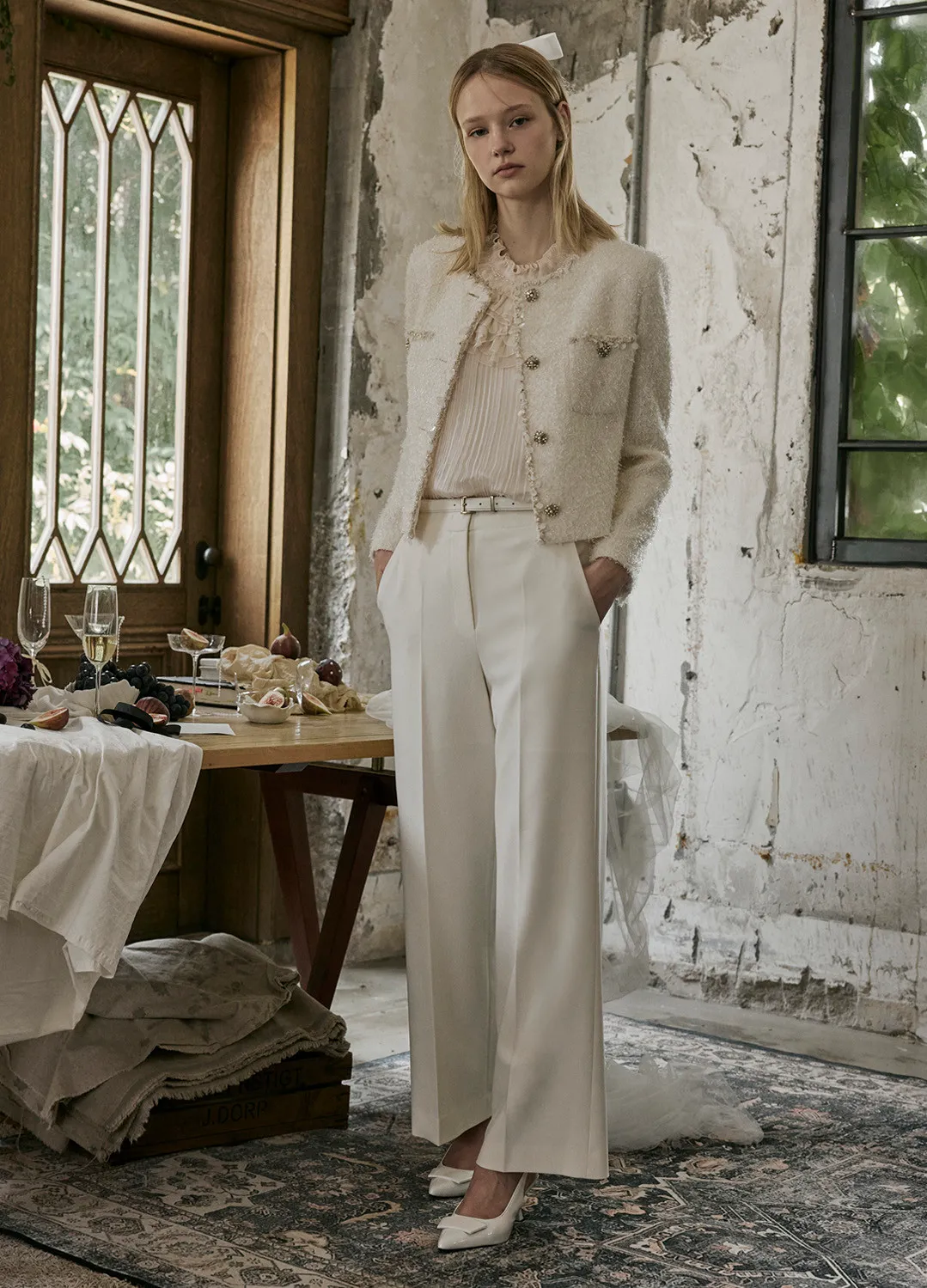 無腰頭西裝褲(附方頭皮帶)