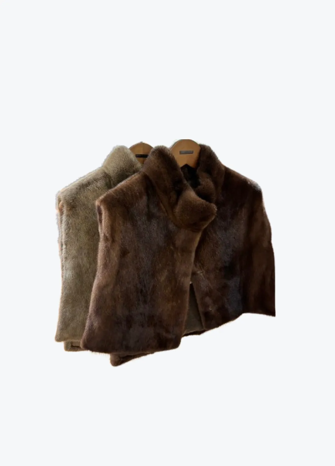 外層材質: 天然毛皮(貂皮)100% 內部材質: 羊毛 90% 羊絨 10% 填充材質: 聚酯纖維 100%