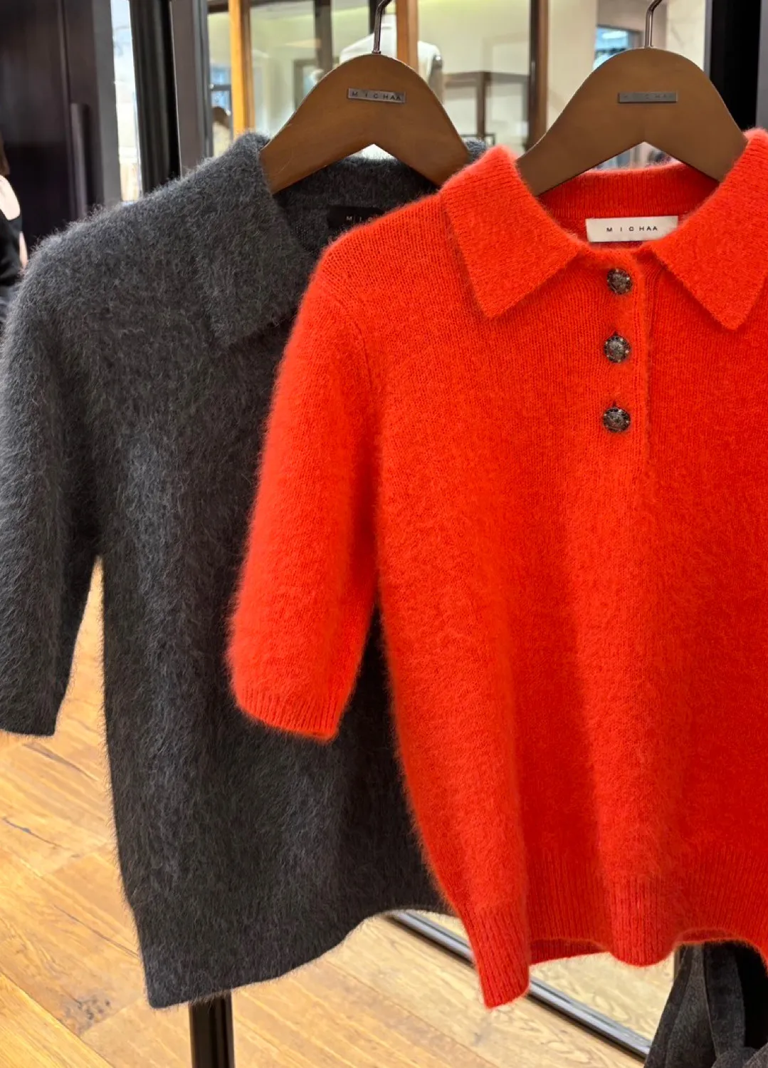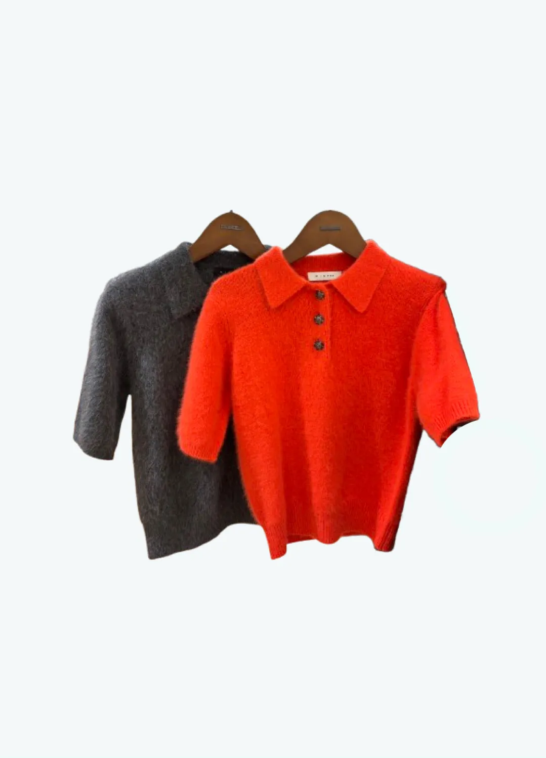 狐狸羊駝毛翻領三釦短袖上衣