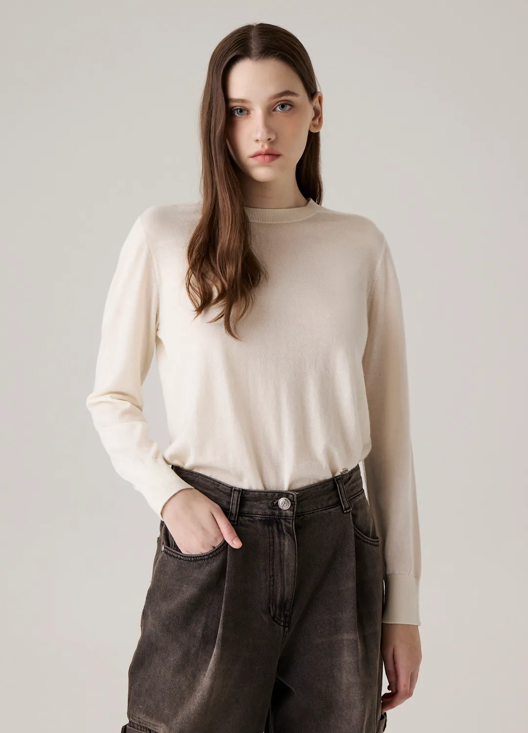 Cashmere100%後中線針織上衣
