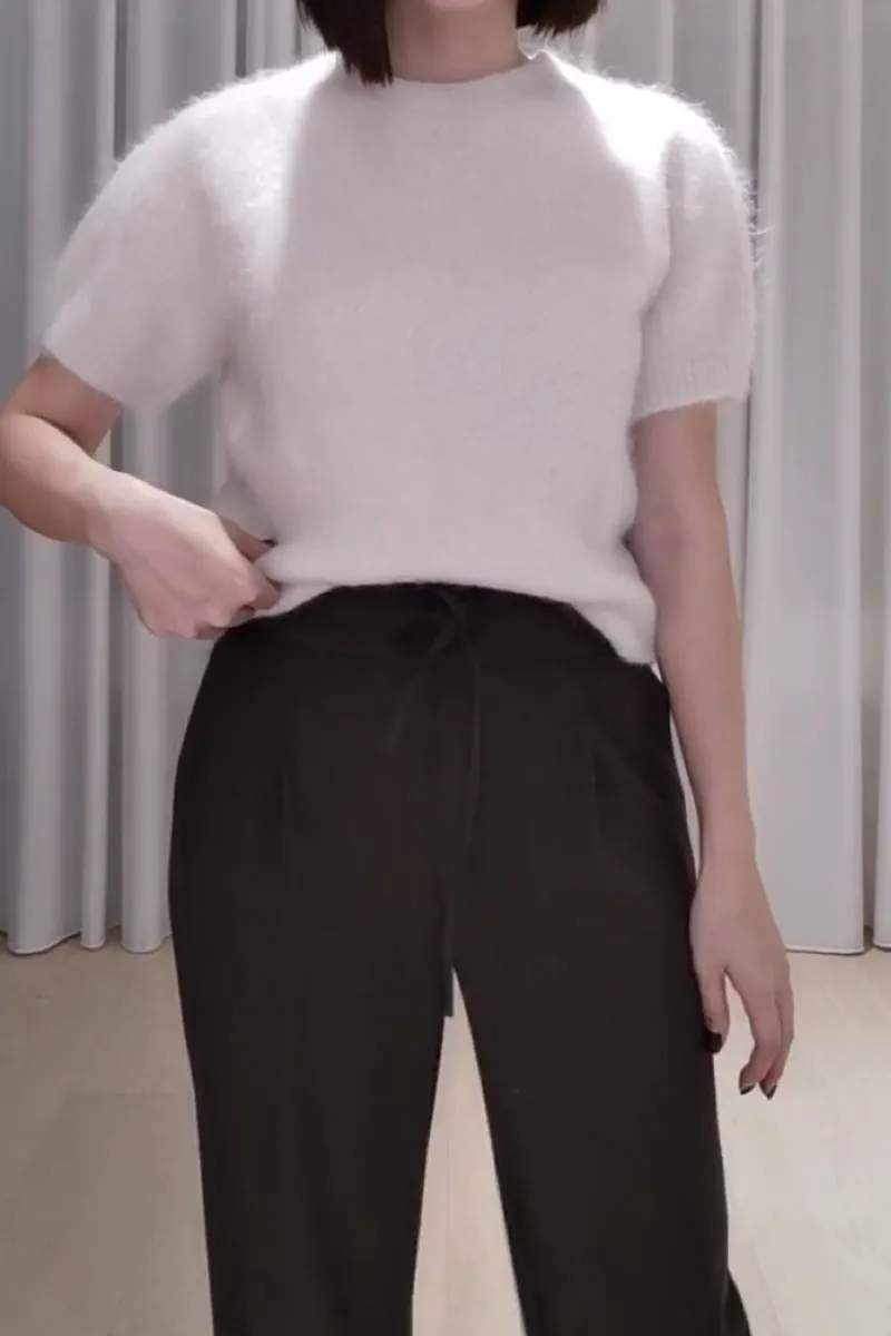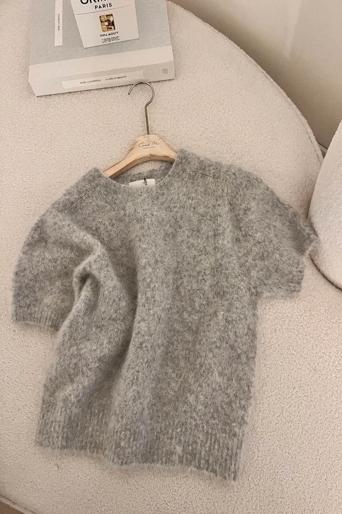 羊駝毛柔軟圓領上衣(灰)