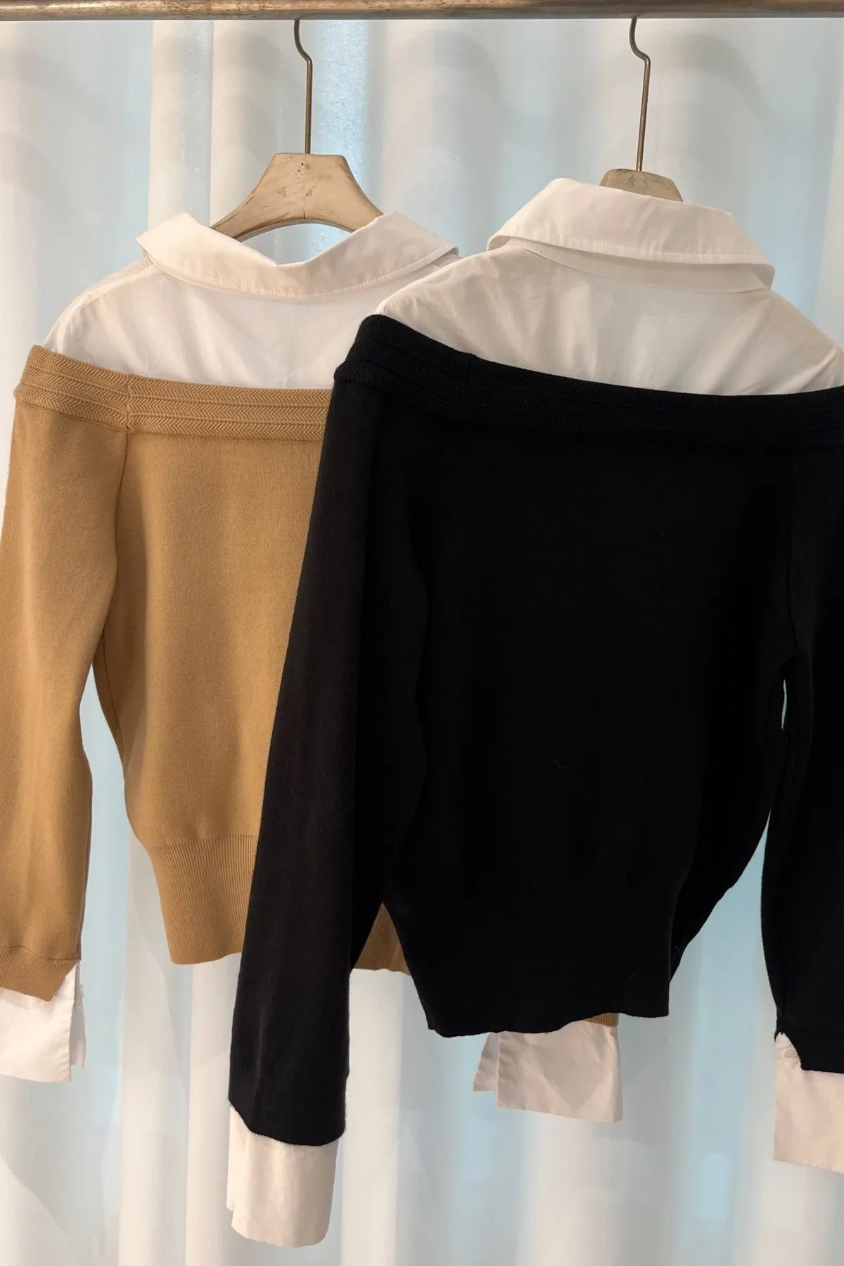 襯衫拼接排釦上衣