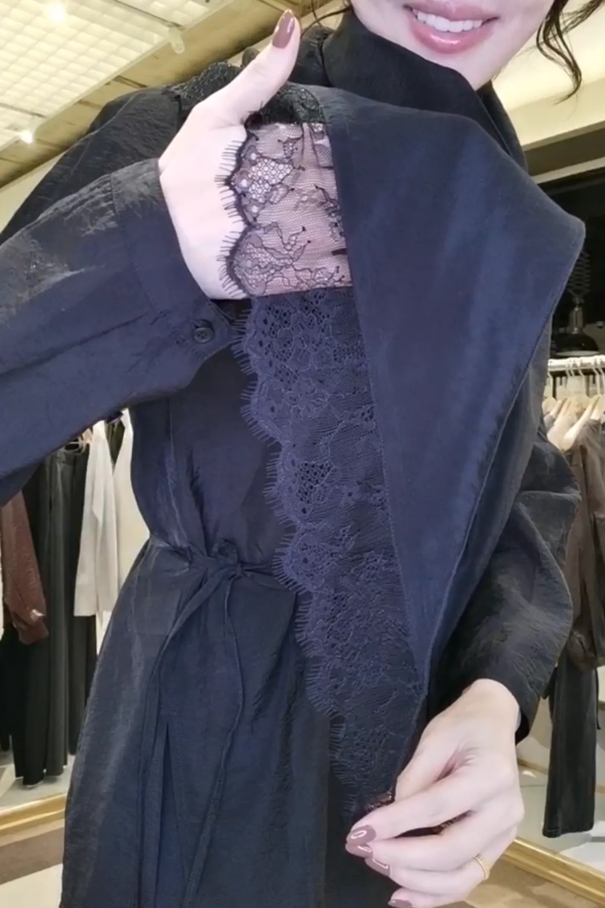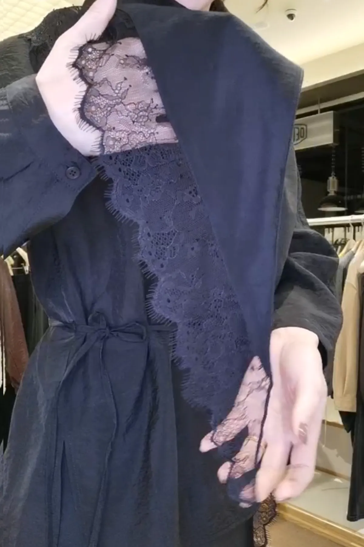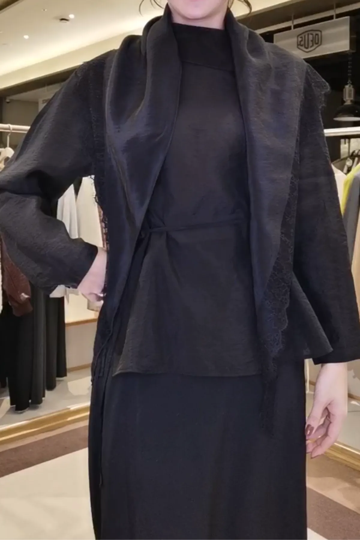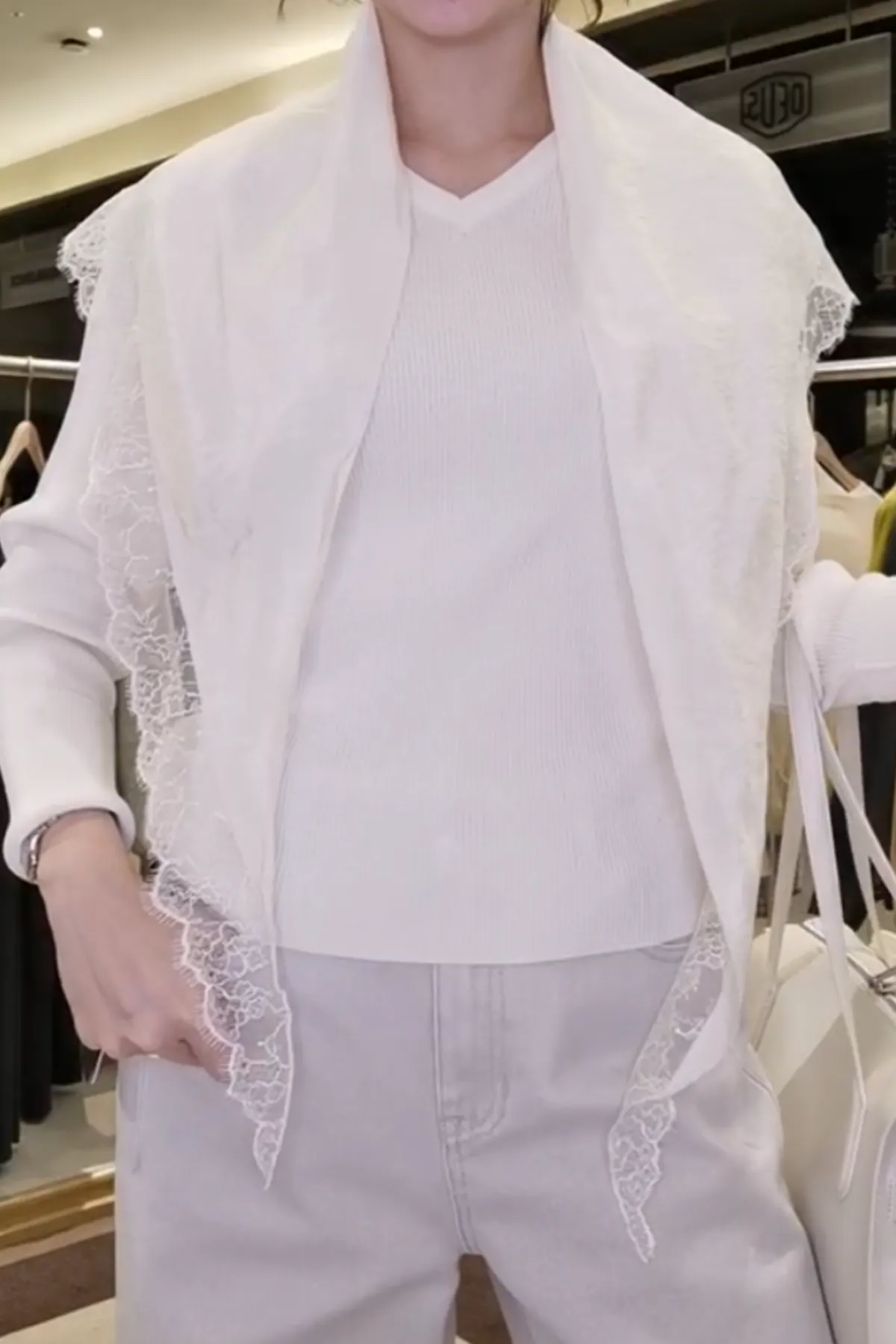 蕾絲滾邊緞面圍巾