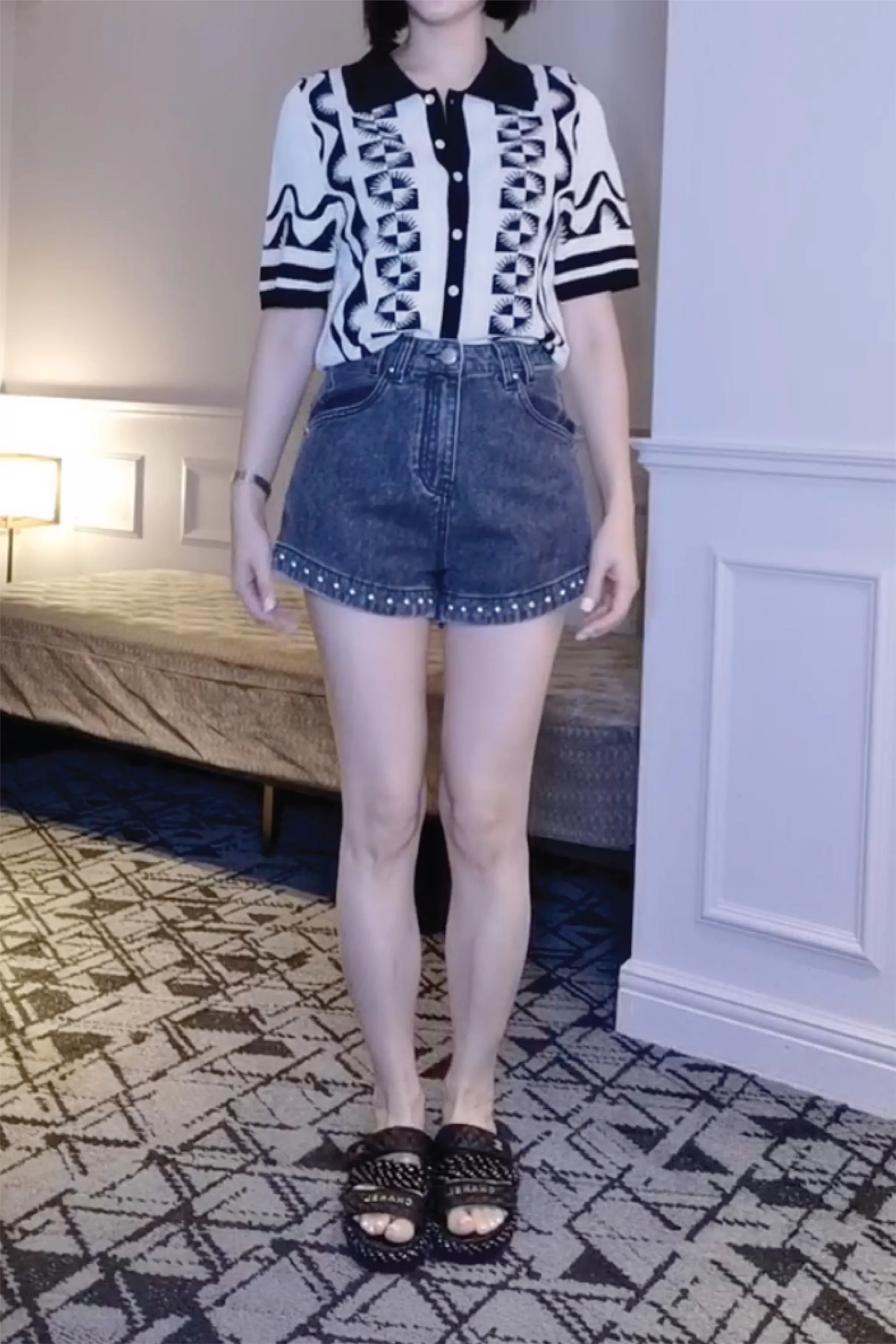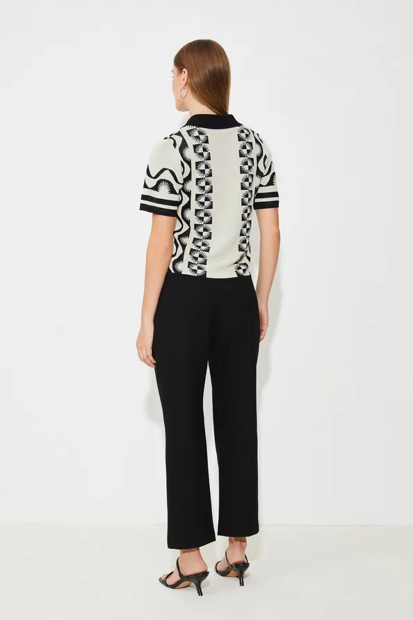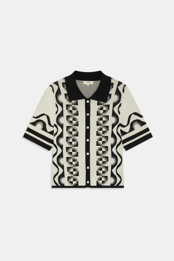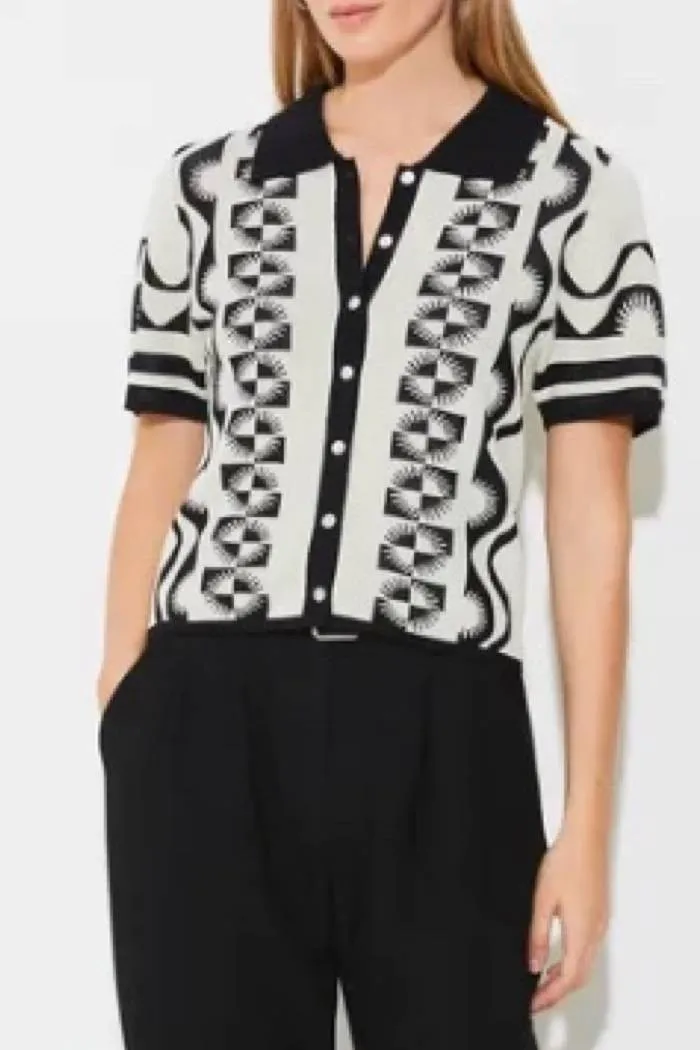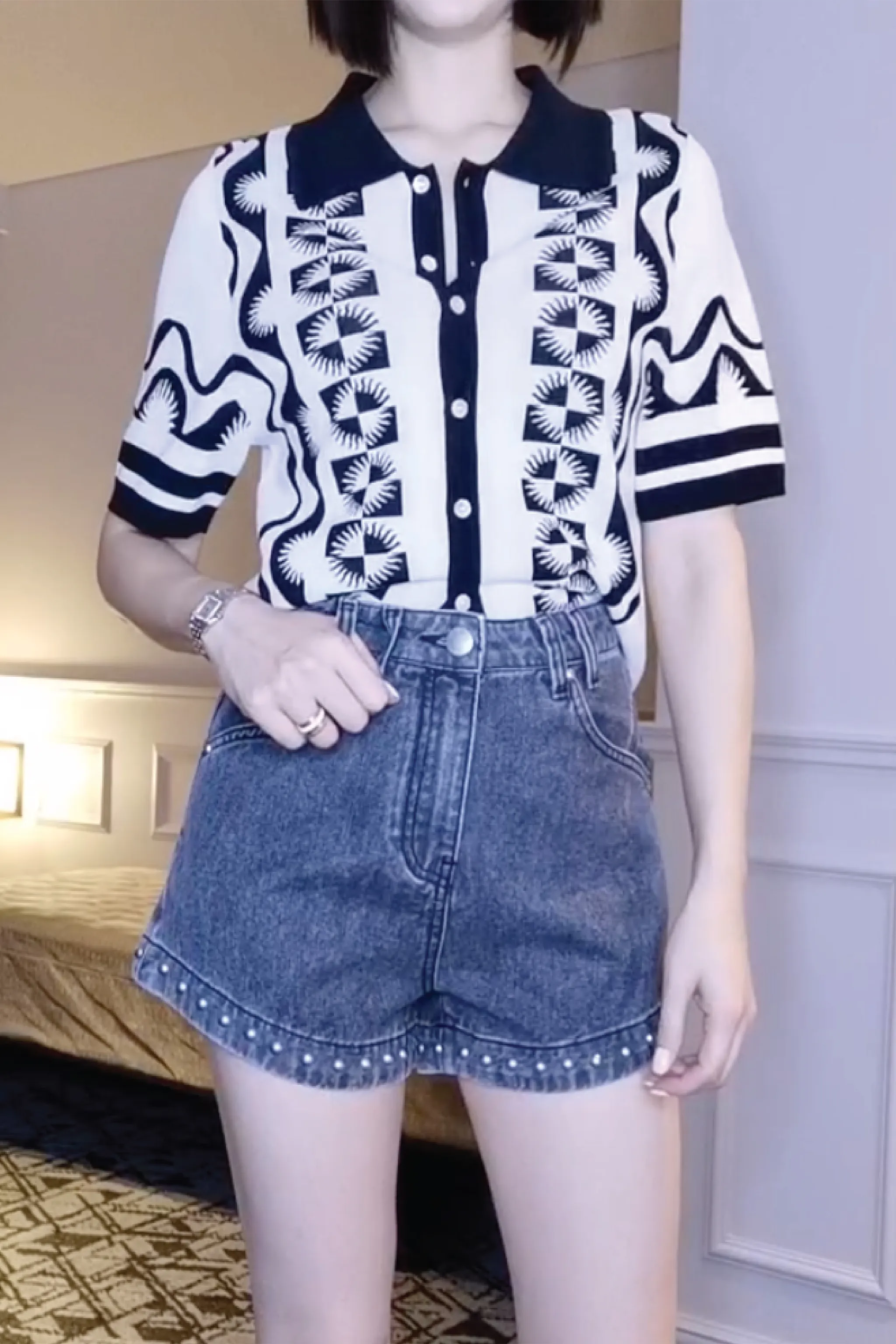 SUNCOO日本選品-撞色幾何提花排釦Polo衫(黑S)