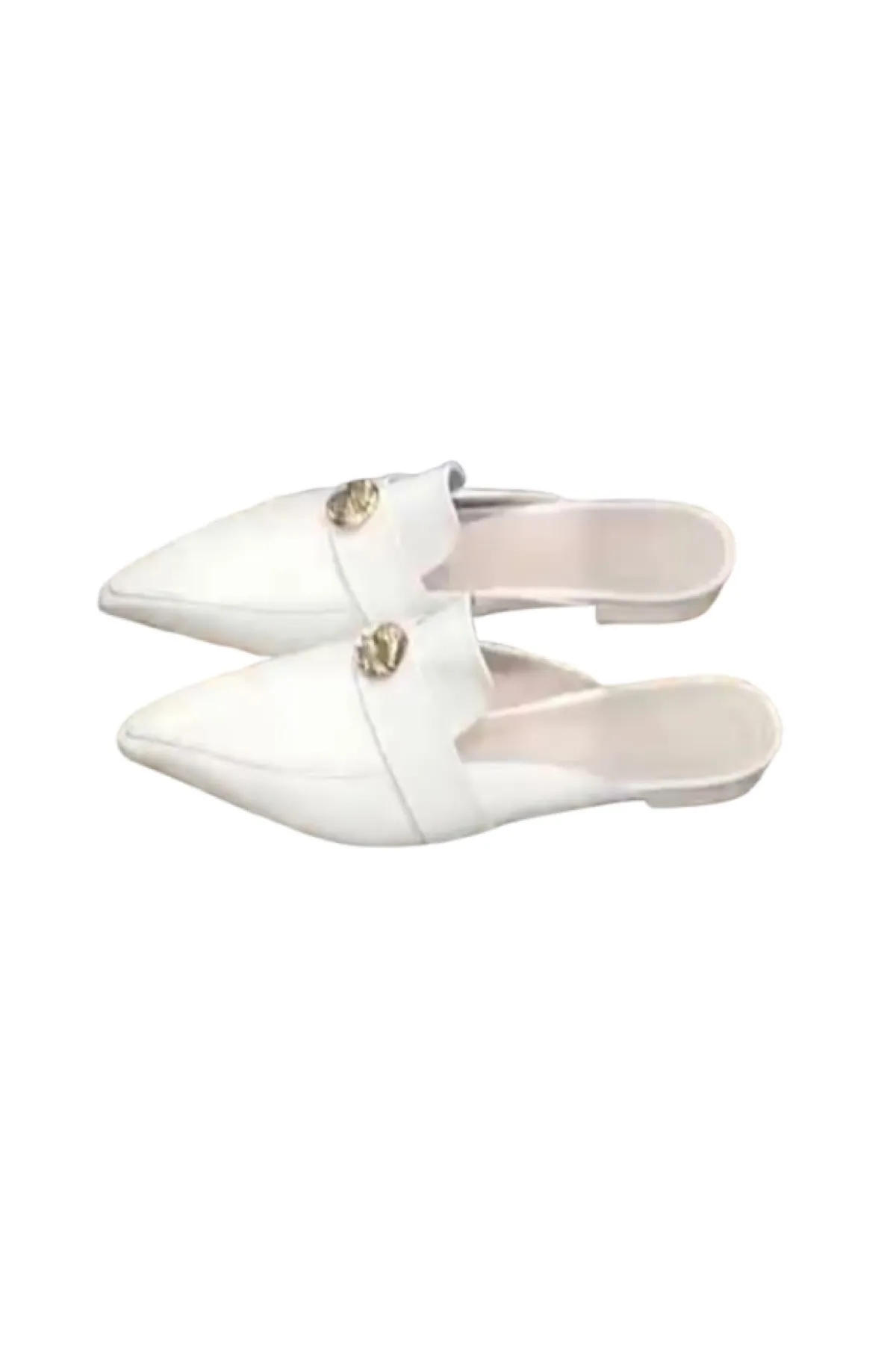 義大利牛皮尖頭金屬圓飾穆勒手工鞋(白)