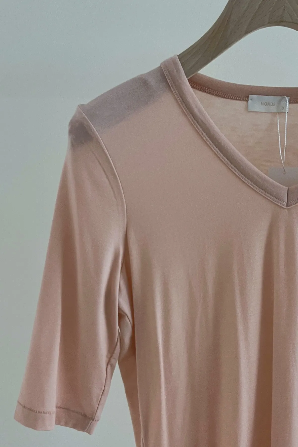 柔膚V領五分袖T(粉)
