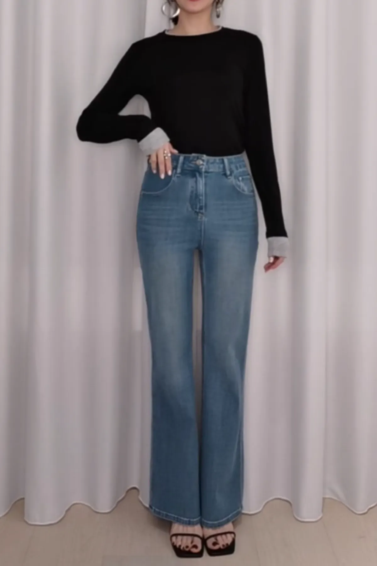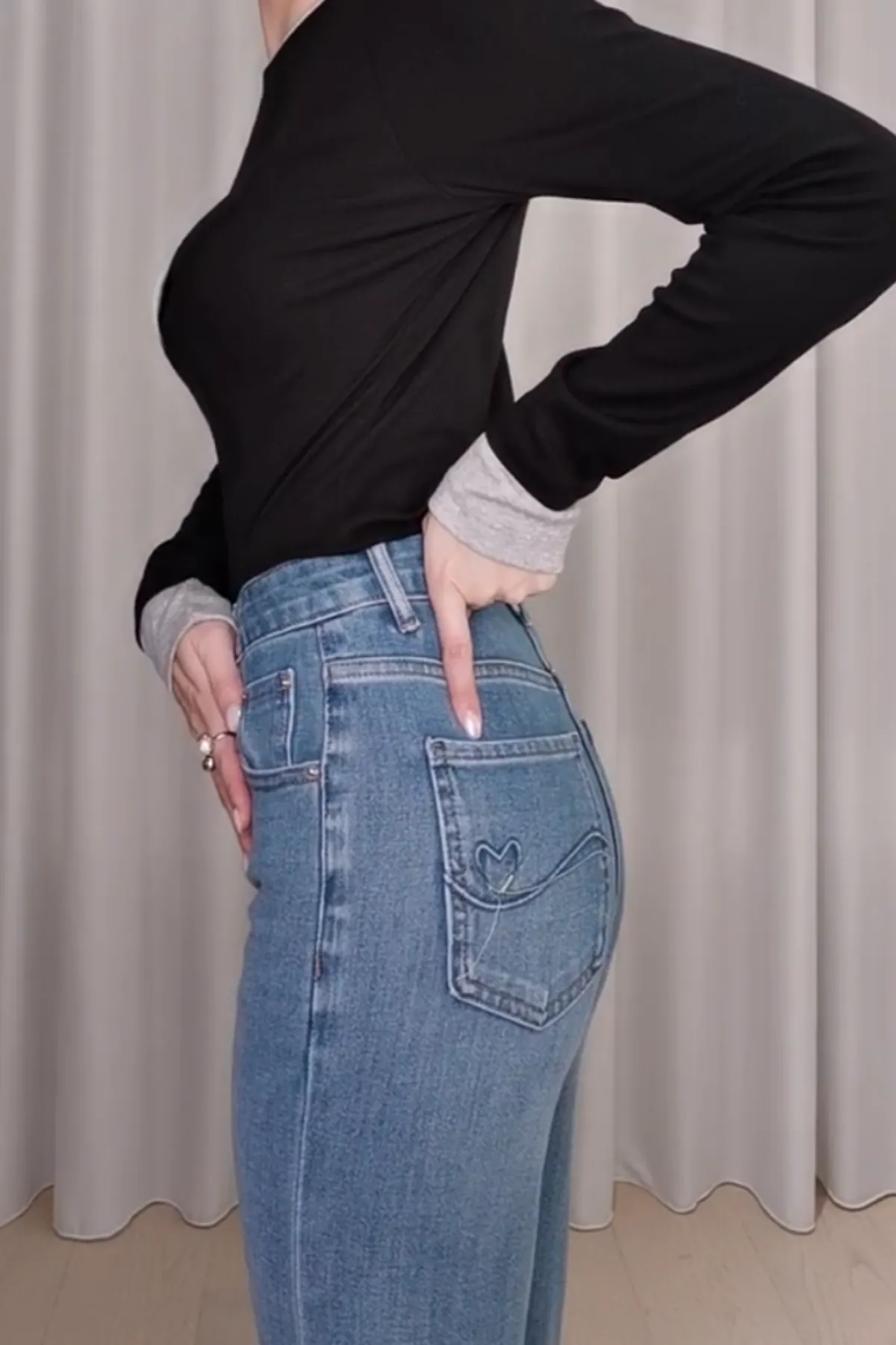 棉質愛心靴型牛仔褲
