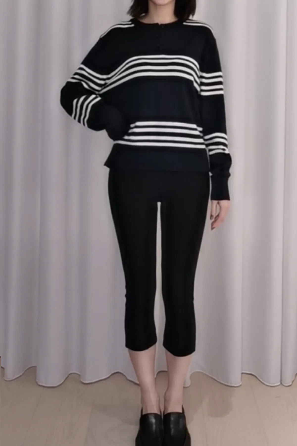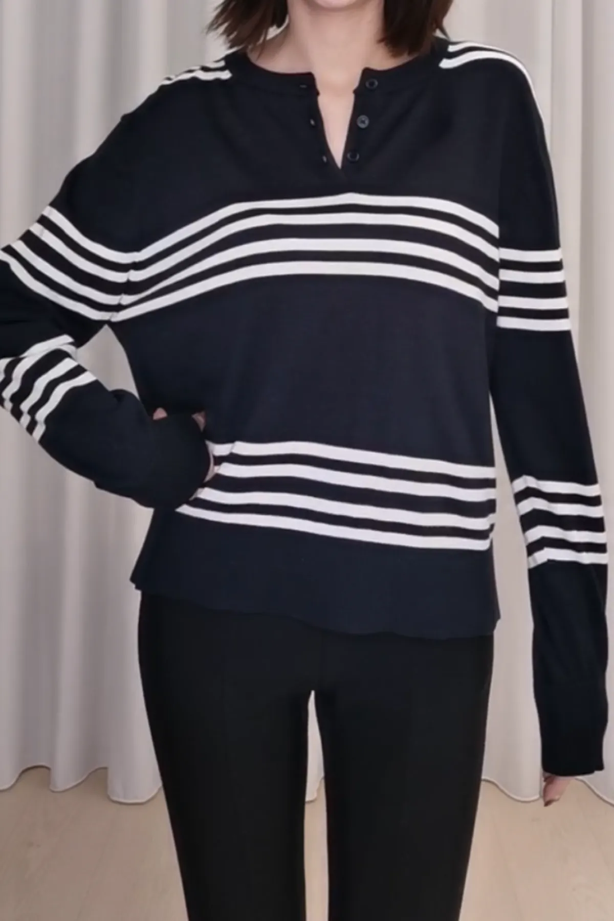 棉質半排釦橫條紋上衣