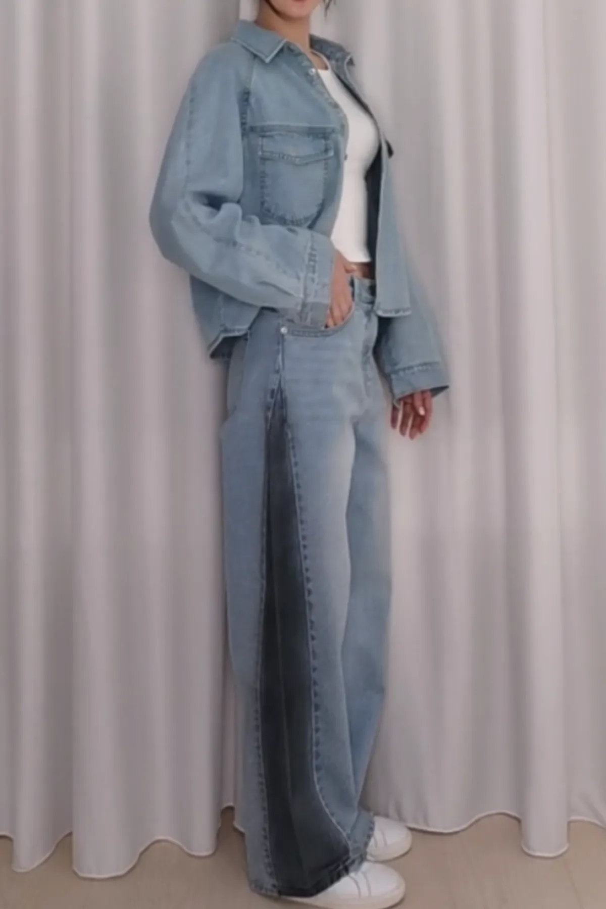 棉質雙蓋袋牛仔襯衫