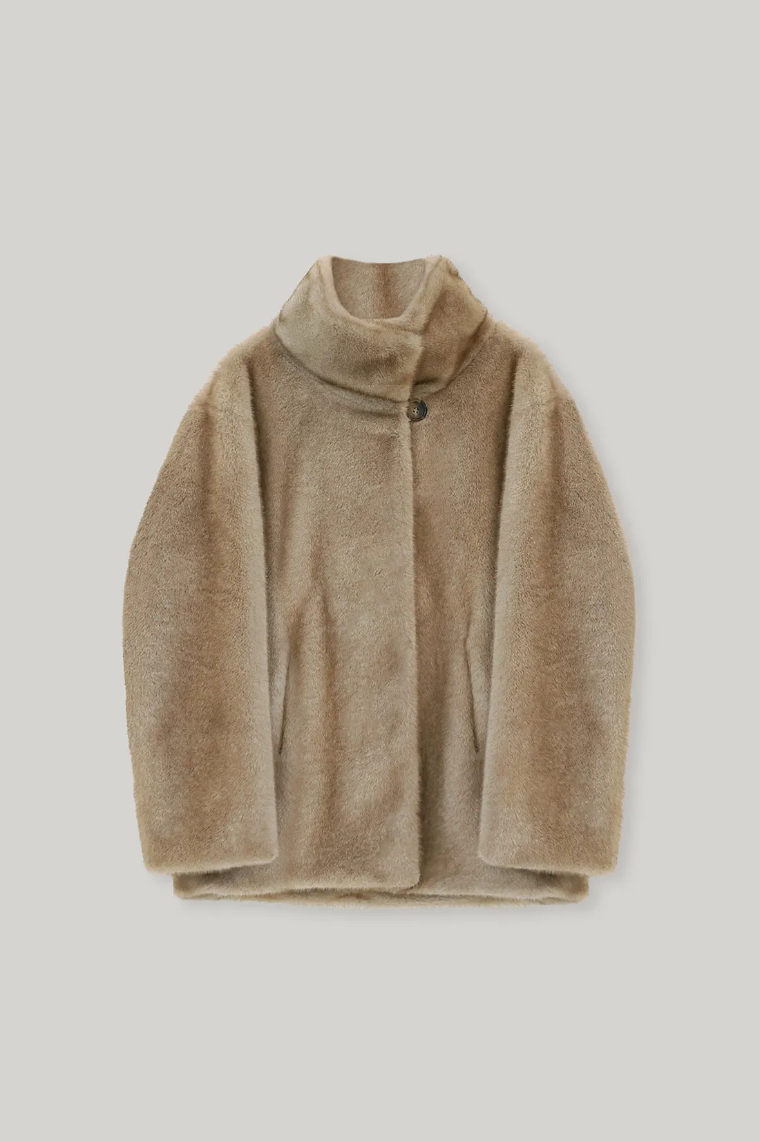 高領毛毛單釦外套(淺咖)