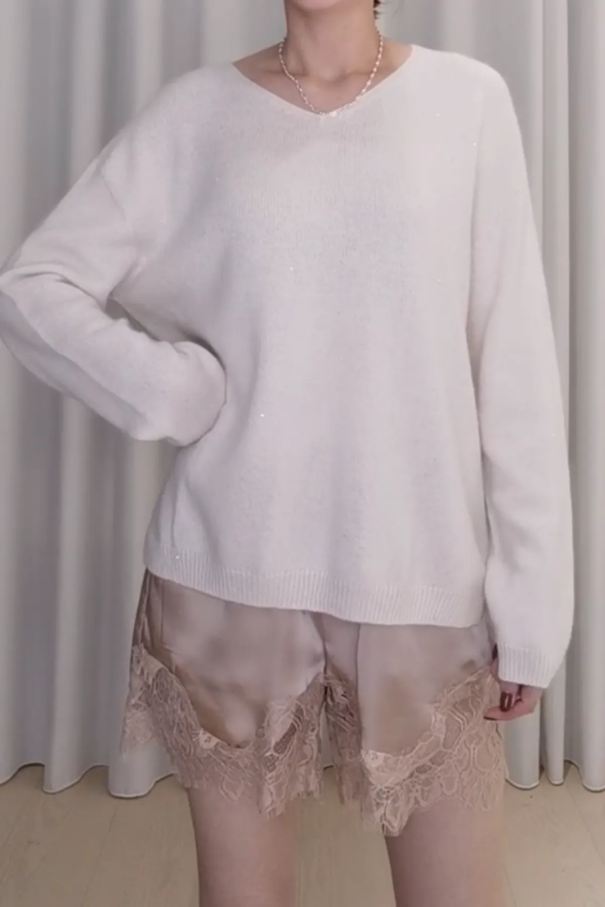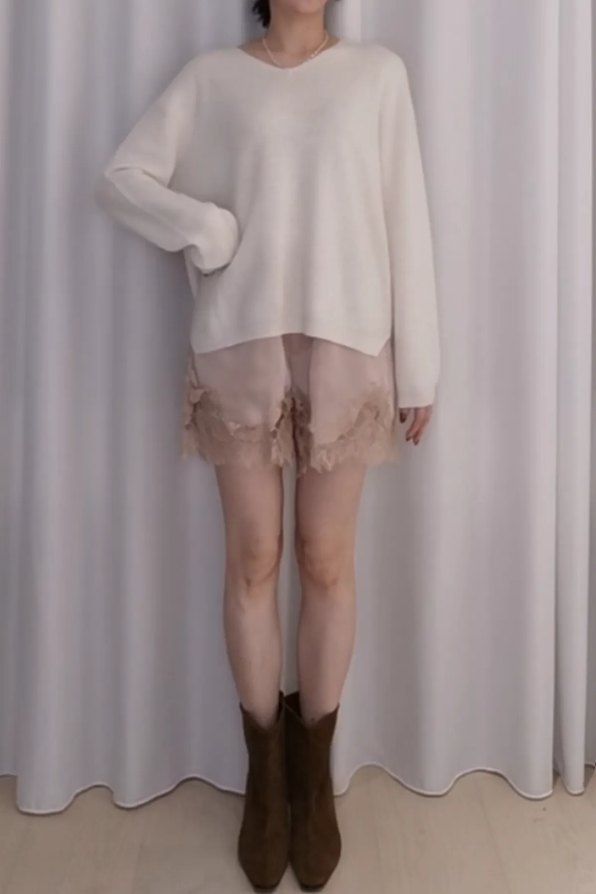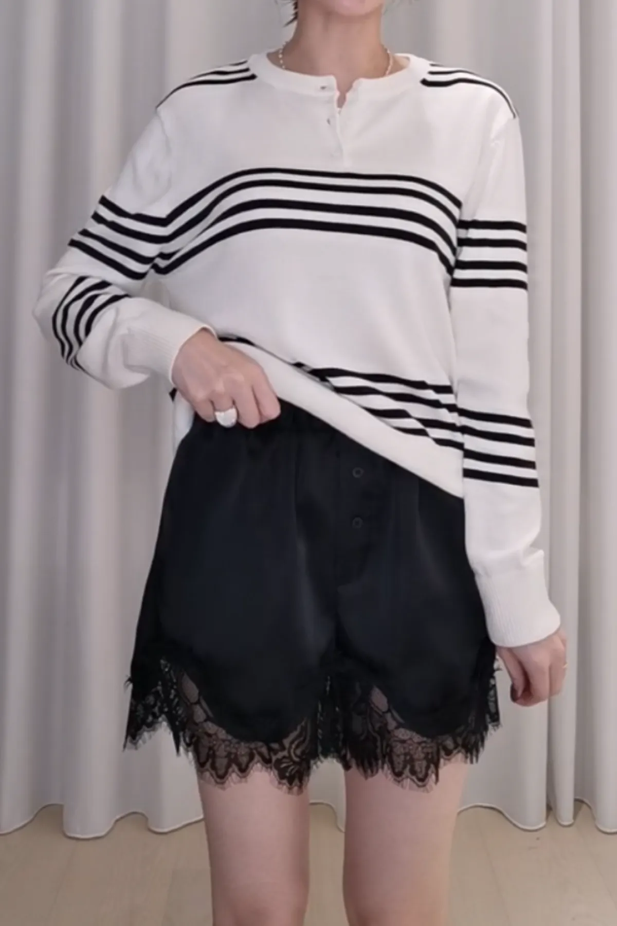 光澤蕾絲鬆緊短褲