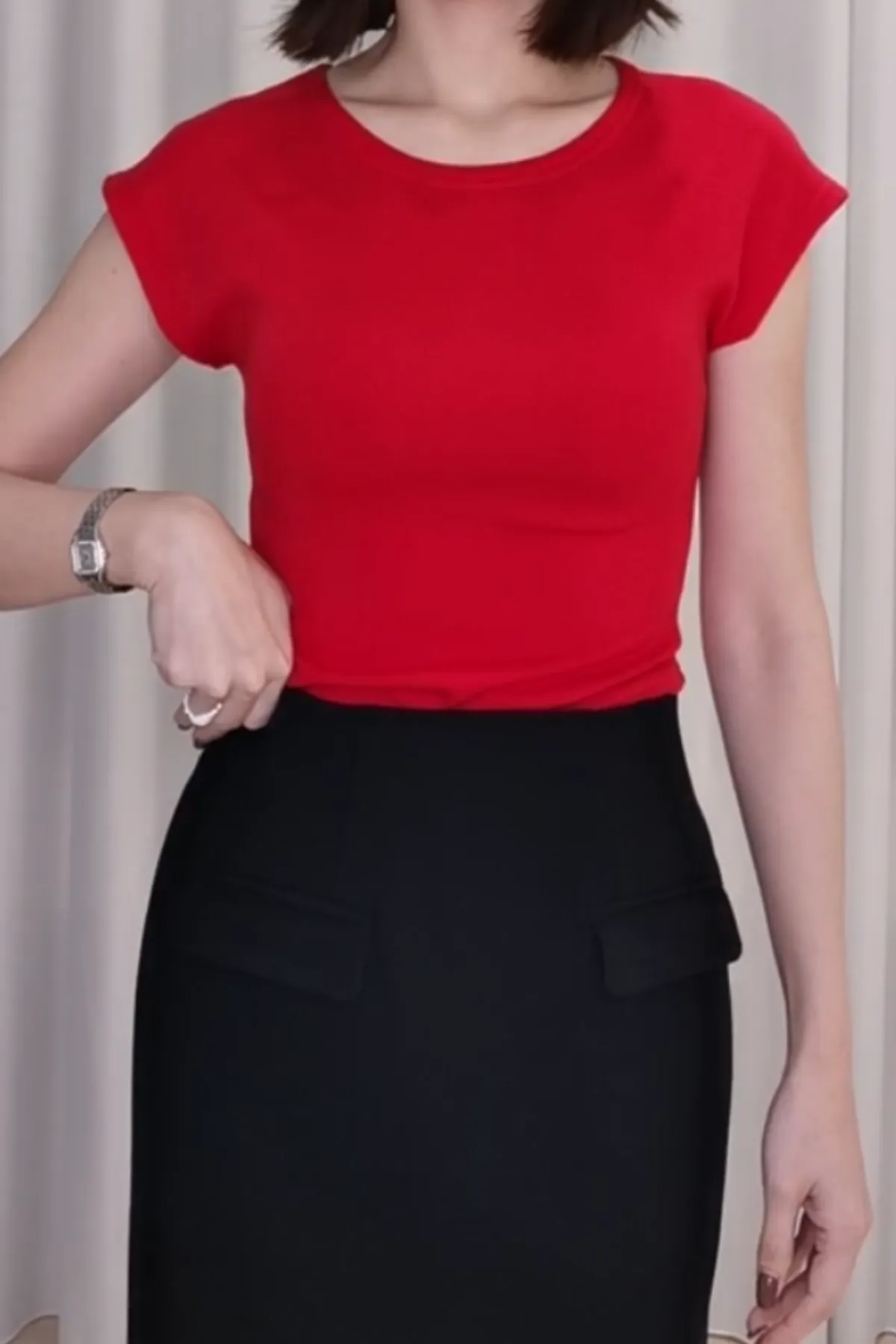 圓領磨毛蓋袖短T