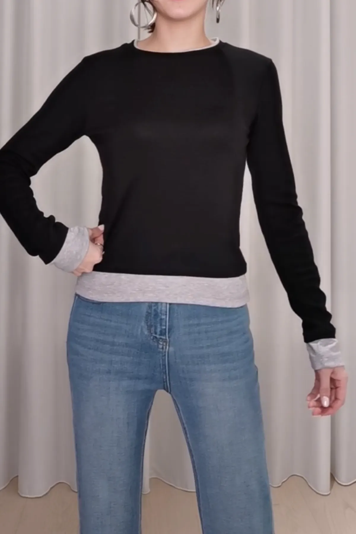 配色層次圓領T