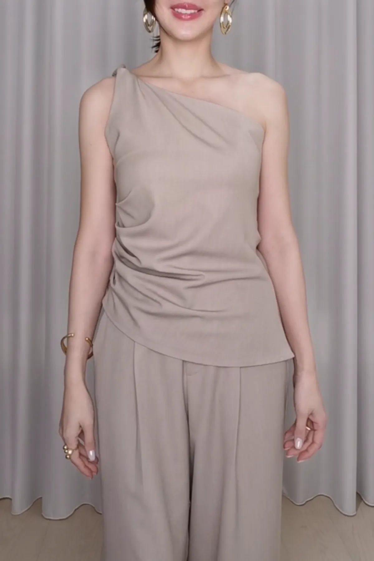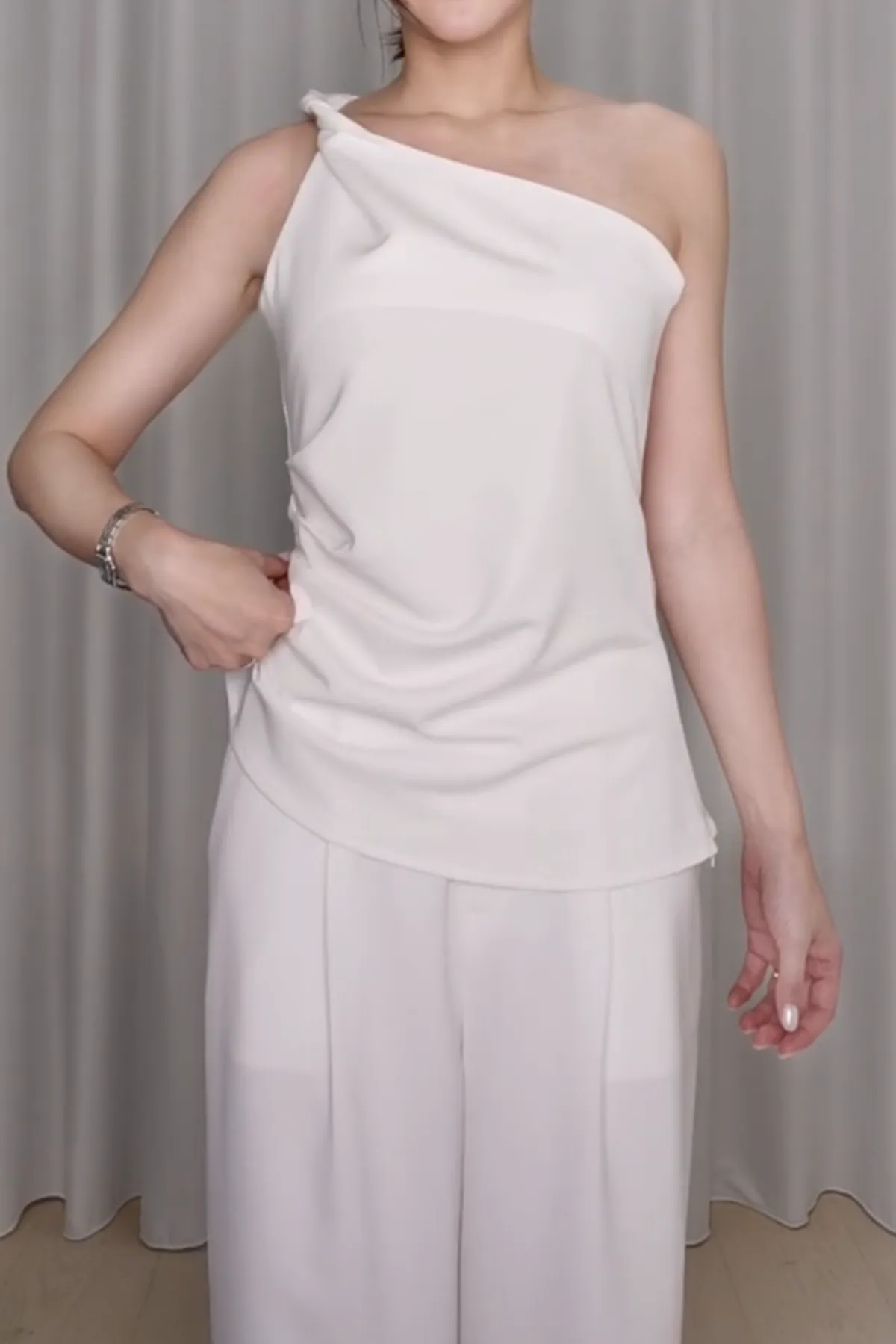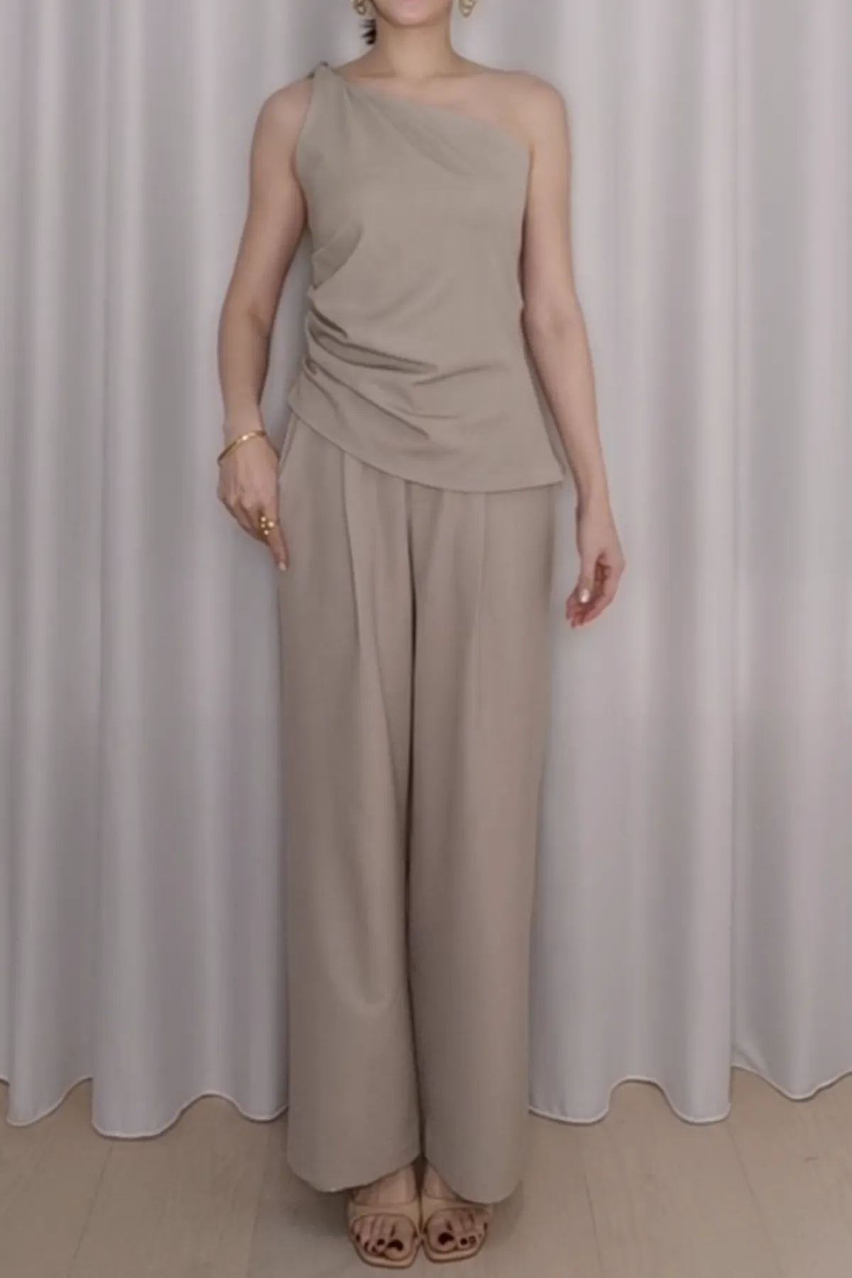 俐落後鬆緊單褶寬褲