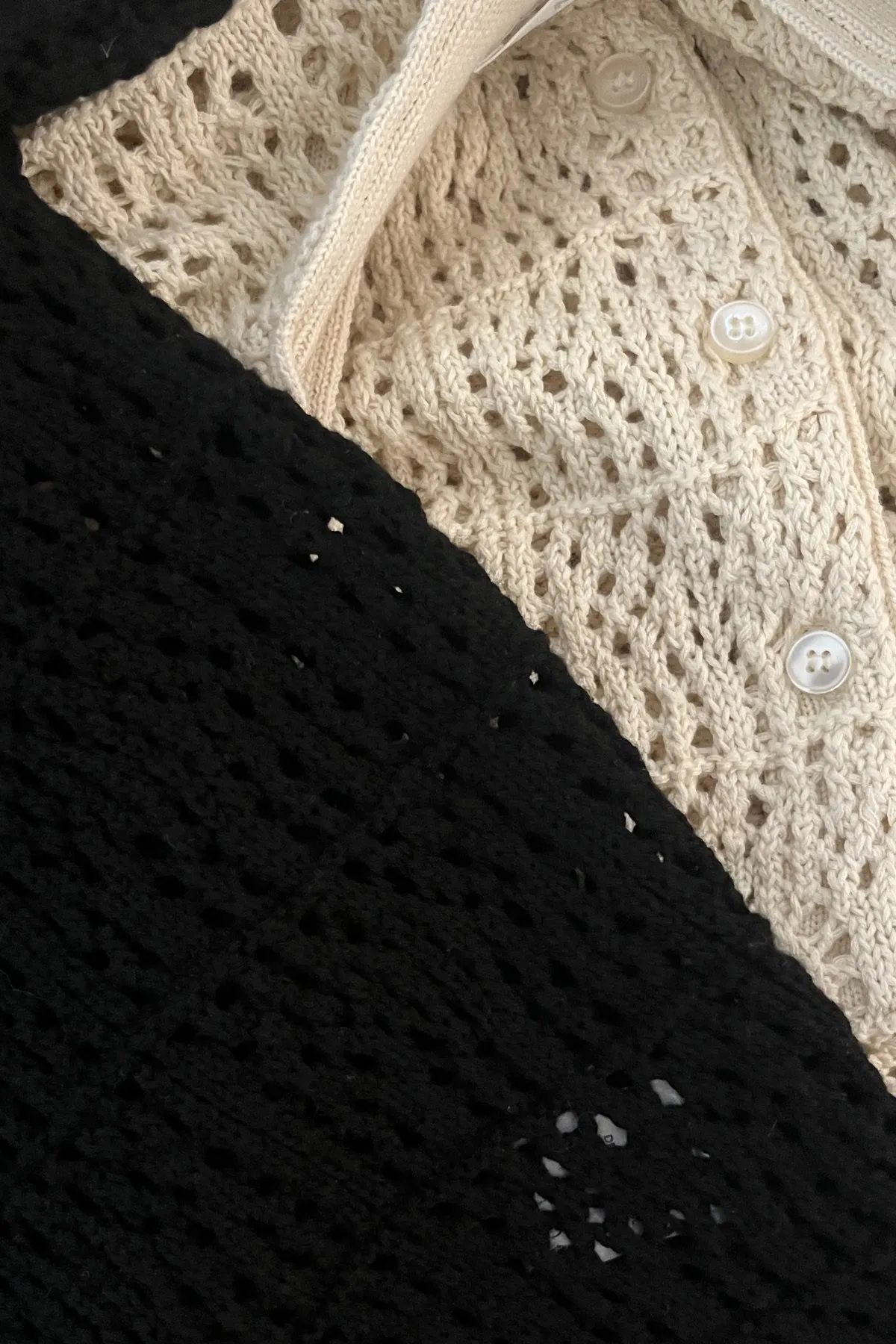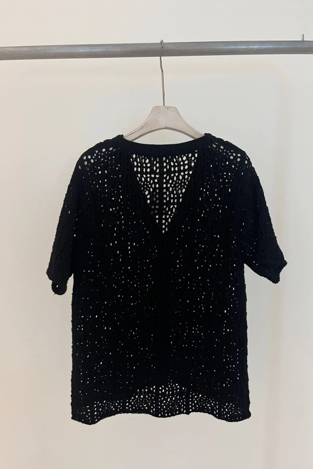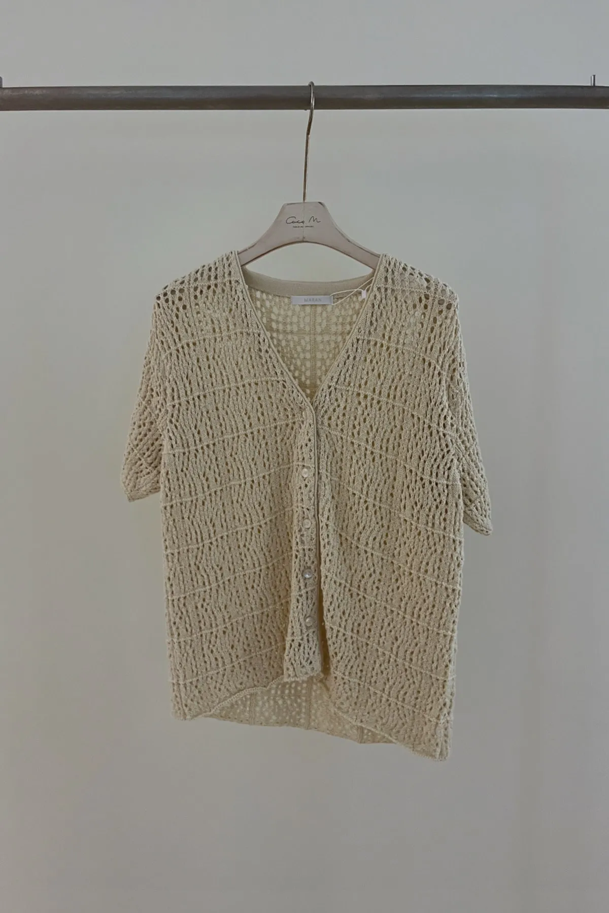 棉質V領網織排釦衫