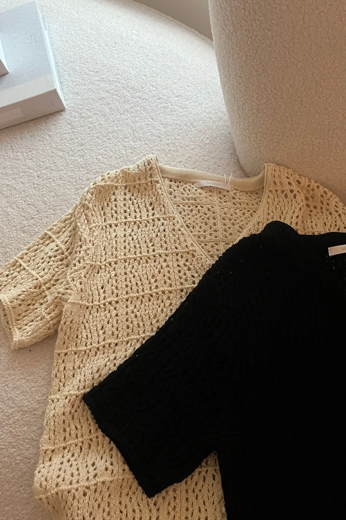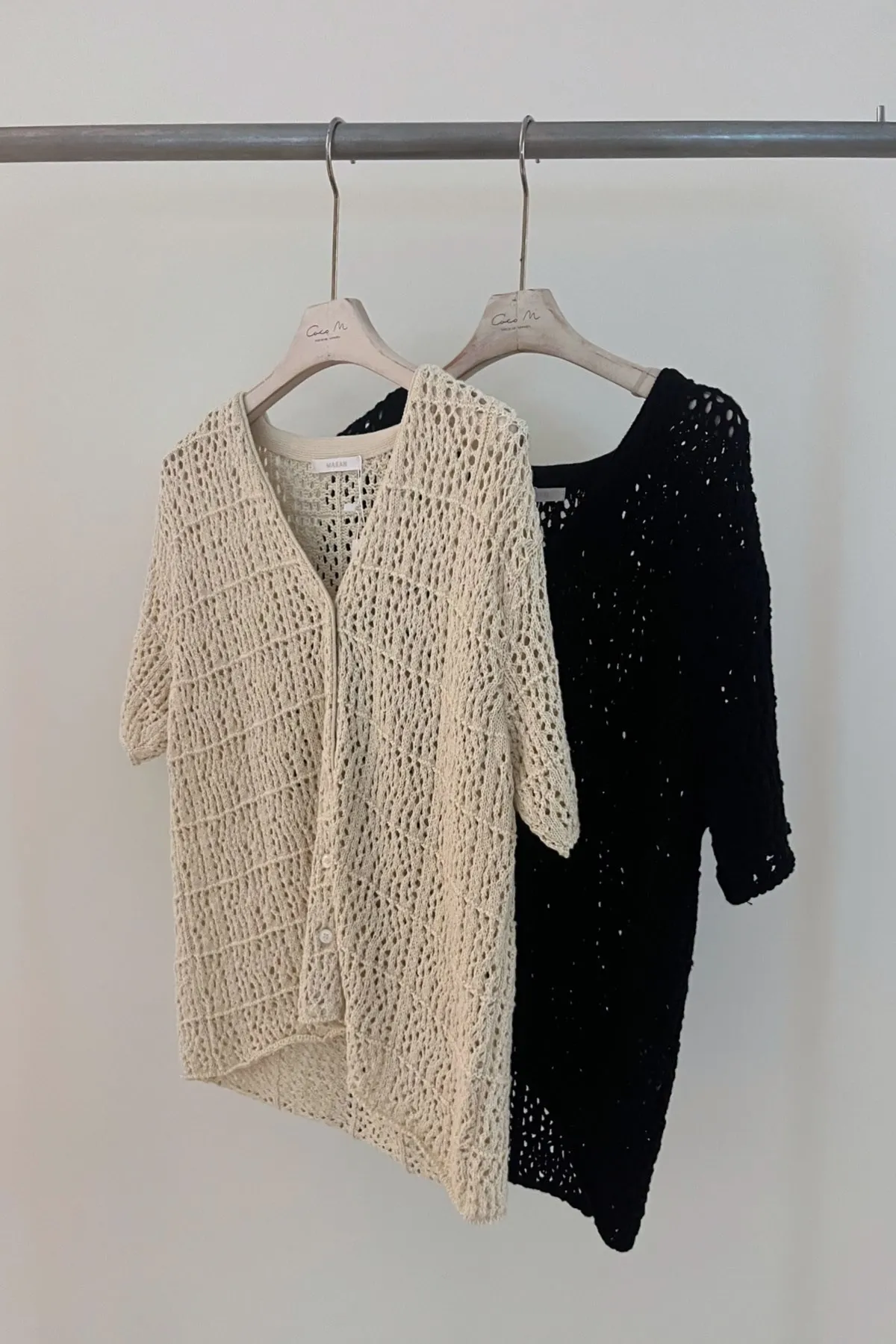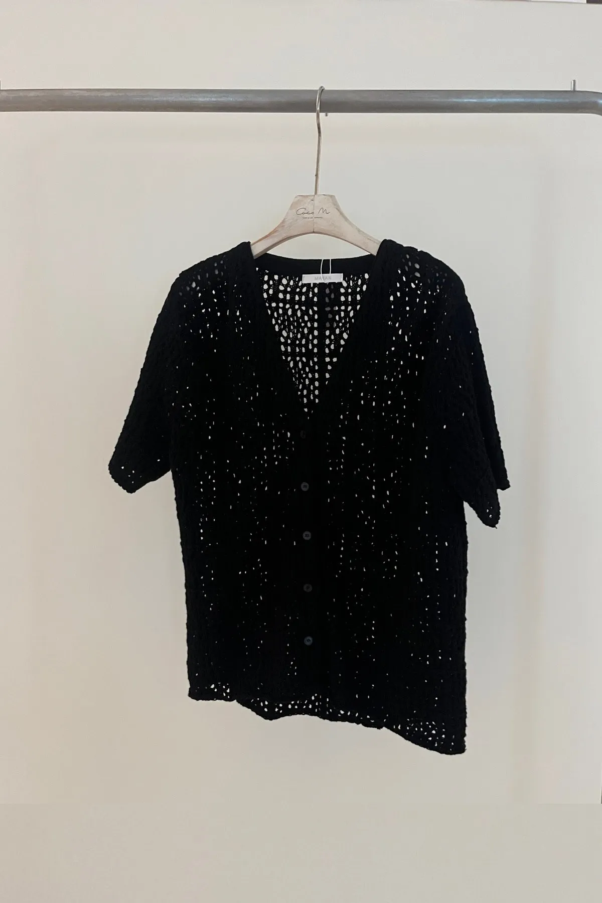 棉質V領網織排釦衫