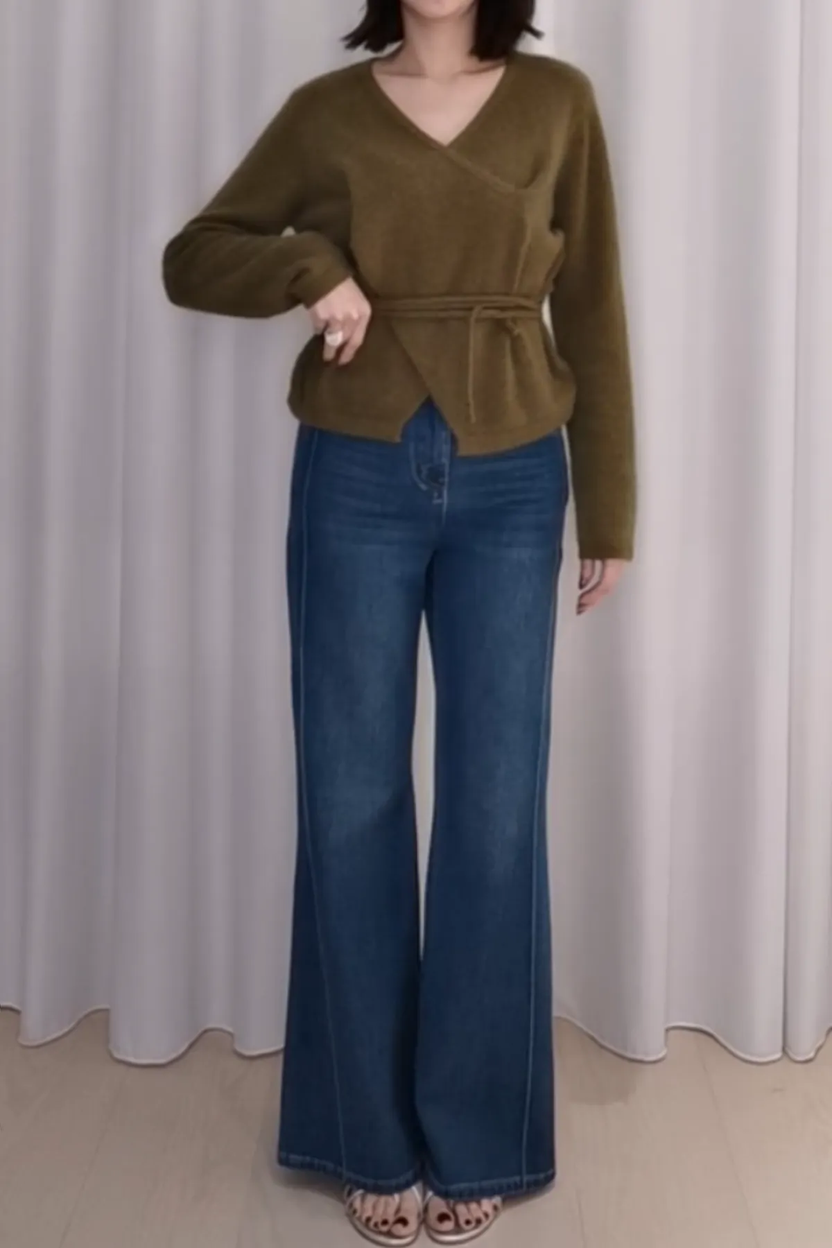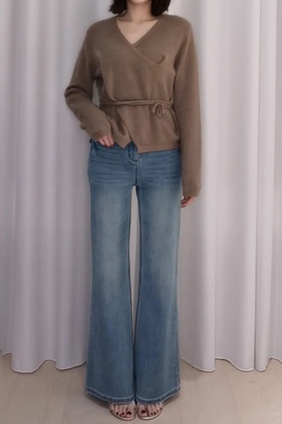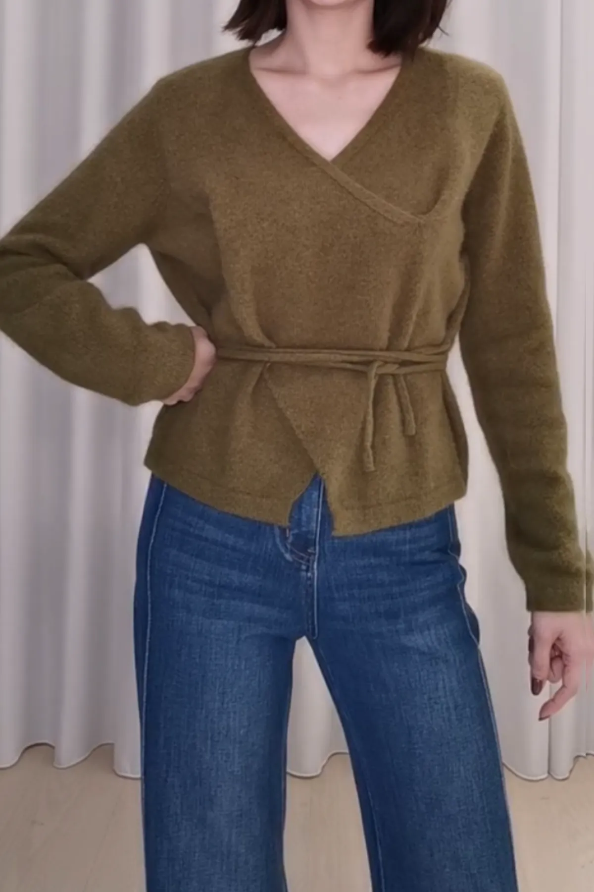 浣熊羊毛V領綁帶上衣