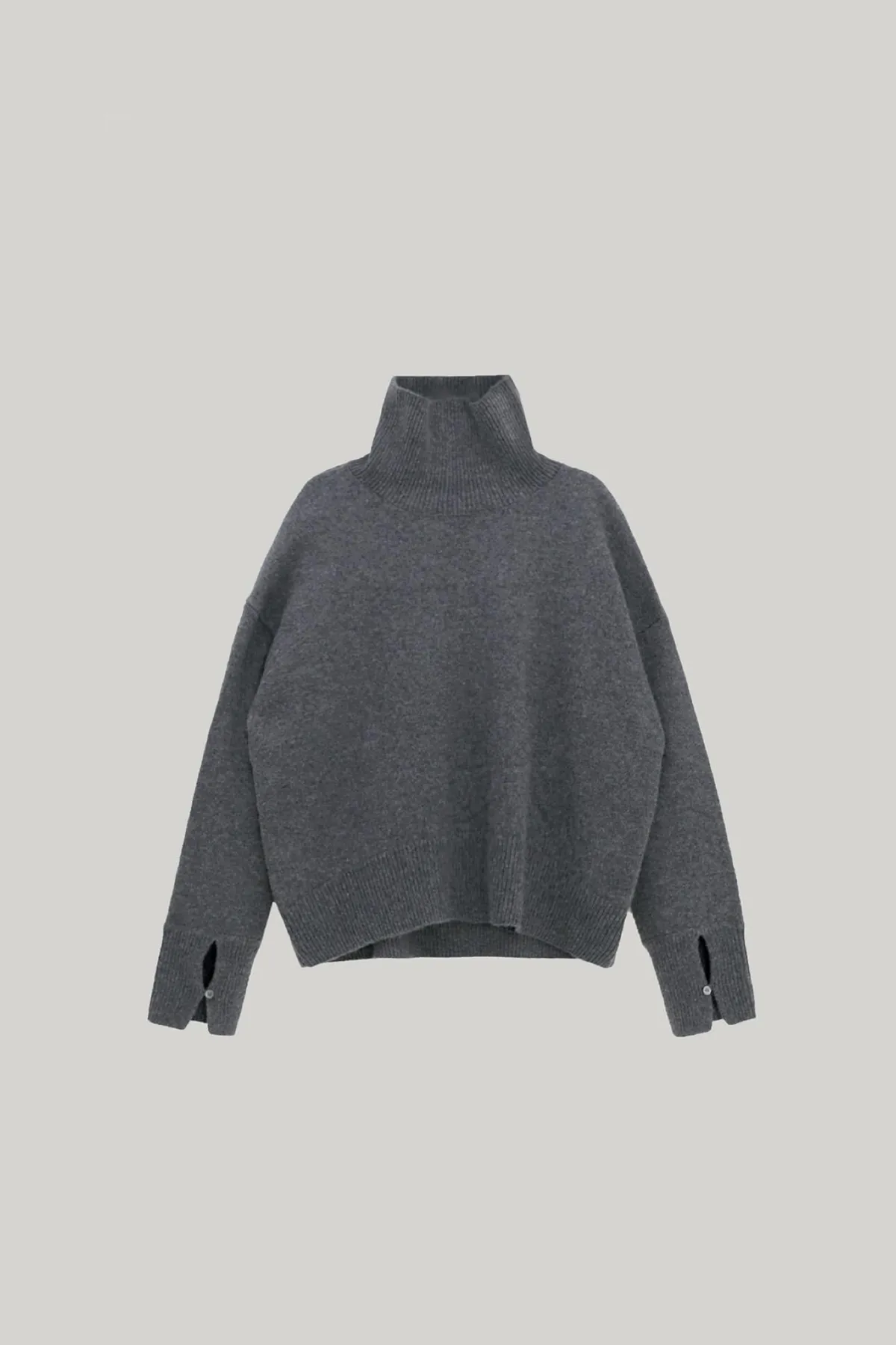 純義大利羊絨高領寬鬆袖口釦上衣