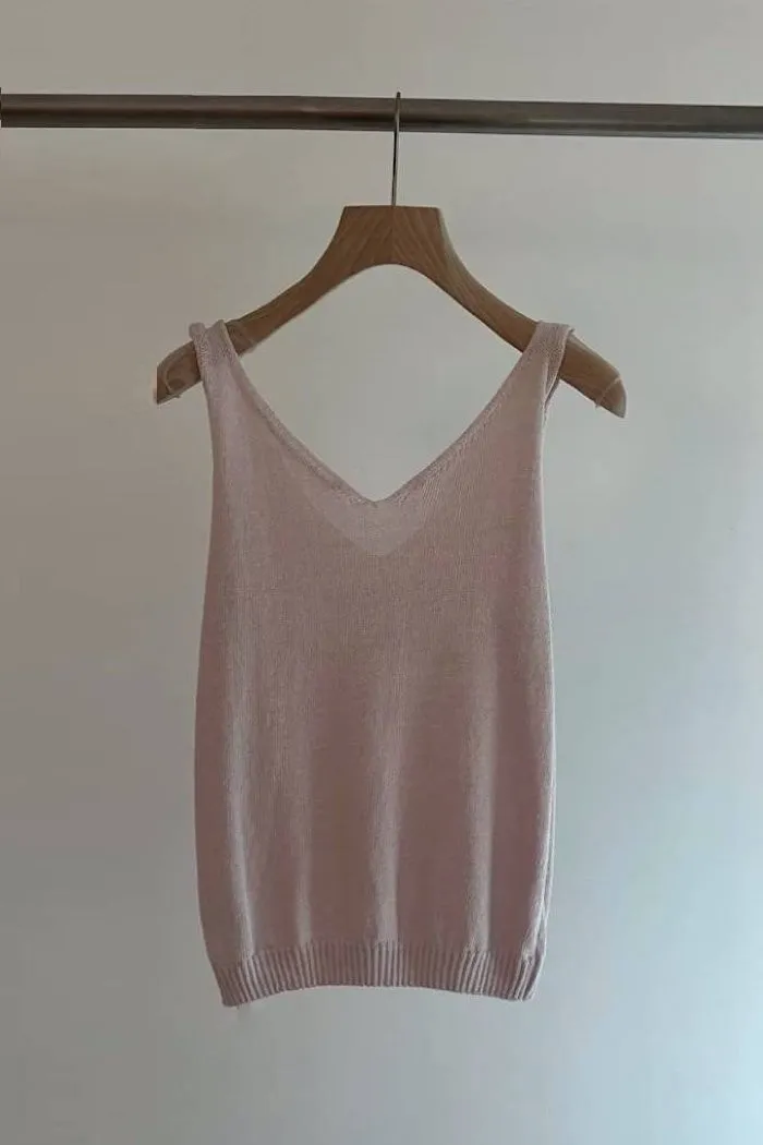 棉麻雙V領針織背心