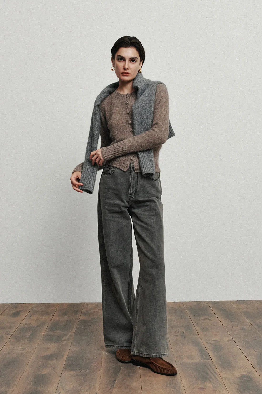 棉質牛仔寬褲(灰)