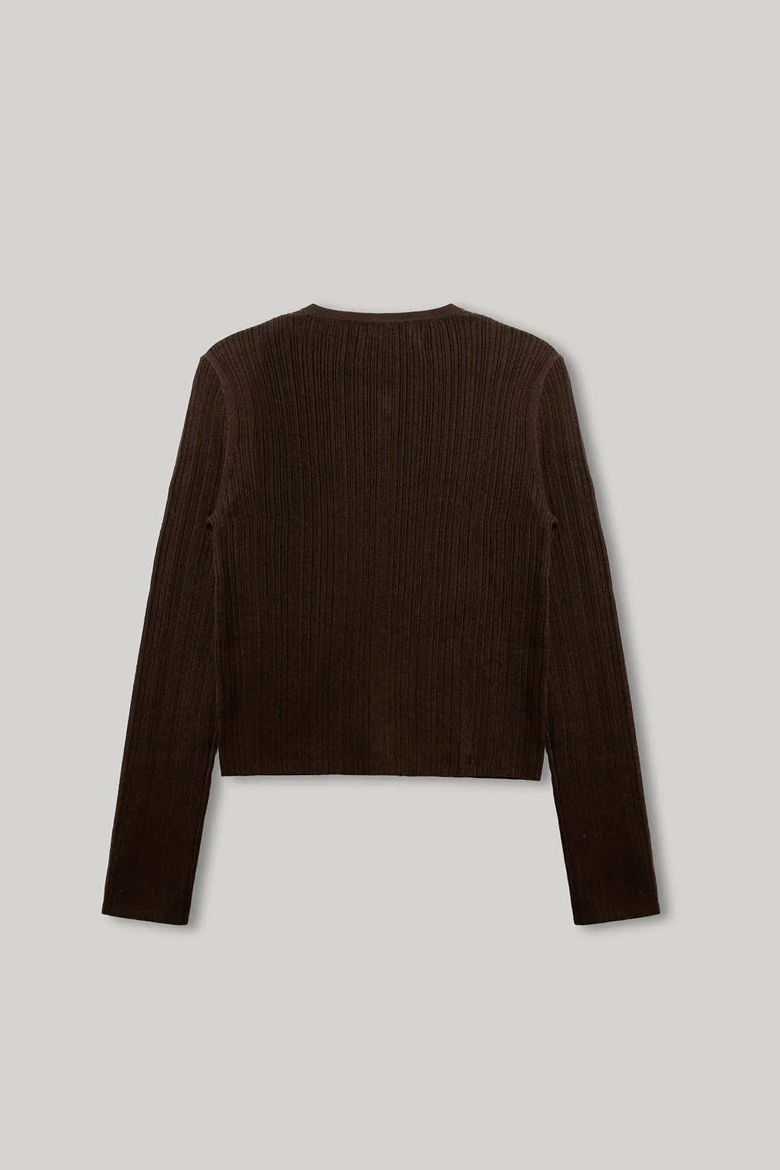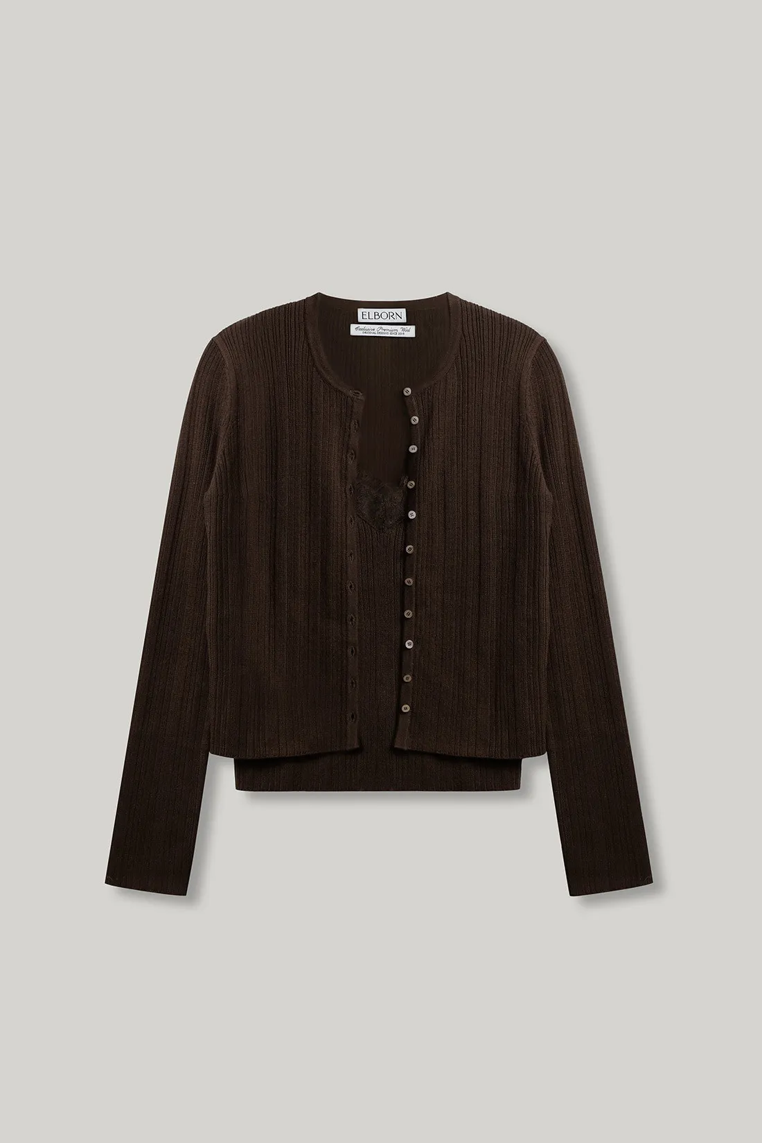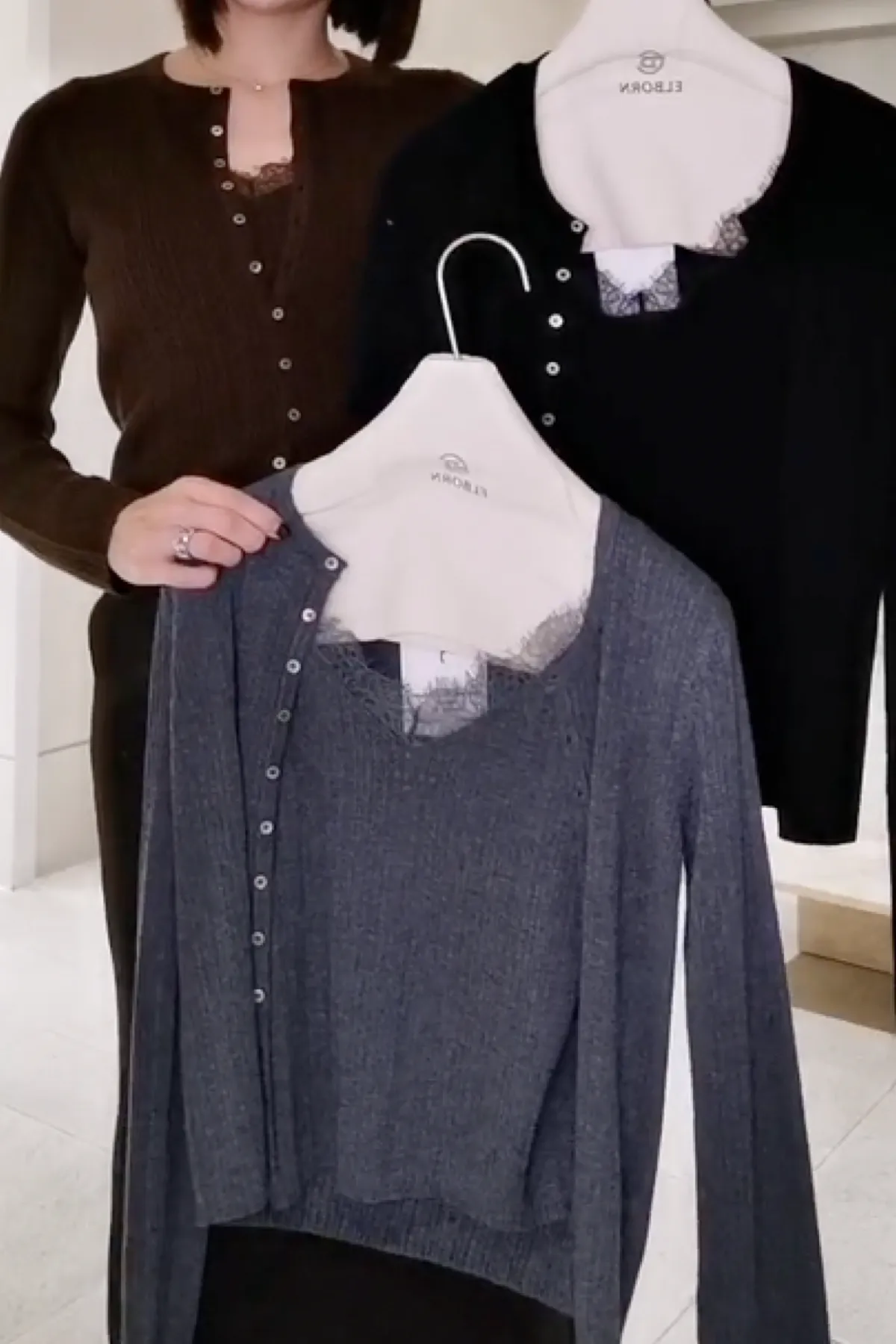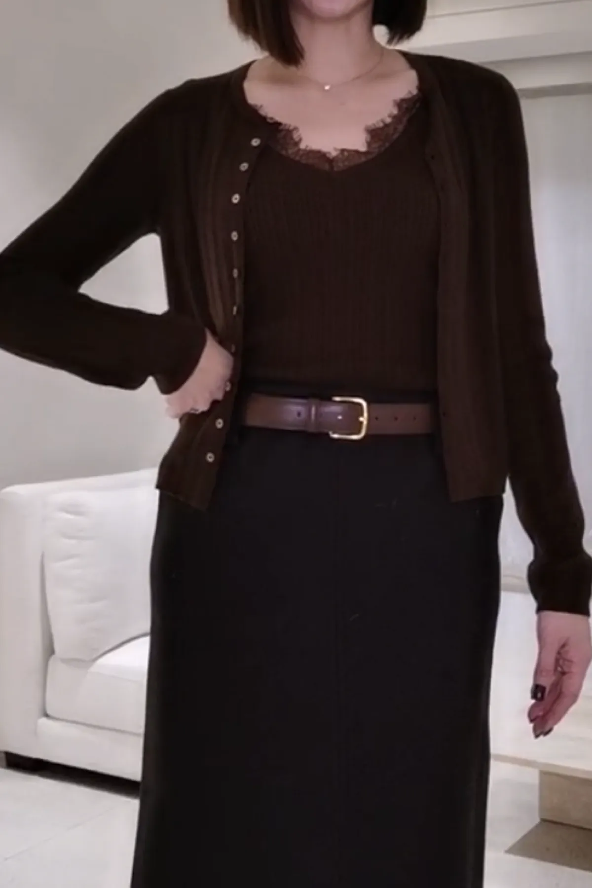 羊毛細坑條二件組(背心+針織衫)(咖)
