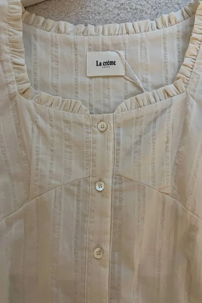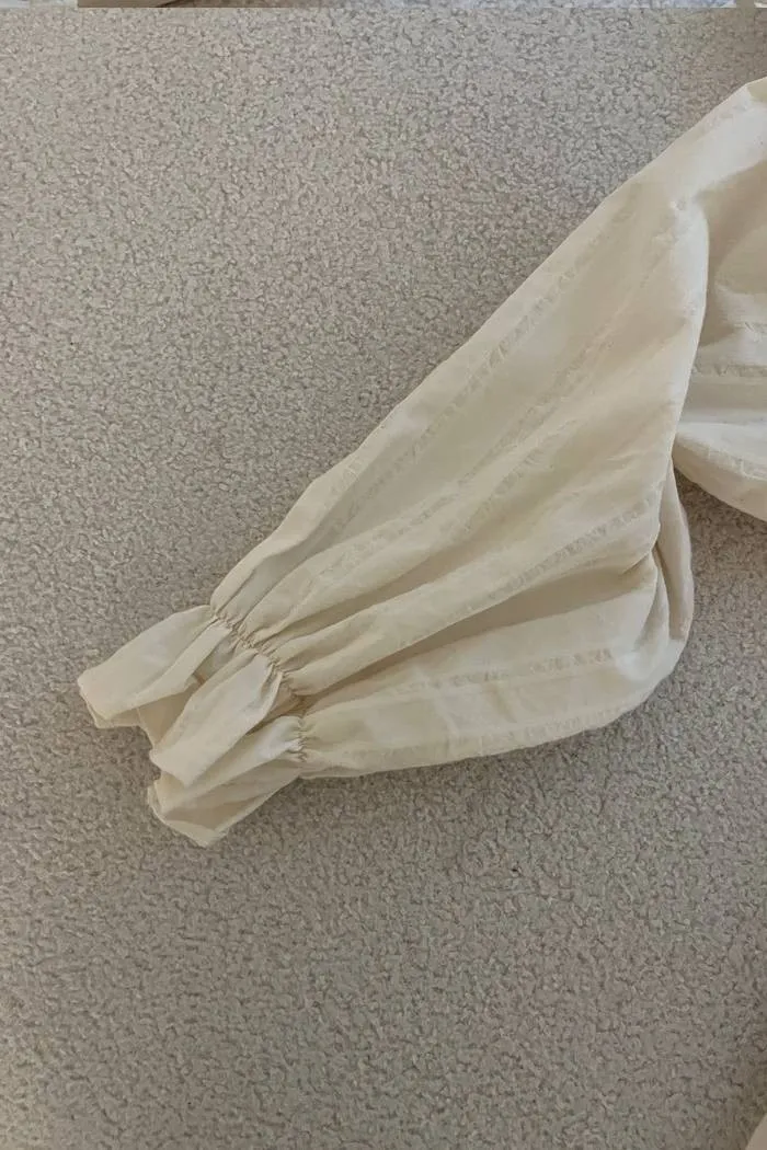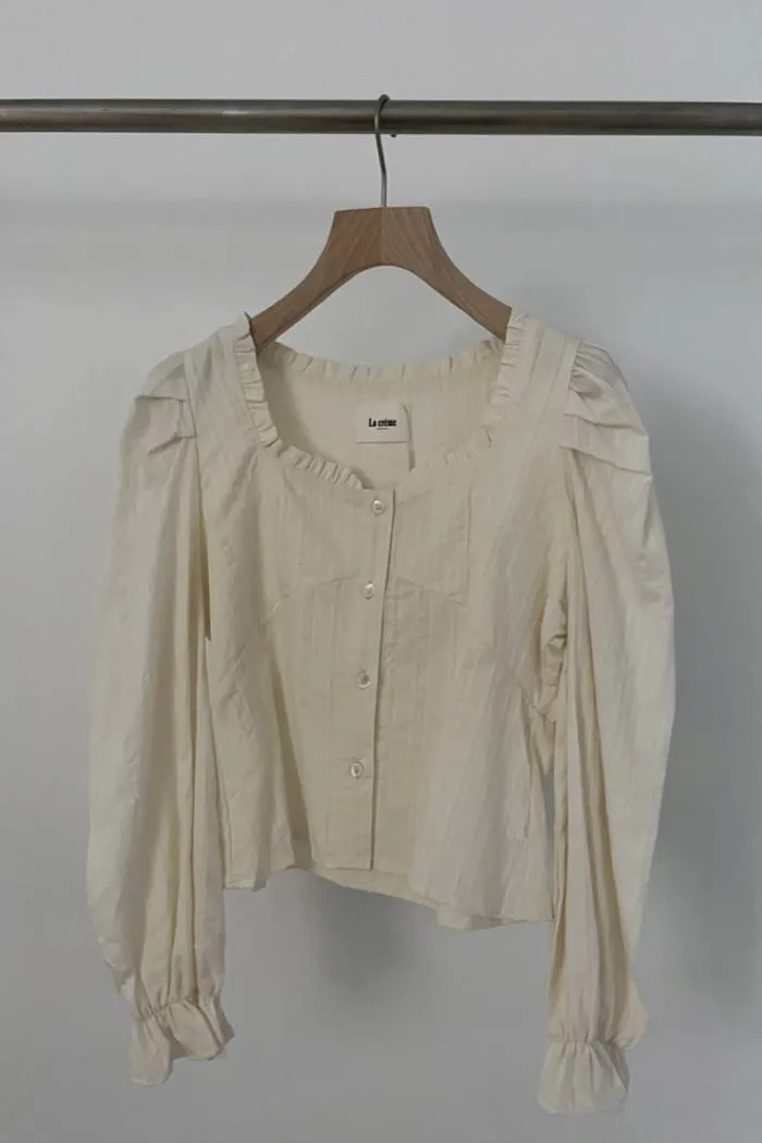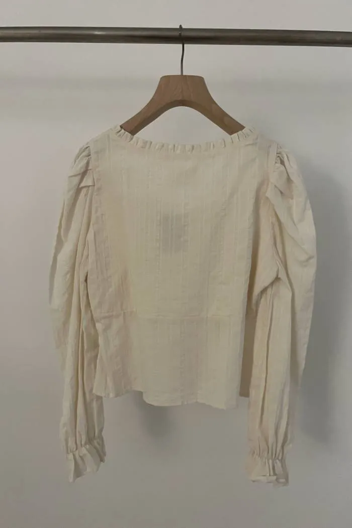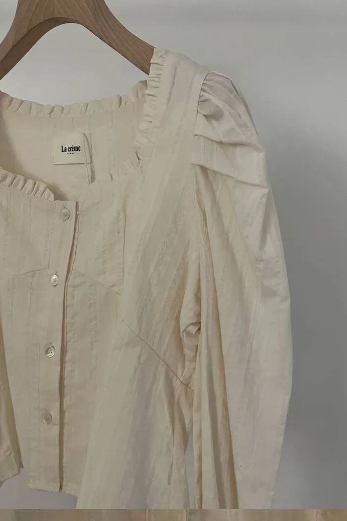 棉質方領蓬袖排釦上衣(奶油)